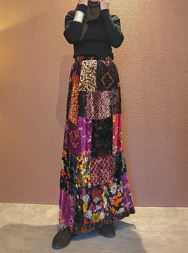 THSK143 ベロアパッチワークマキシスカート