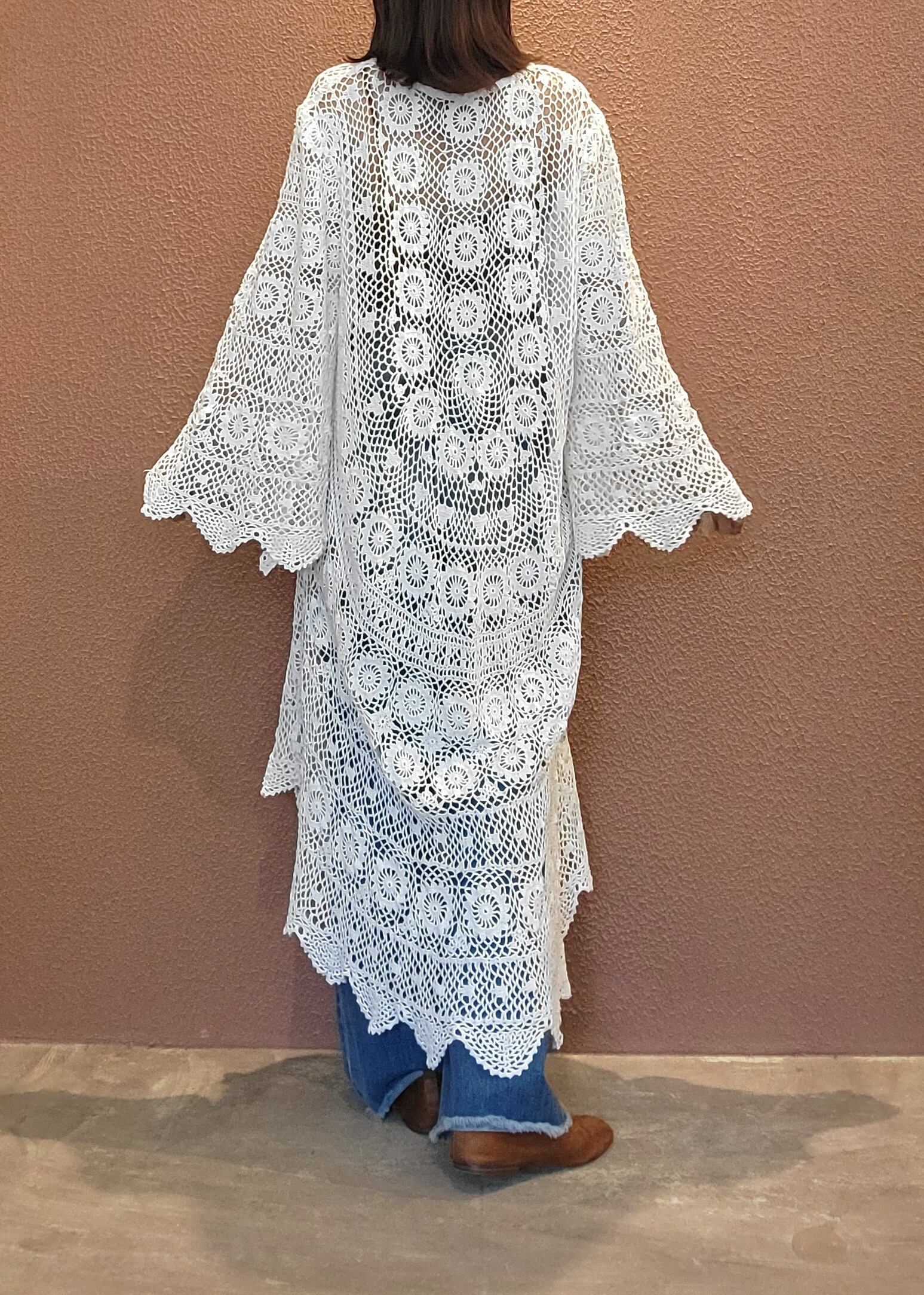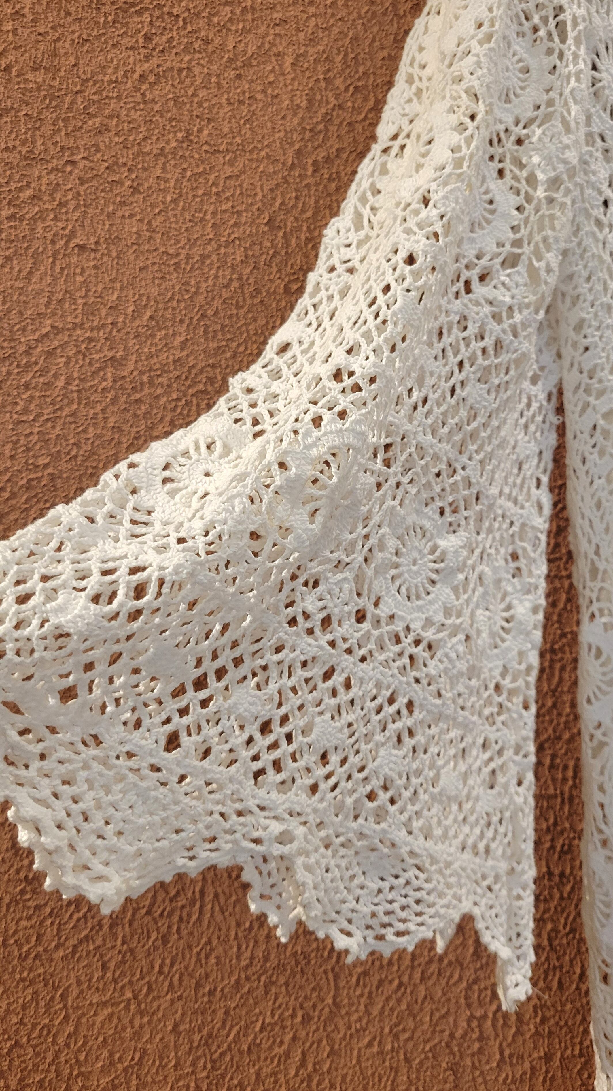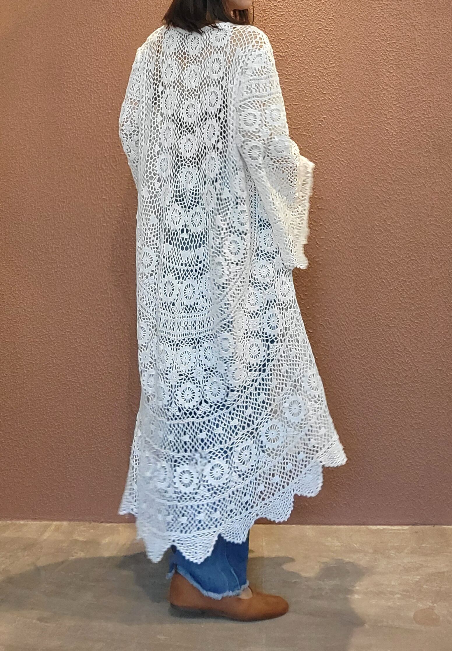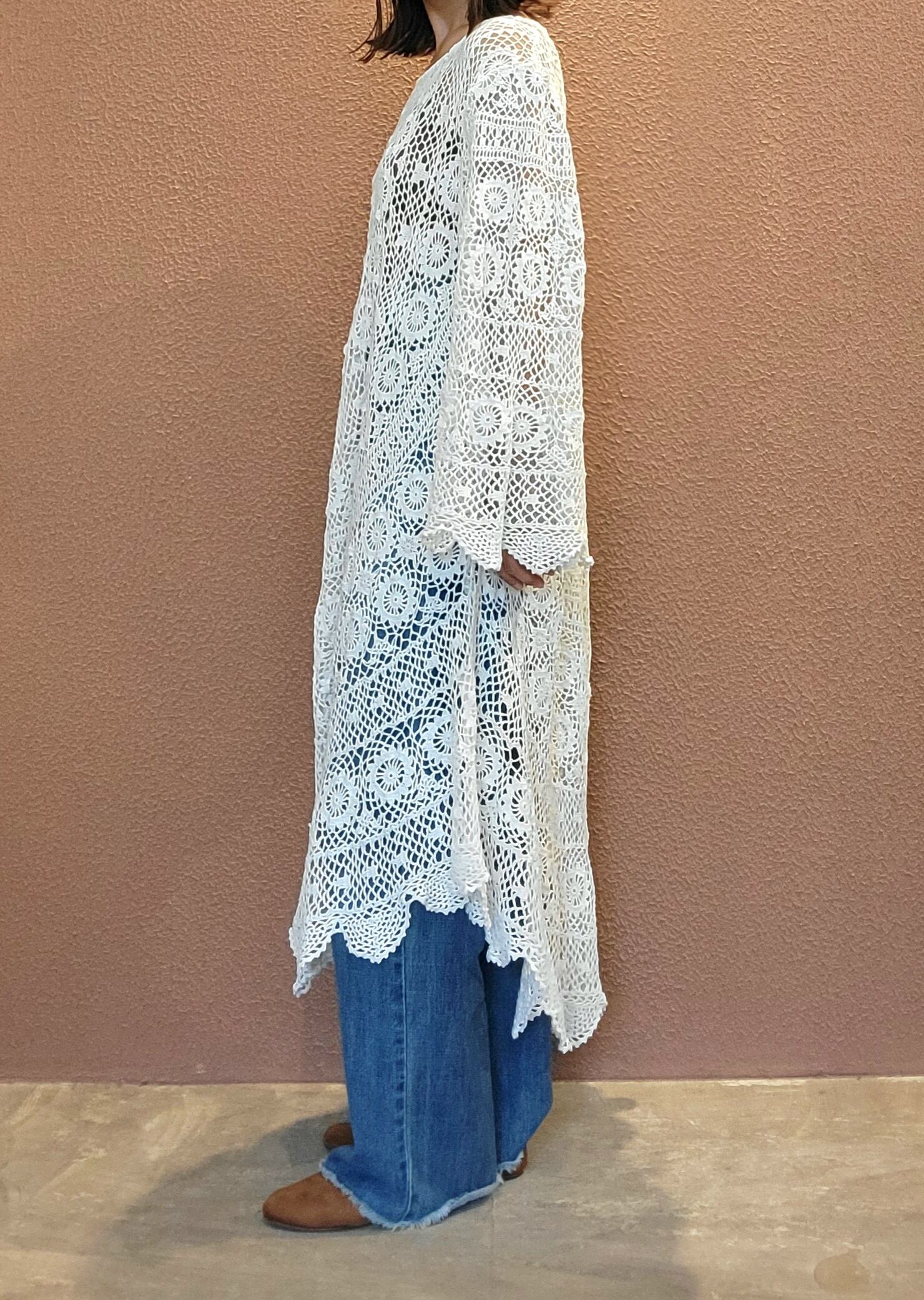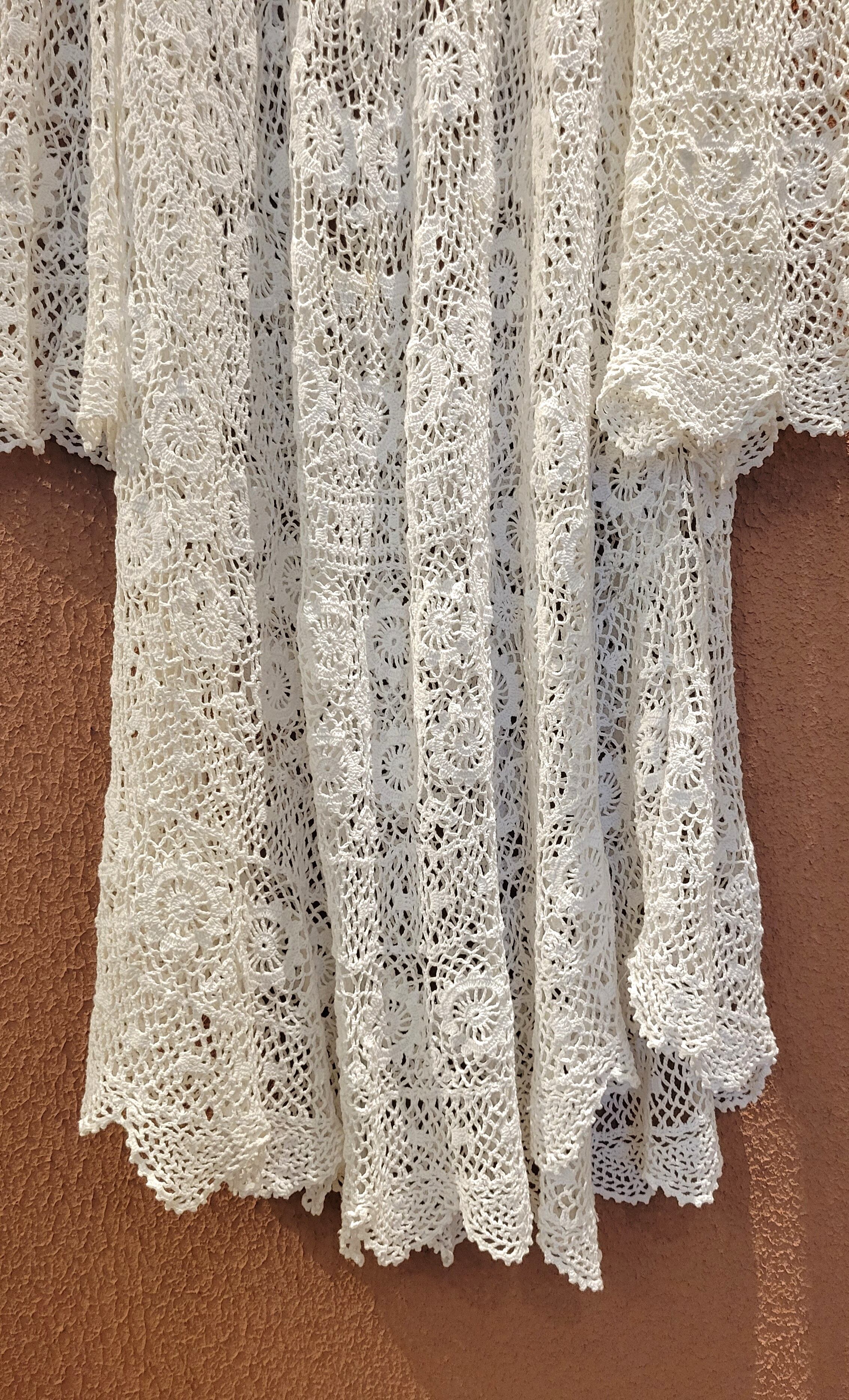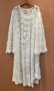 ヴィンテージのクロシェ生地を使用したリメイクワンピース。素材表記はありませんがコットンのようです。