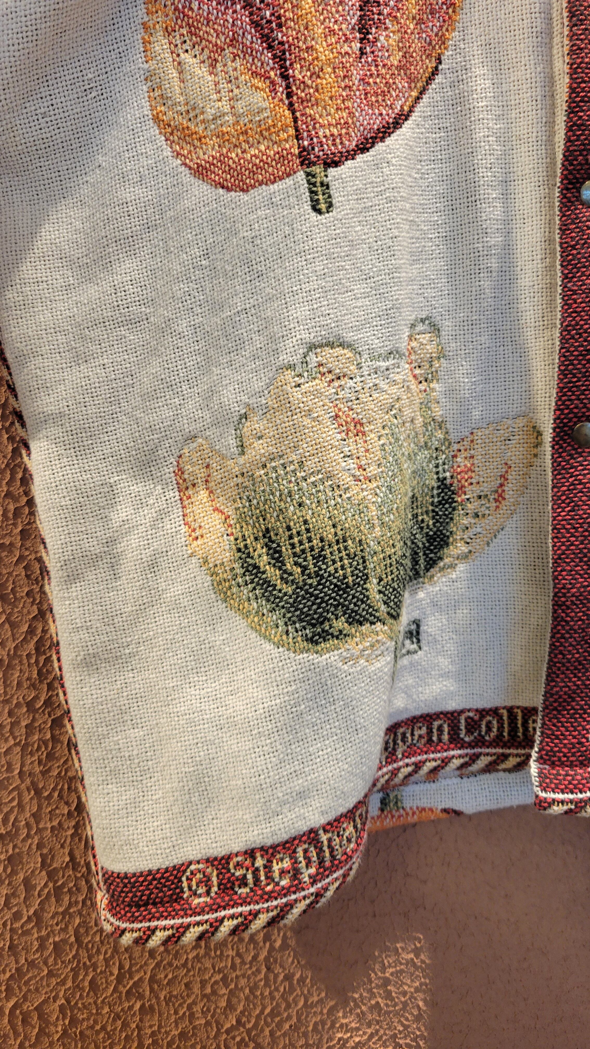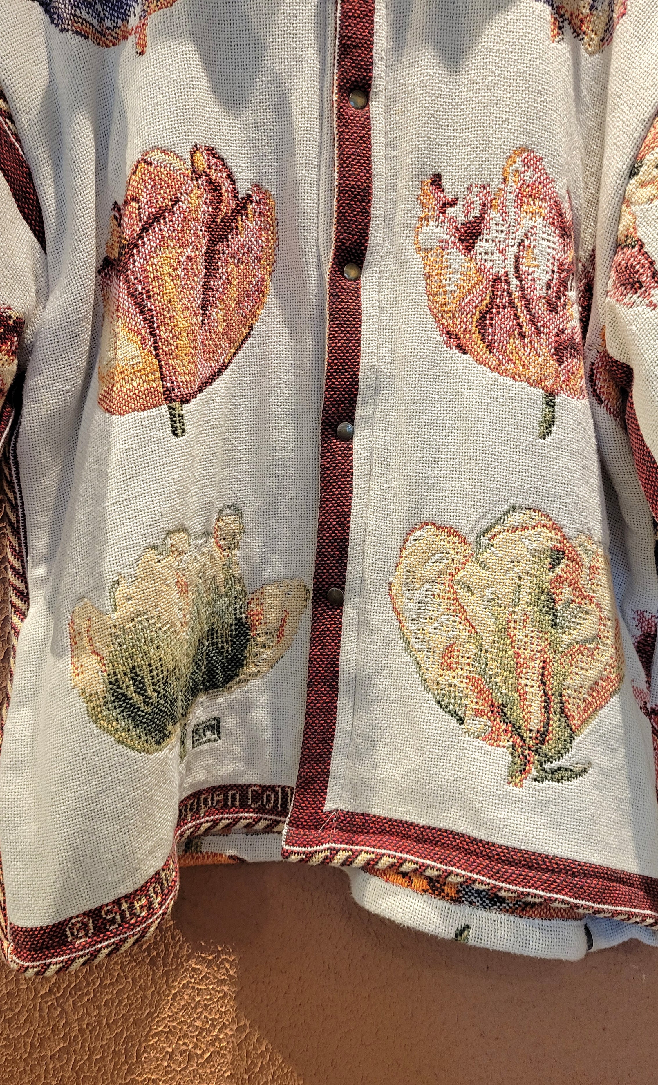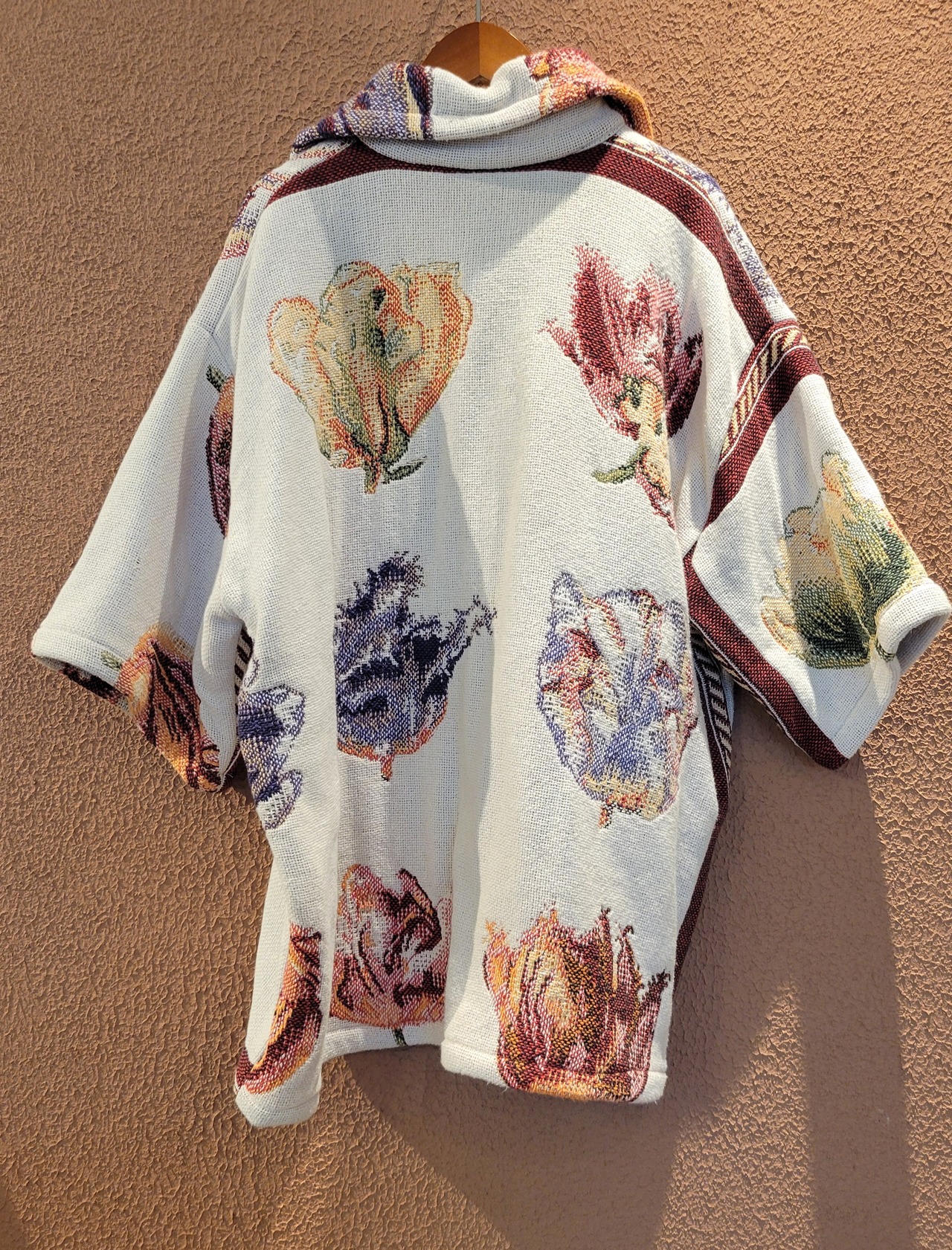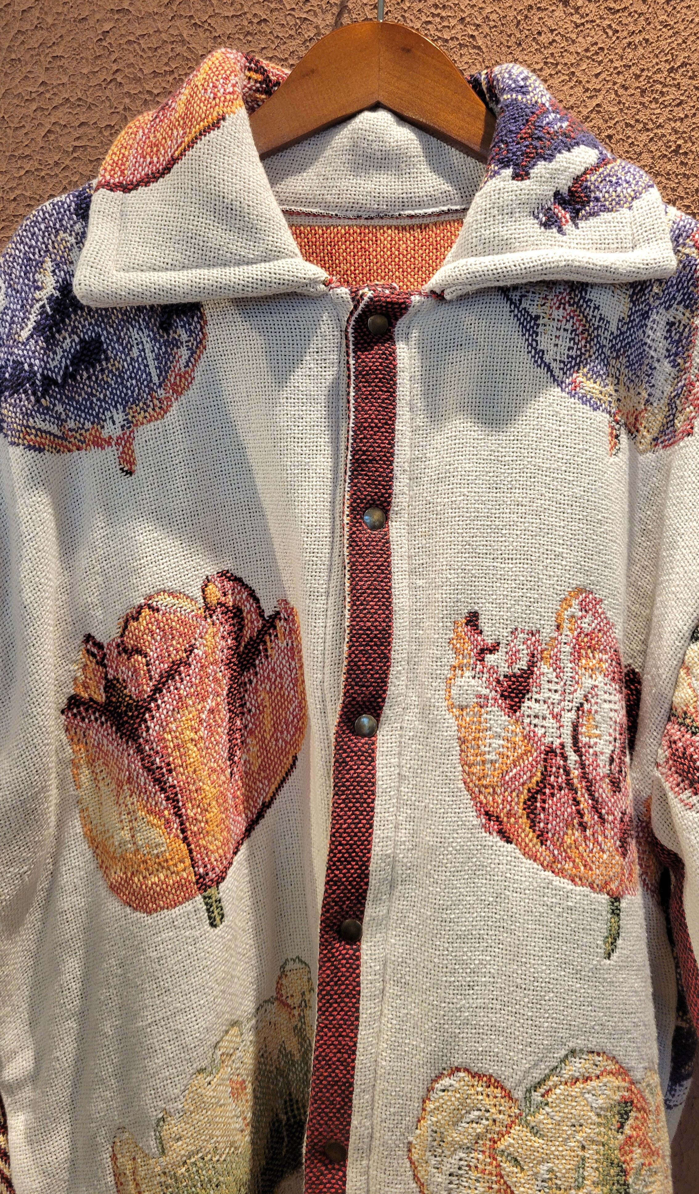 ヴィンテージのブランケットを使用したリメイクシャツ/ジャケット。素材表記はありませんがコットンのようです。やや厚手、重量感があります。着用時にストレスに感じるほどではありません。フロントはスナップボタンです。メンズ仕様の大きめサイズで女性がオーバーサイズで可愛く着られます。もちろん男性にもおすすめです。