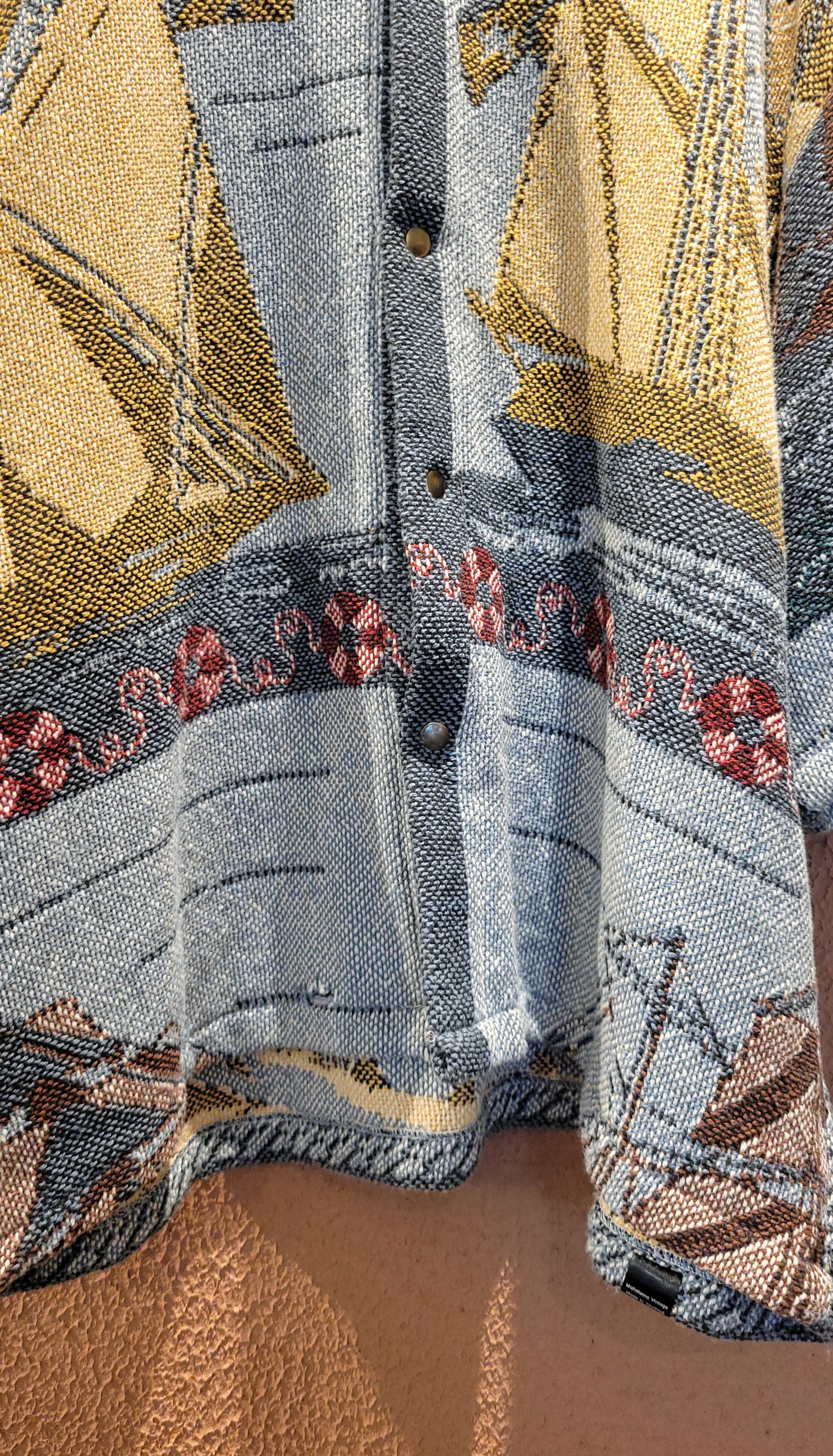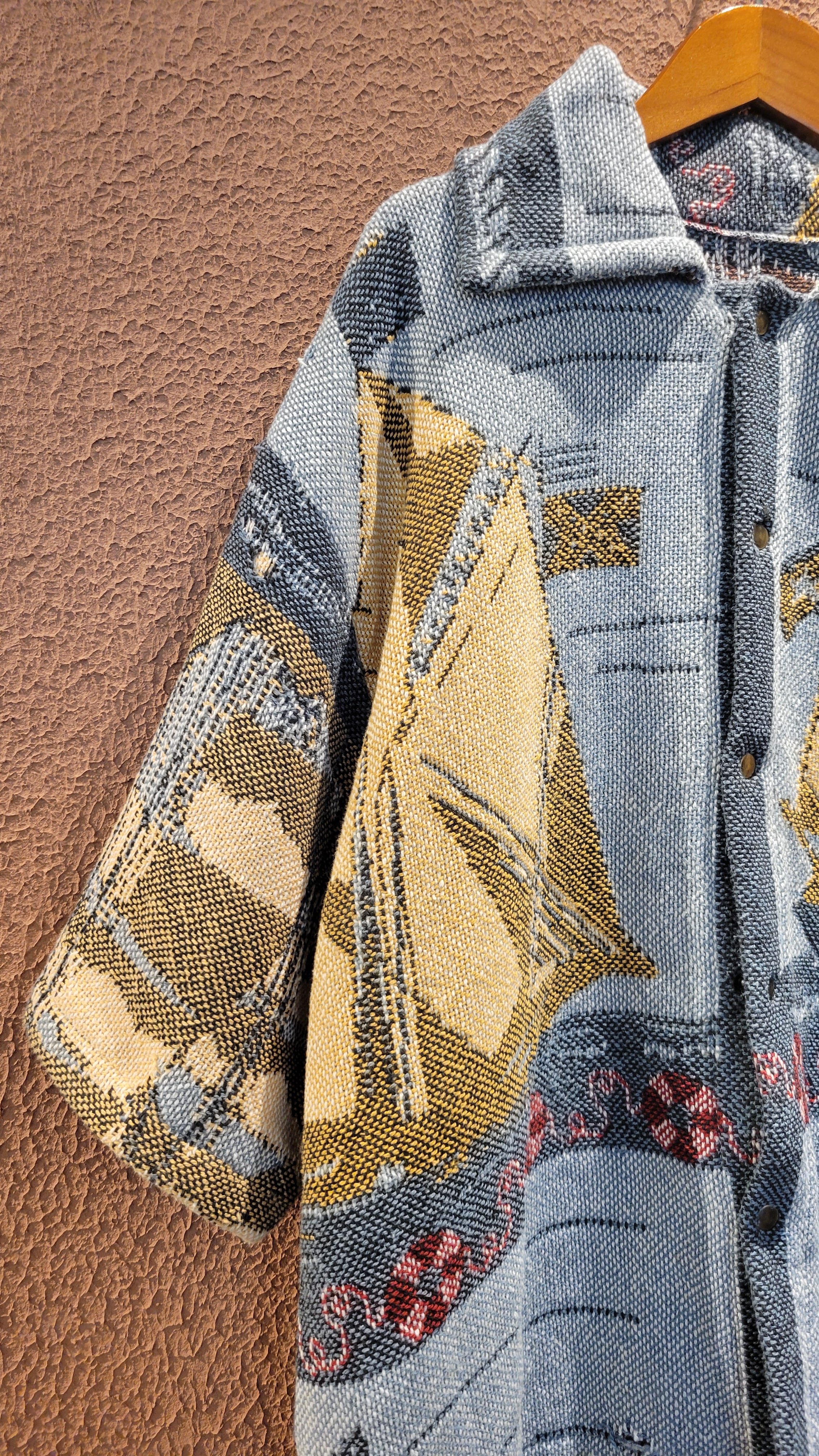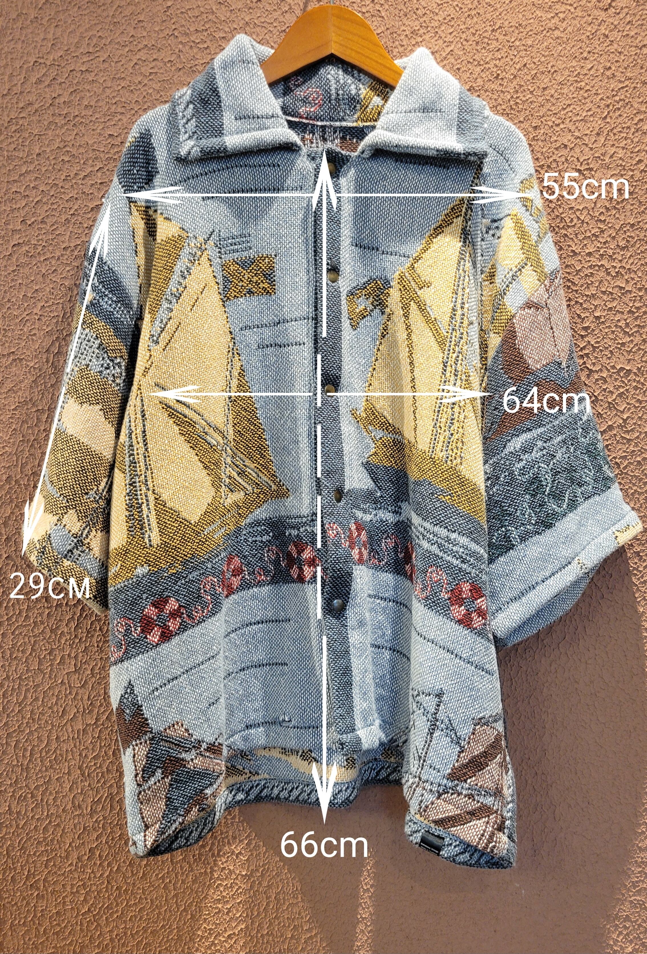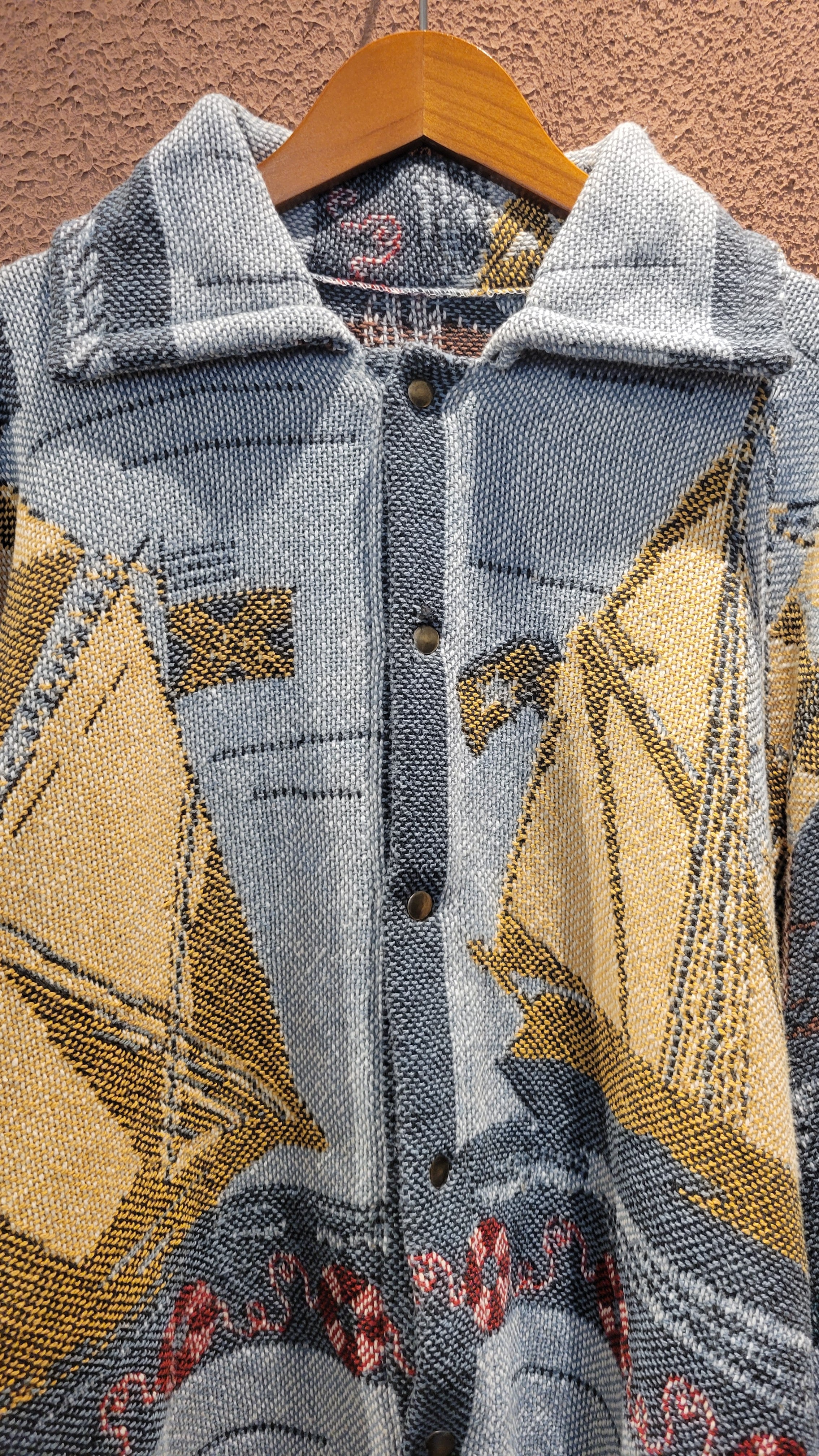 ヴィンテージのブランケットを使用したリメイクシャツ/ジャケット。素材表記はありませんがコットンのようです。柔らかく軽量です。フロントはスナップボタンです。メンズ仕様の大きめサイズで女性がオーバーサイズで可愛く着られます。もちろん男性にもおすすめです。