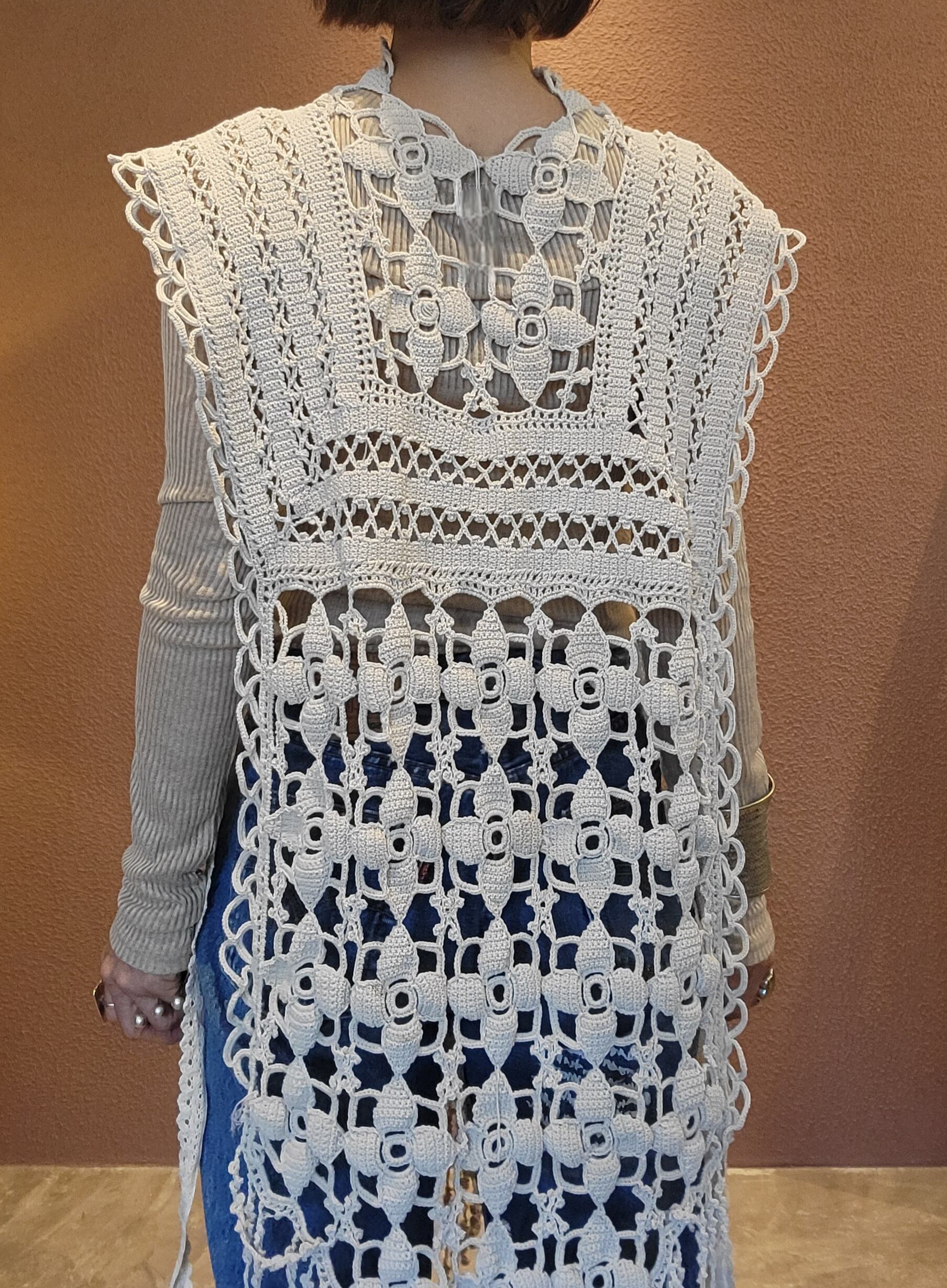 RMDR200 ヴィンテージクロシェリメイクワンピース/ ポンチョ