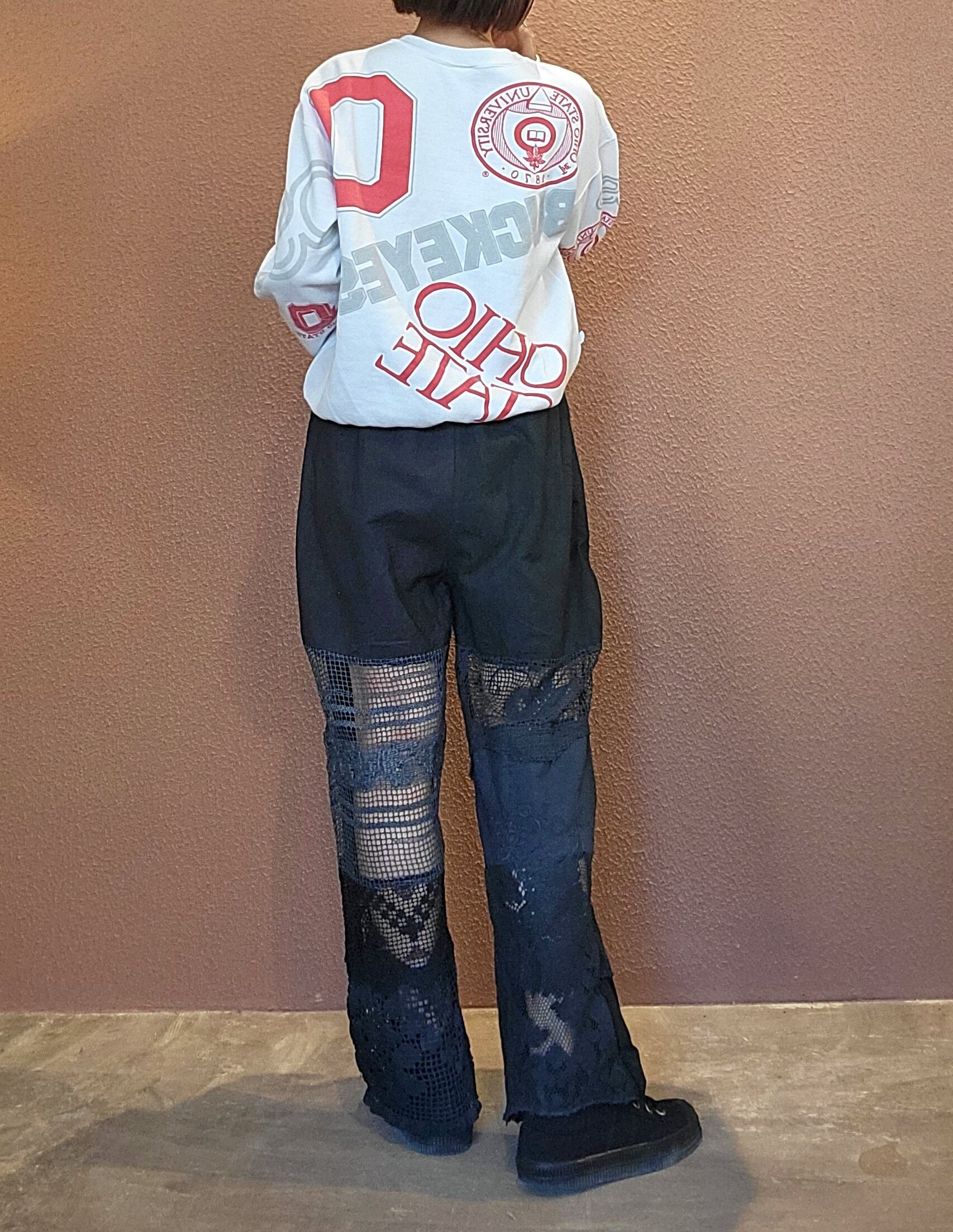 RMPT415 後染めブラックレースリメイクパンツ
