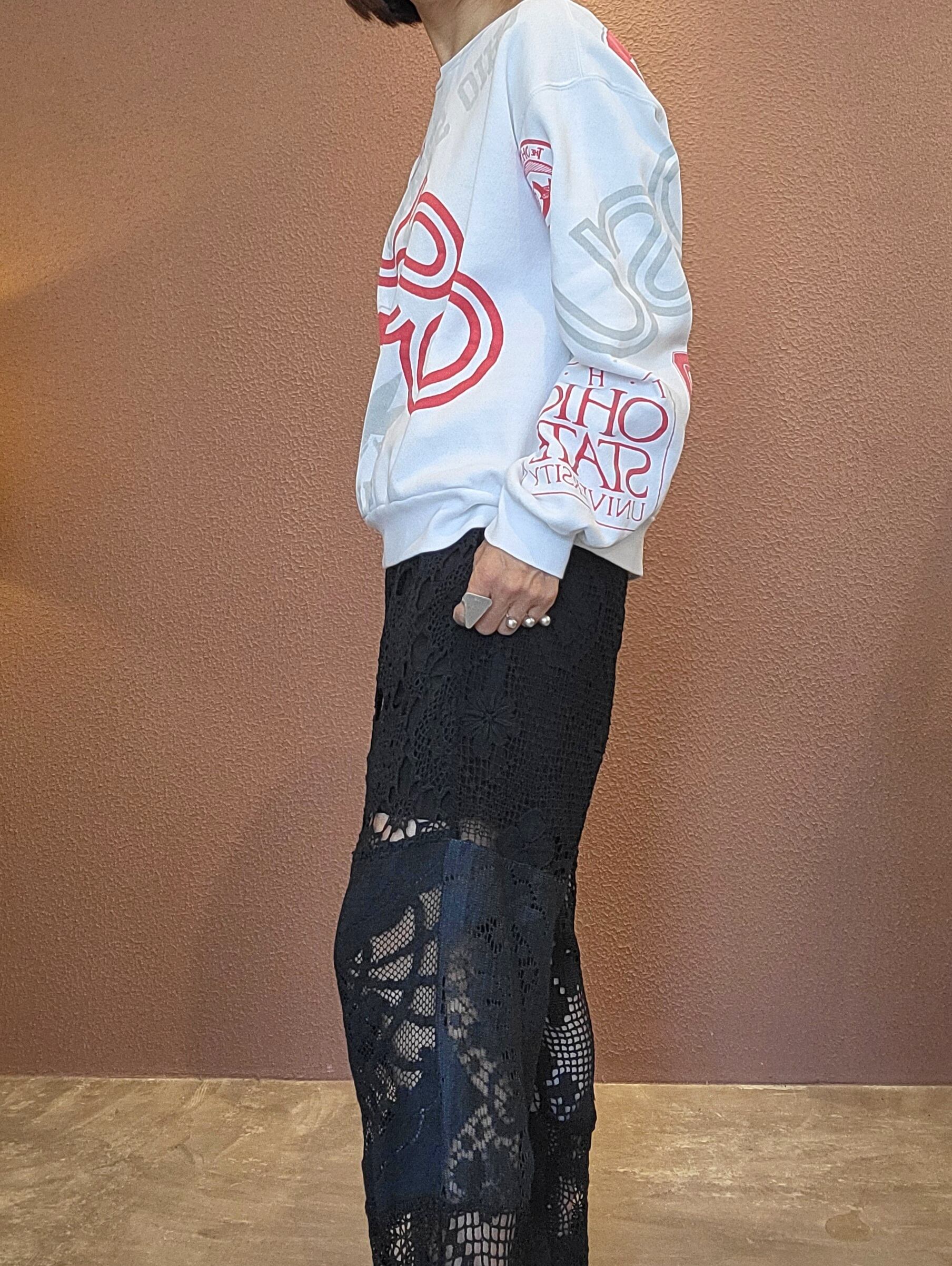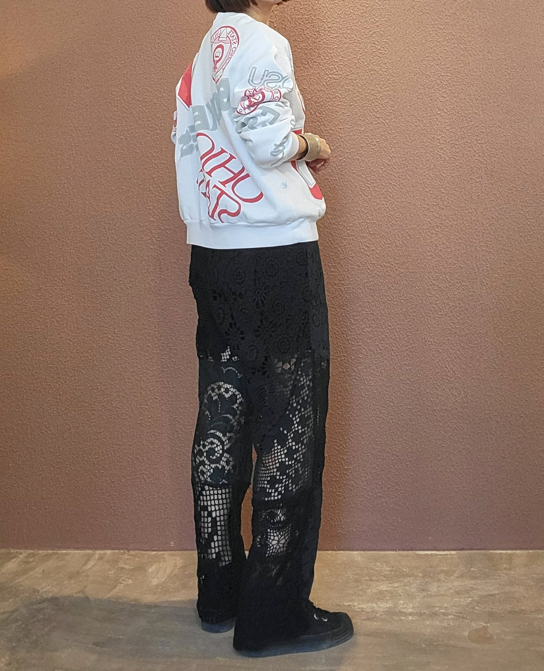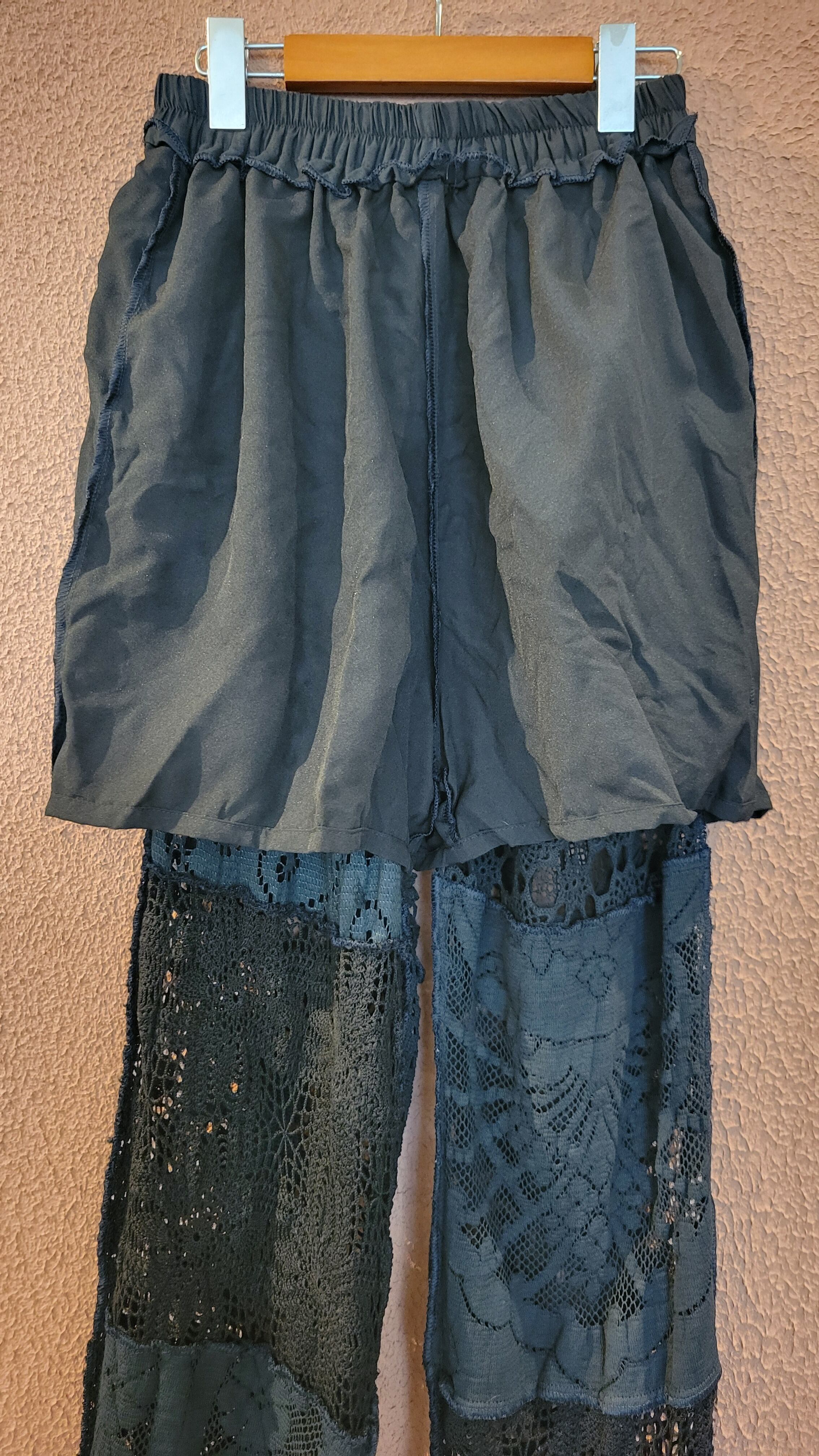 t様専用 RMPT417 後染めブラックレースリメイクパンツ