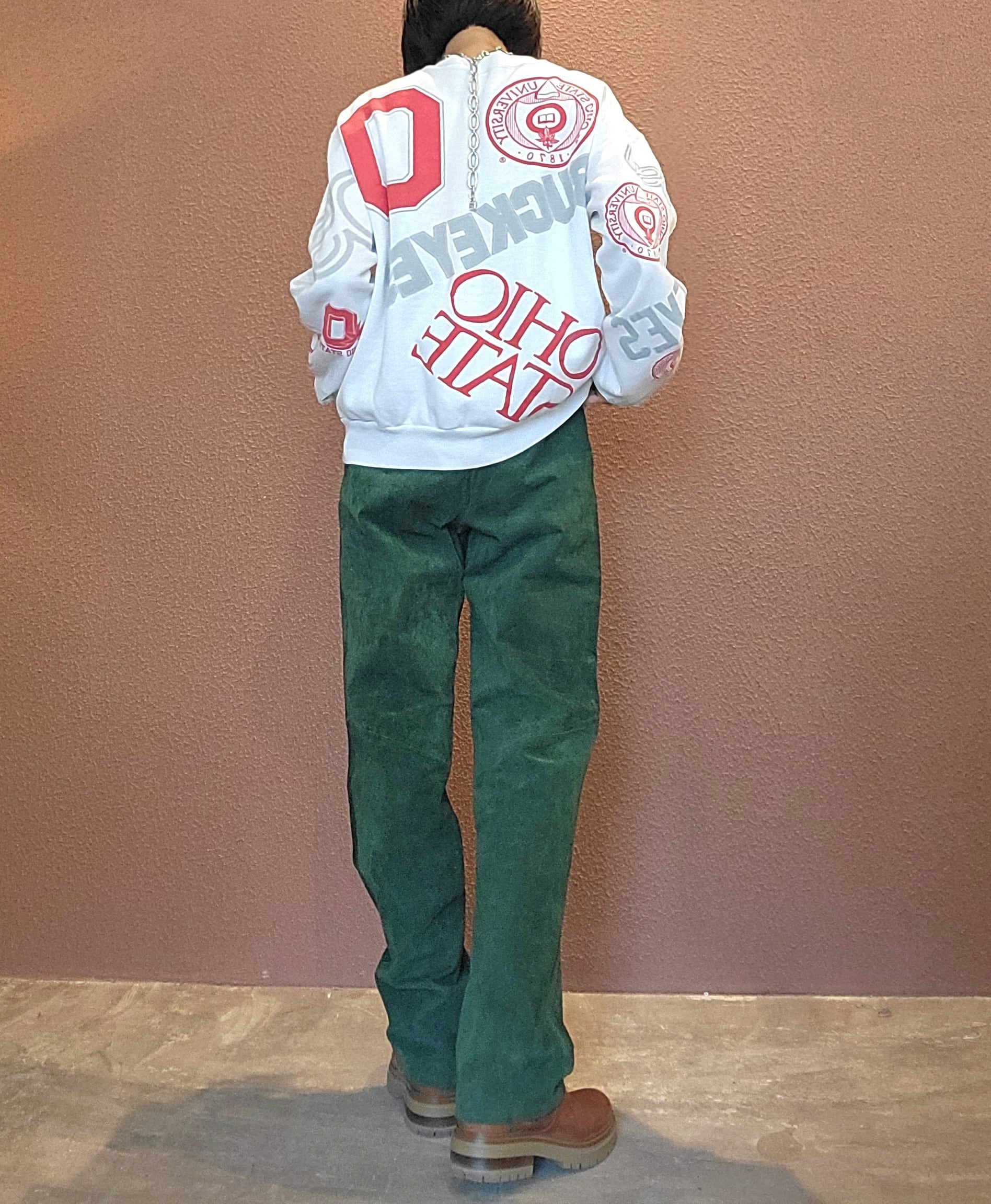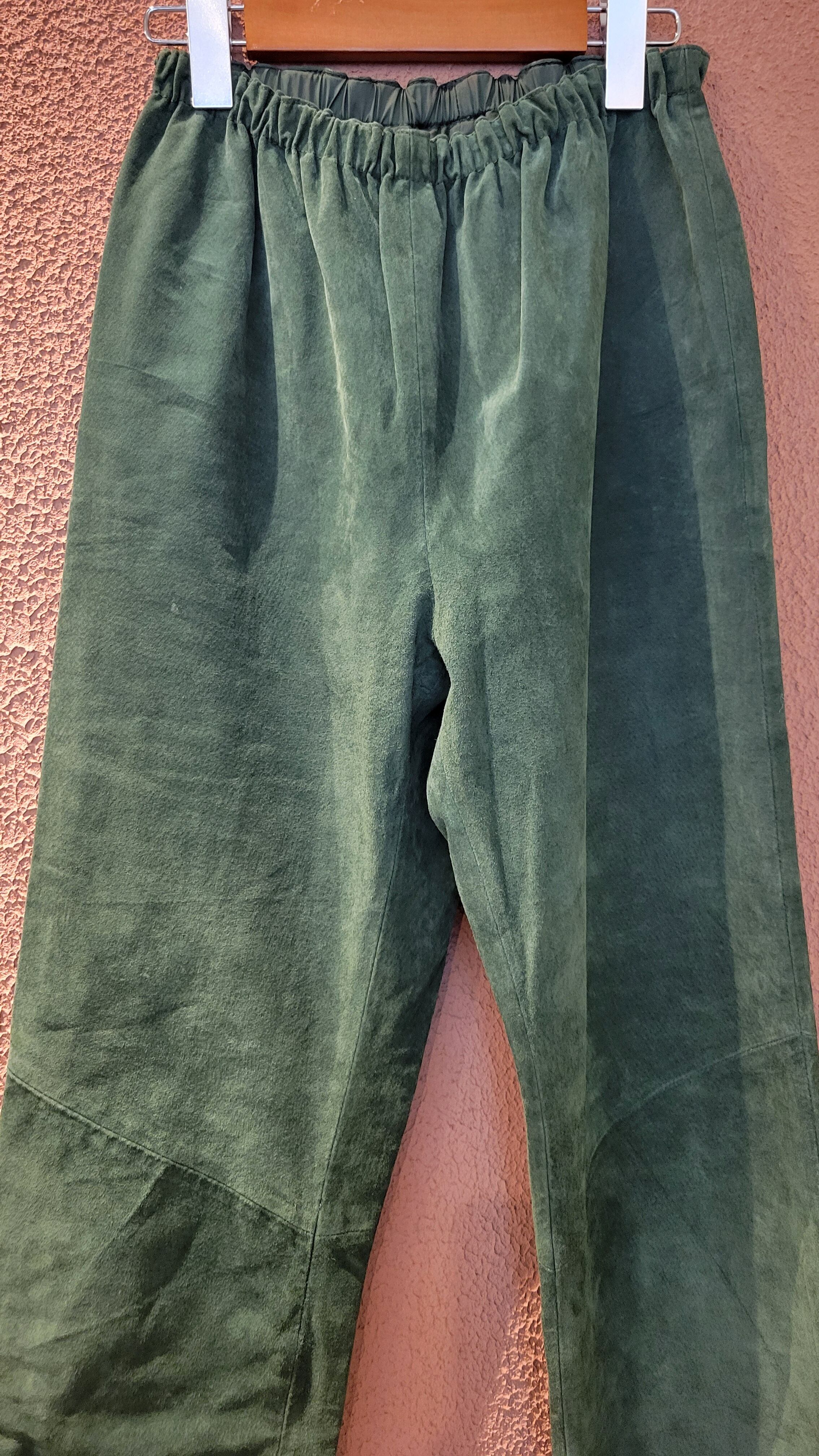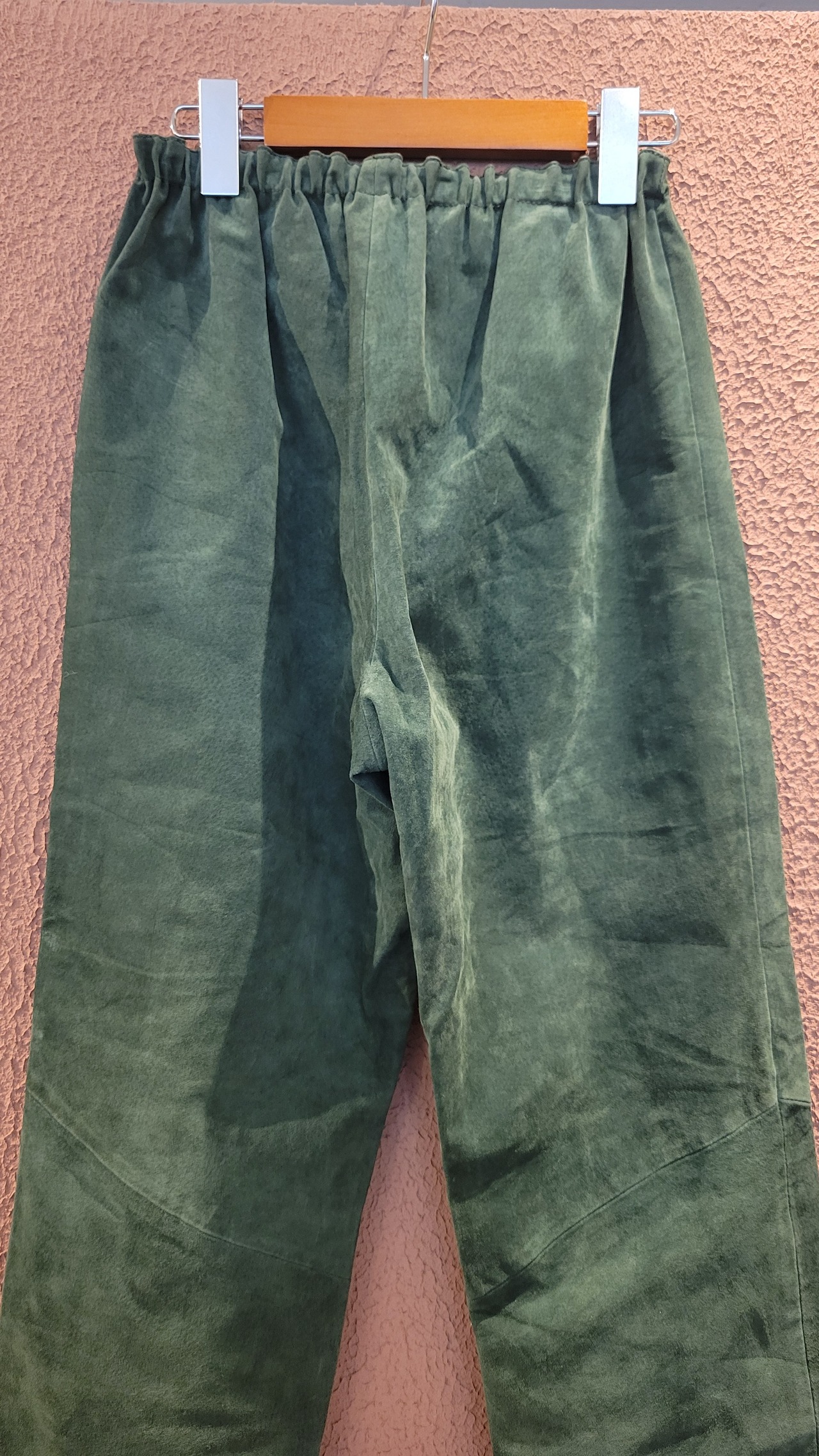 スウェード素材のヴィンテージレギンスパンツ。ウエストゴム、ポケットは付いていません。着脱簡単、ストレスフリーな着用感、さらに綺麗なカラーにシルエット。とても良いコンディション、使える1本です。