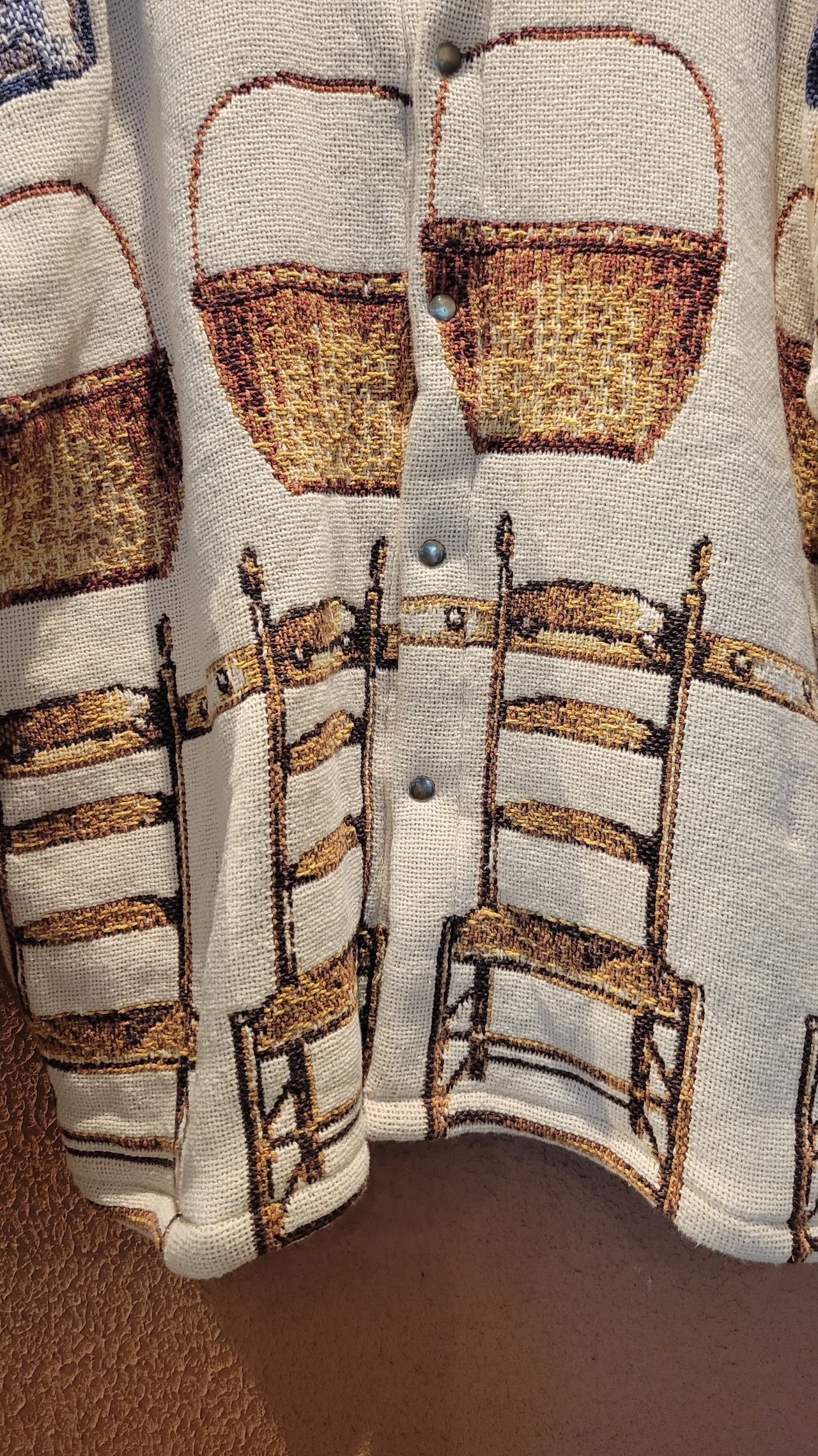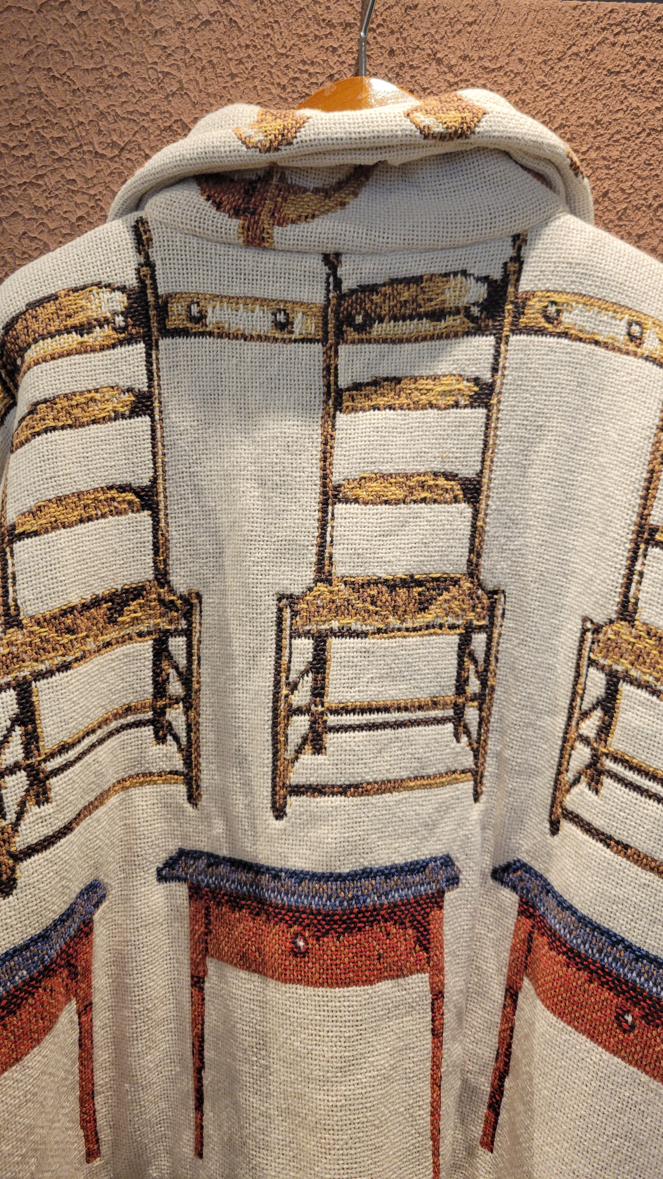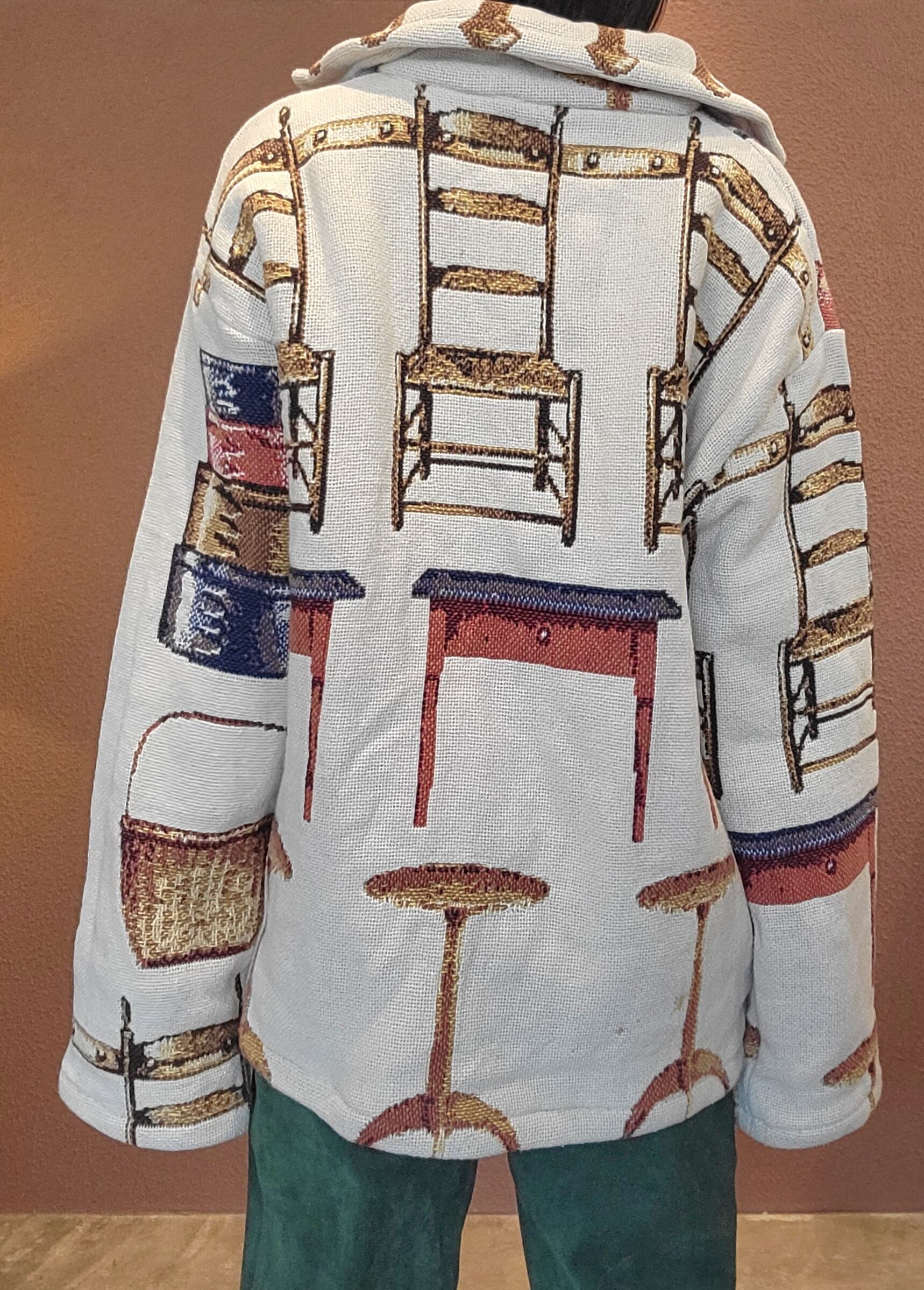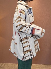 ヴィンテージブランケットを使用したリメイクジャケット。素材表記はありませんがコットンのようです。やや重量感がありますが着用時にストレスに感じるほどではありません。フロントはスナップボタンで着脱がスムーズです。メンズ仕様ですが女性がオーバーサイズで着て可愛いサイズ感です。もちろん男性にもおすすめです。*後ろ身頃左裾辺りに5mm〜1cmほどのシミがあります。画像でご確認ください。