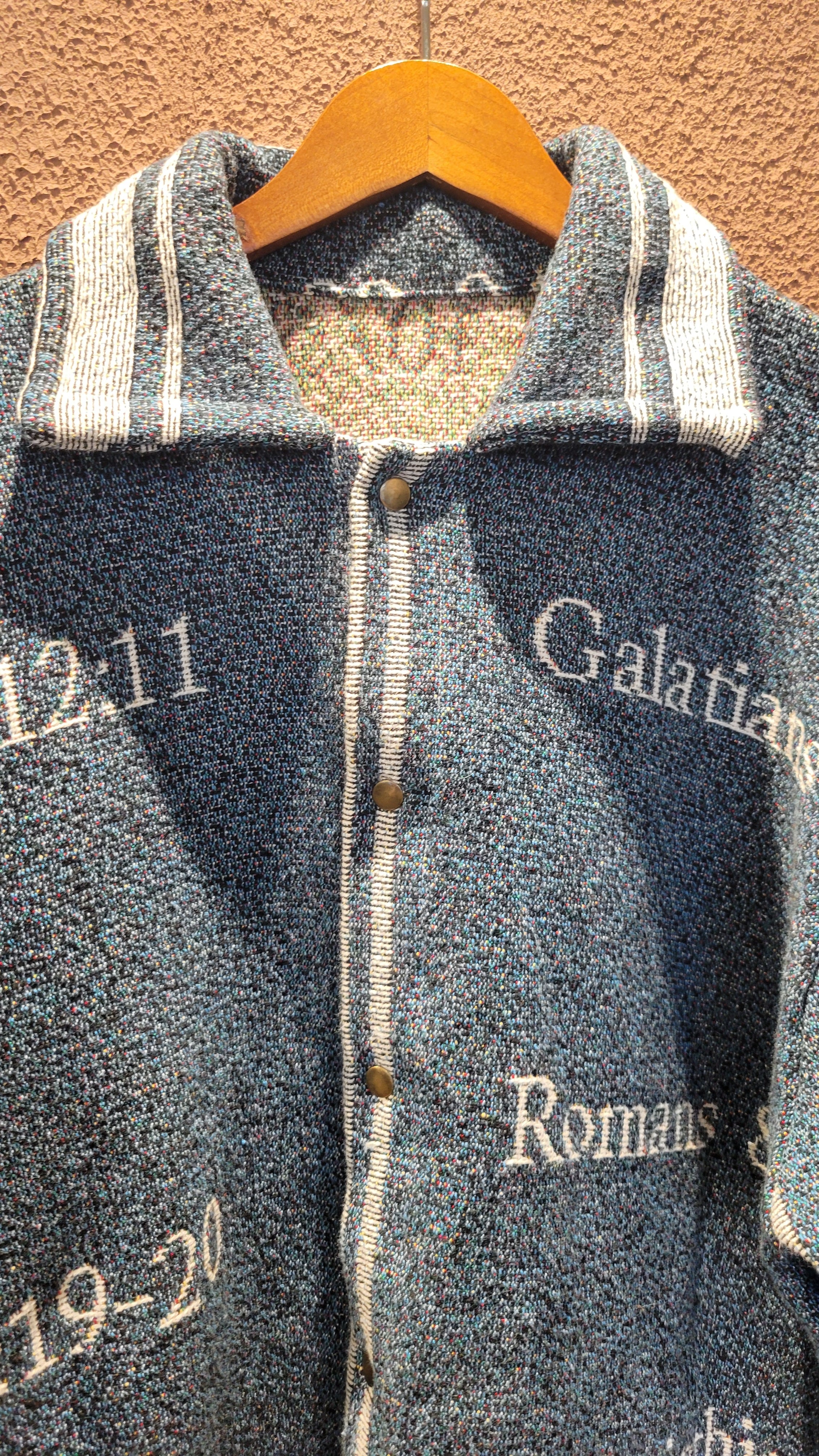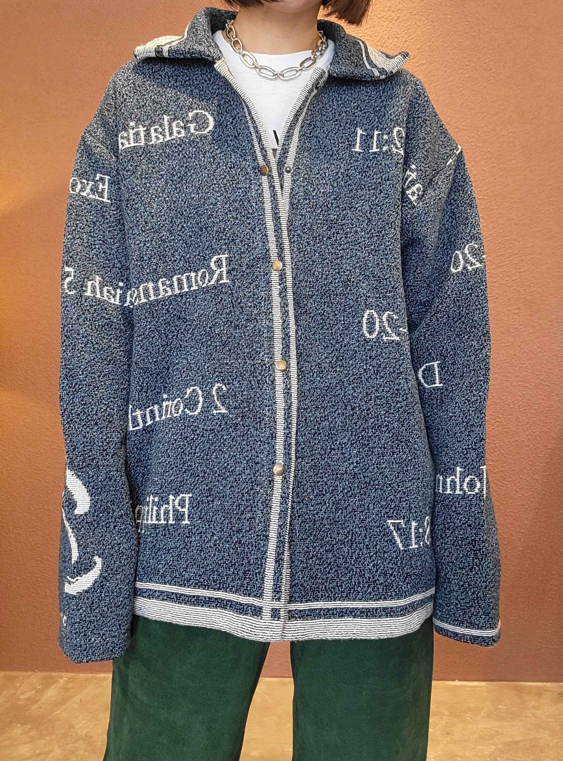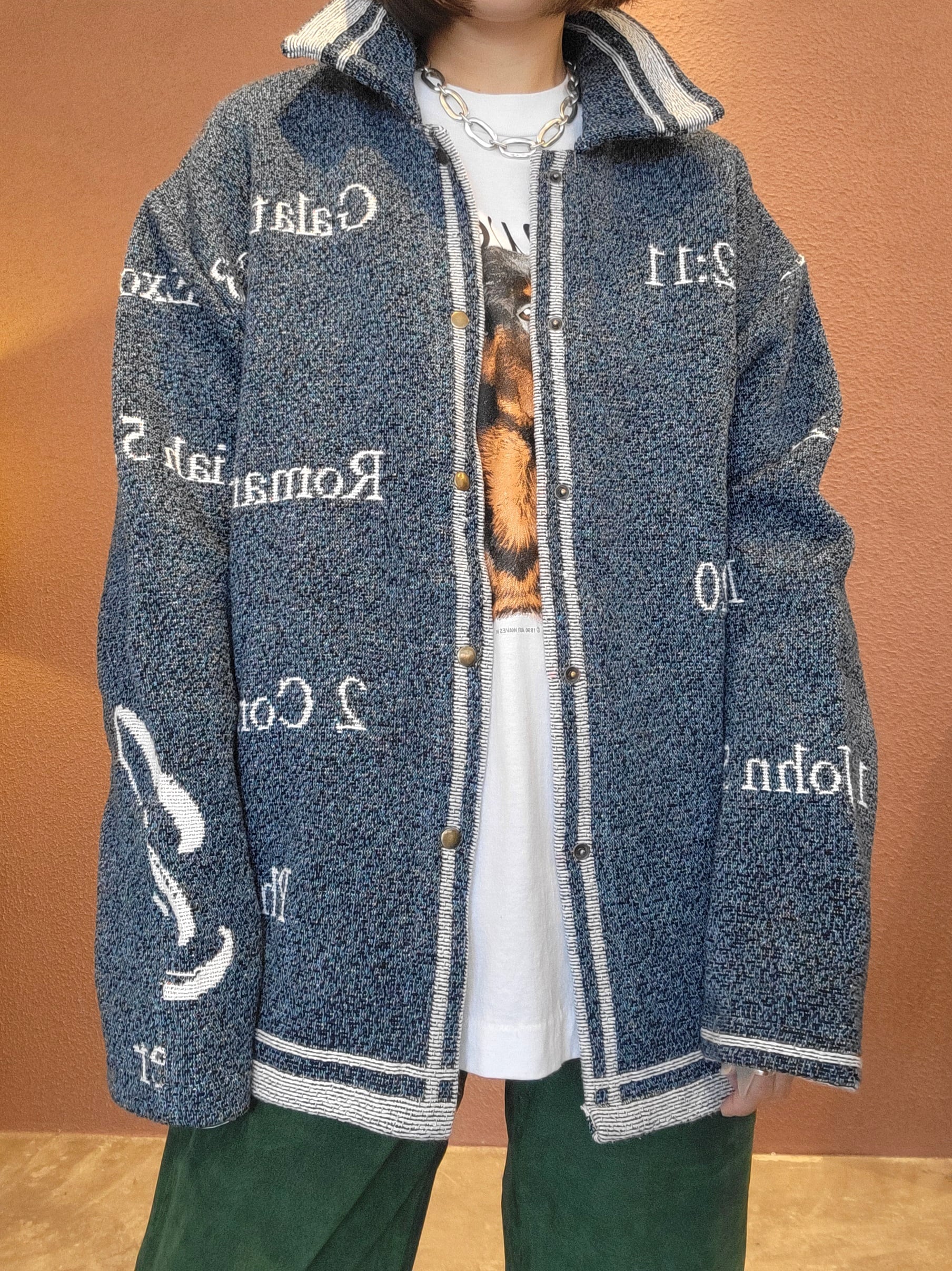 ヴィンテージブランケットを使用したリメイクジャケット。素材表記はありませんがコットンのようです。フロントはスナップボタンで着脱がスムーズです。メンズ仕様ですが女性がオーバーサイズで着て可愛いサイズ感です。もちろん男性にもおすすめです。