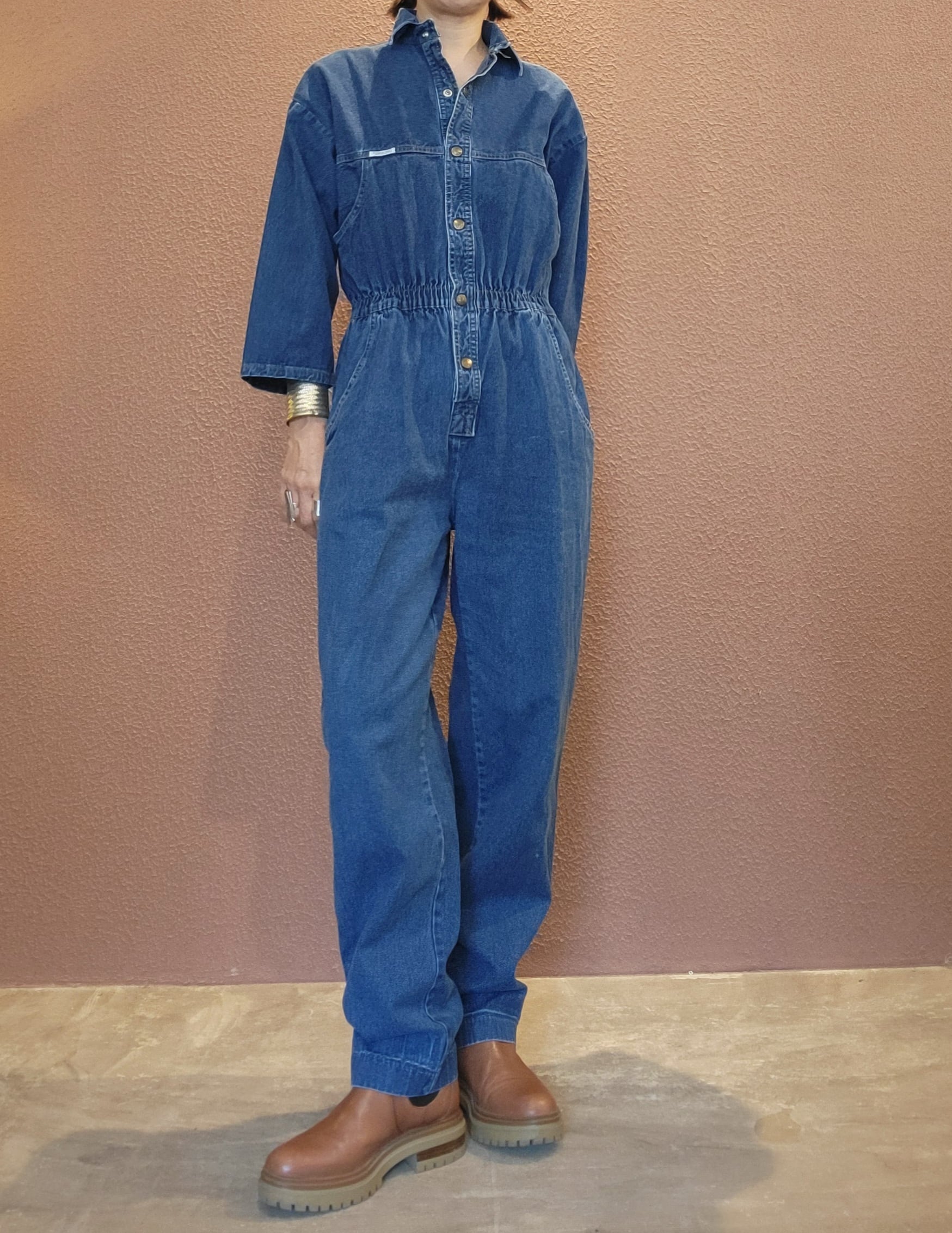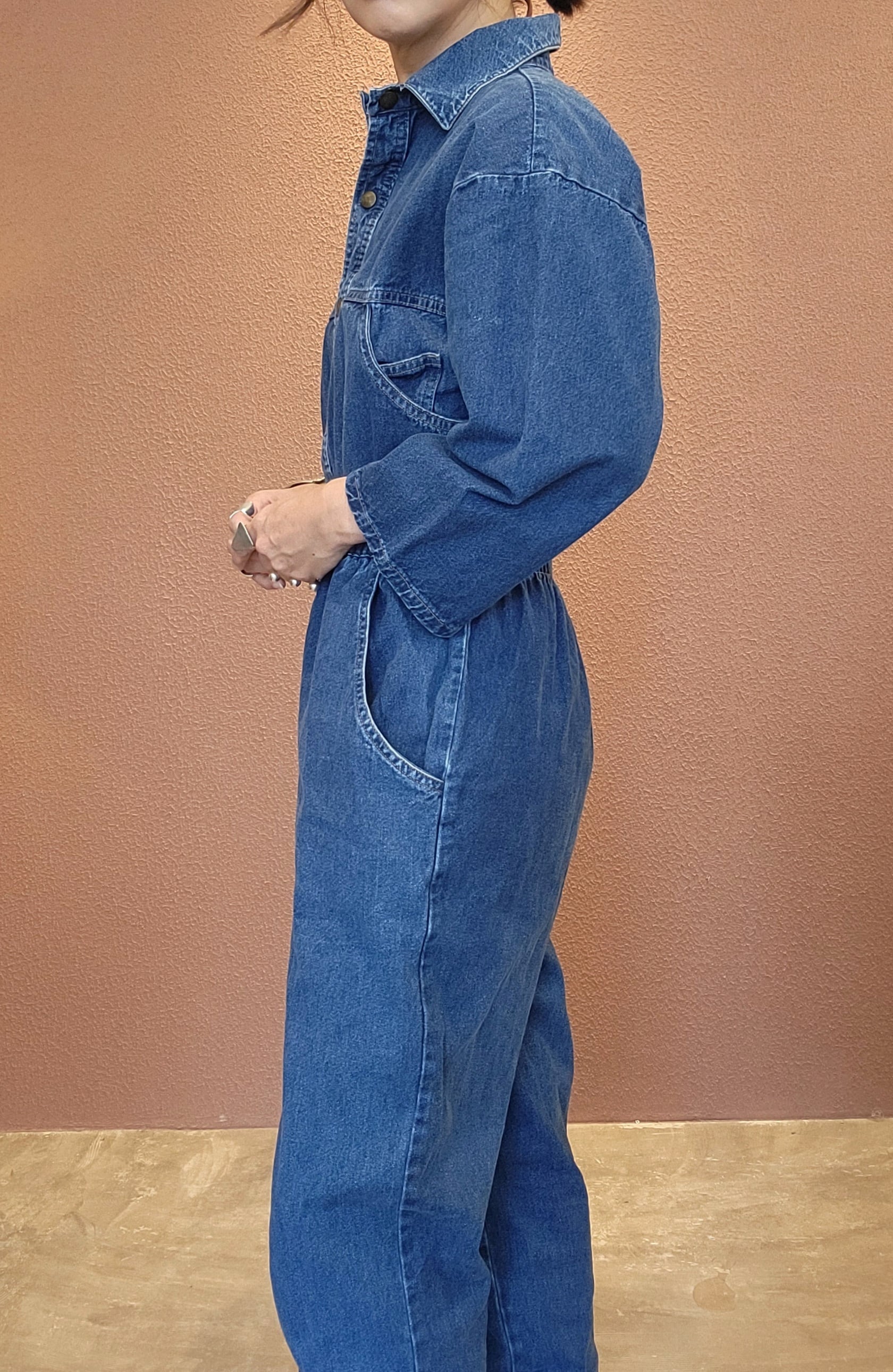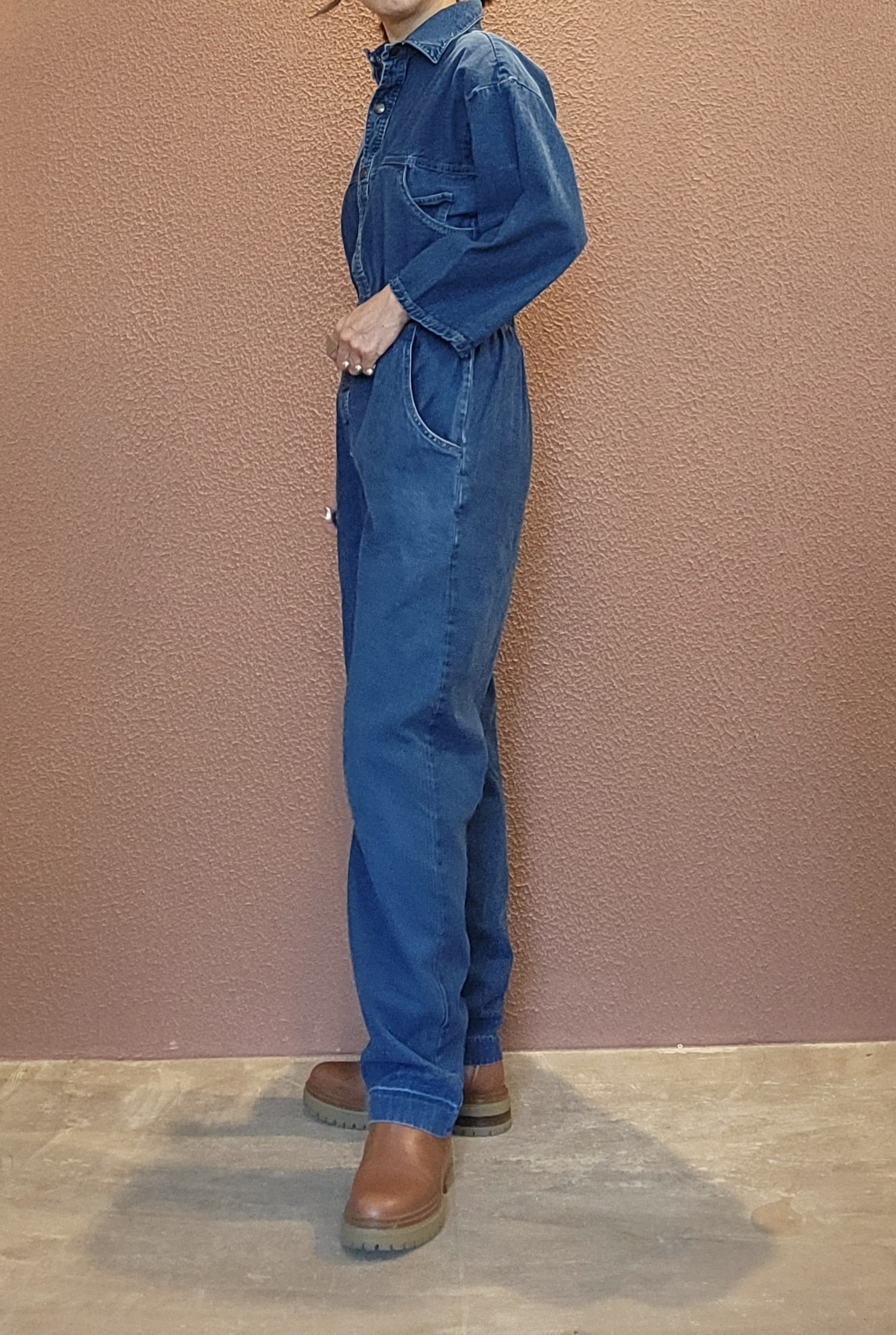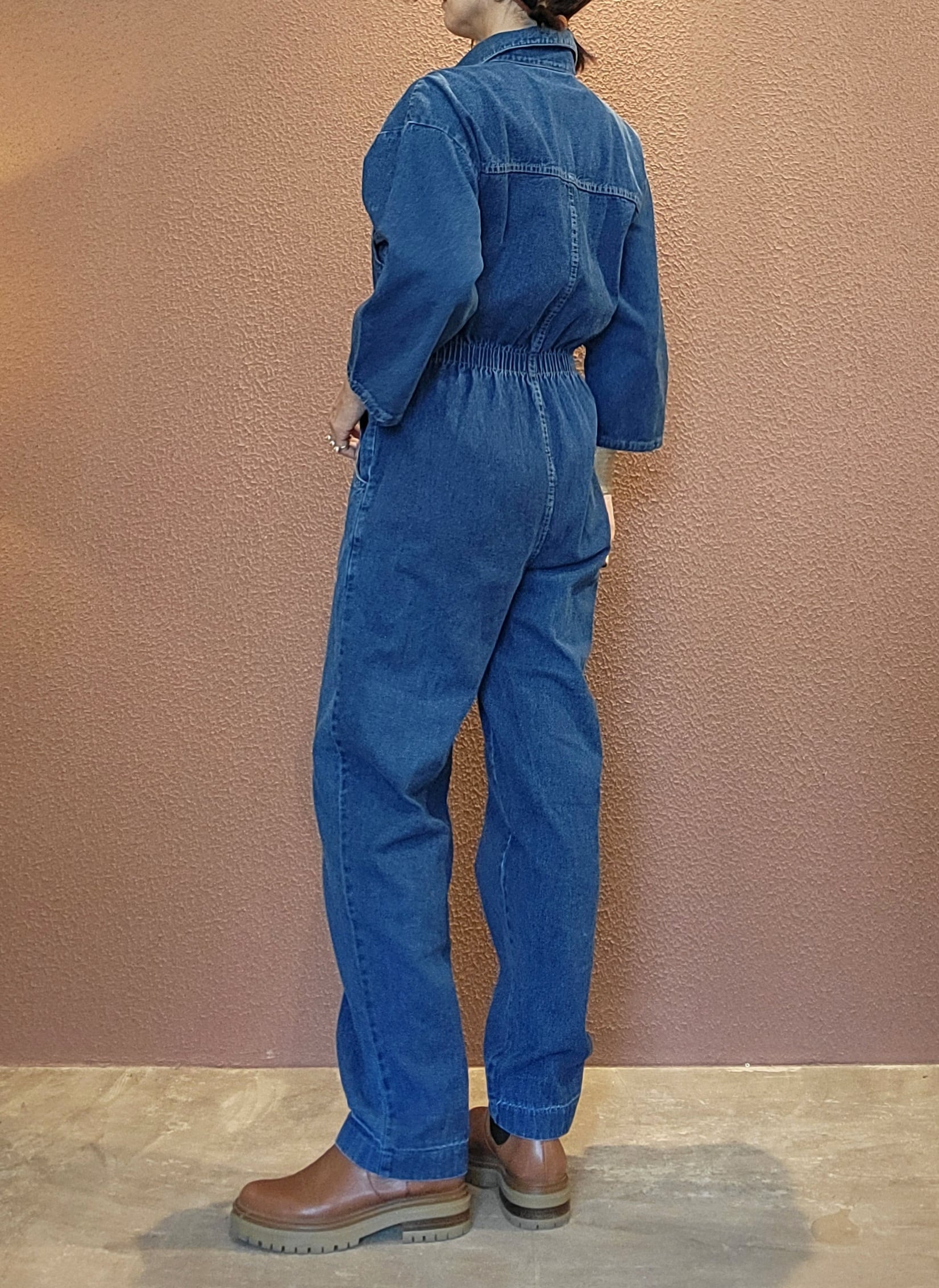 落とした肩のライン、ハイウエスト、ゆったりとした腰周り〜わたりのサイズ、そしてテーパードシルエット。ハイウエスト位置でのゴム仕様は着用時に安定感があり快適な着心地です。カジュアルはもちろん、ヒールを合わせてきれいめなスタイリングも仕上がります。