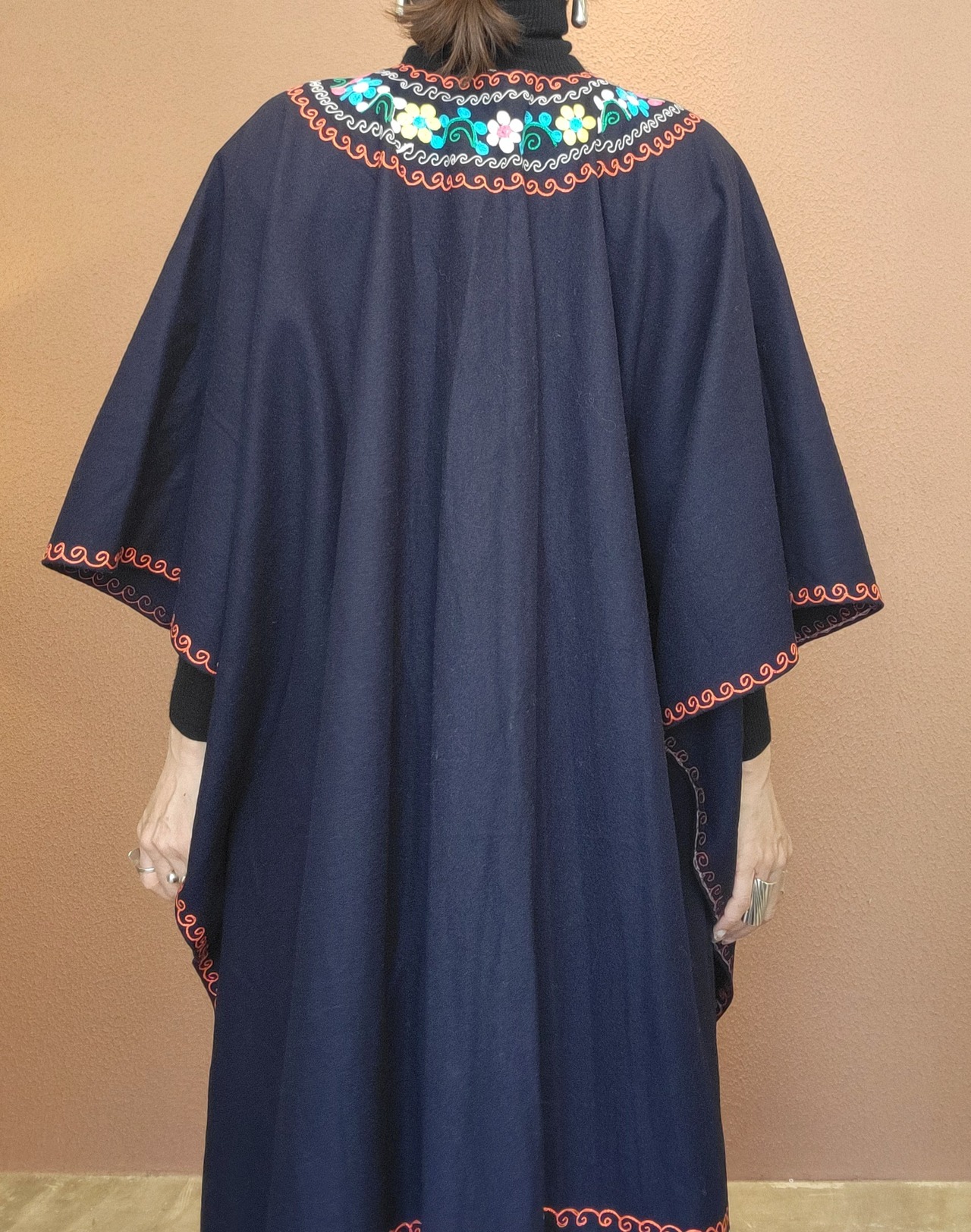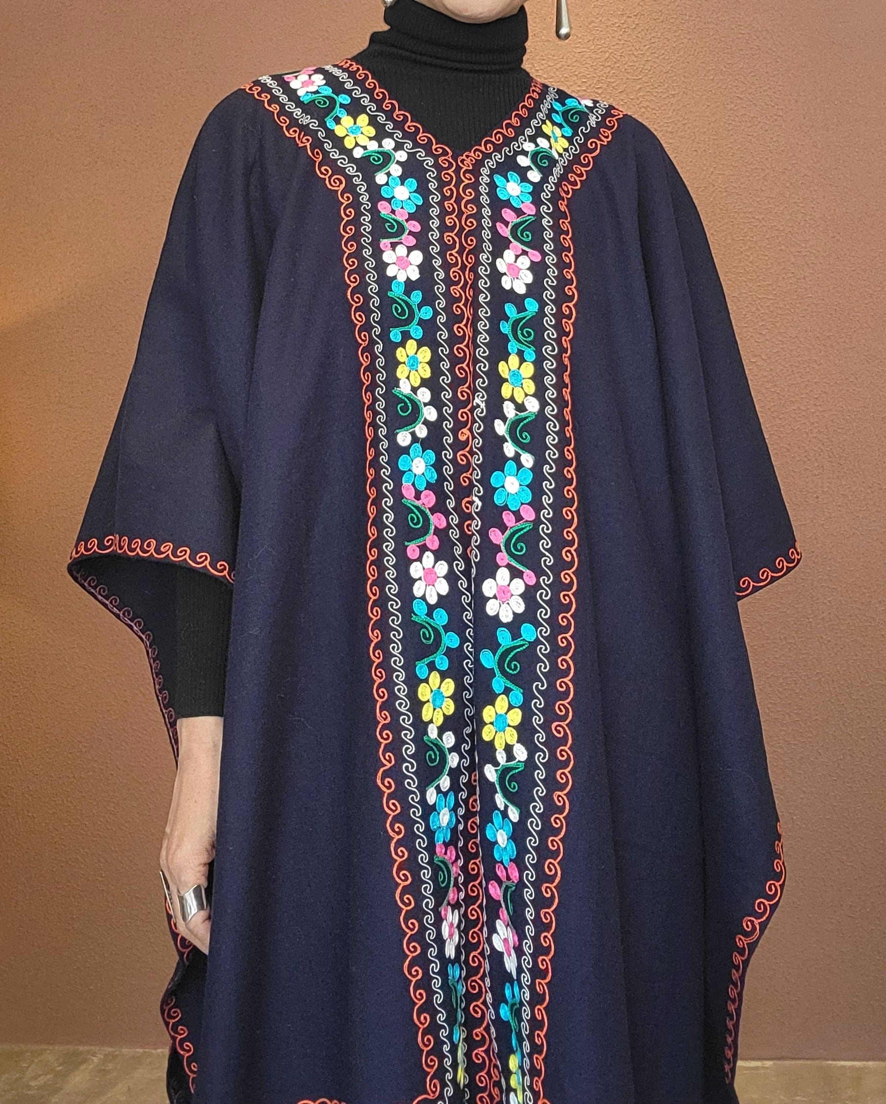 THDR765 刺繍ウールポンチョ