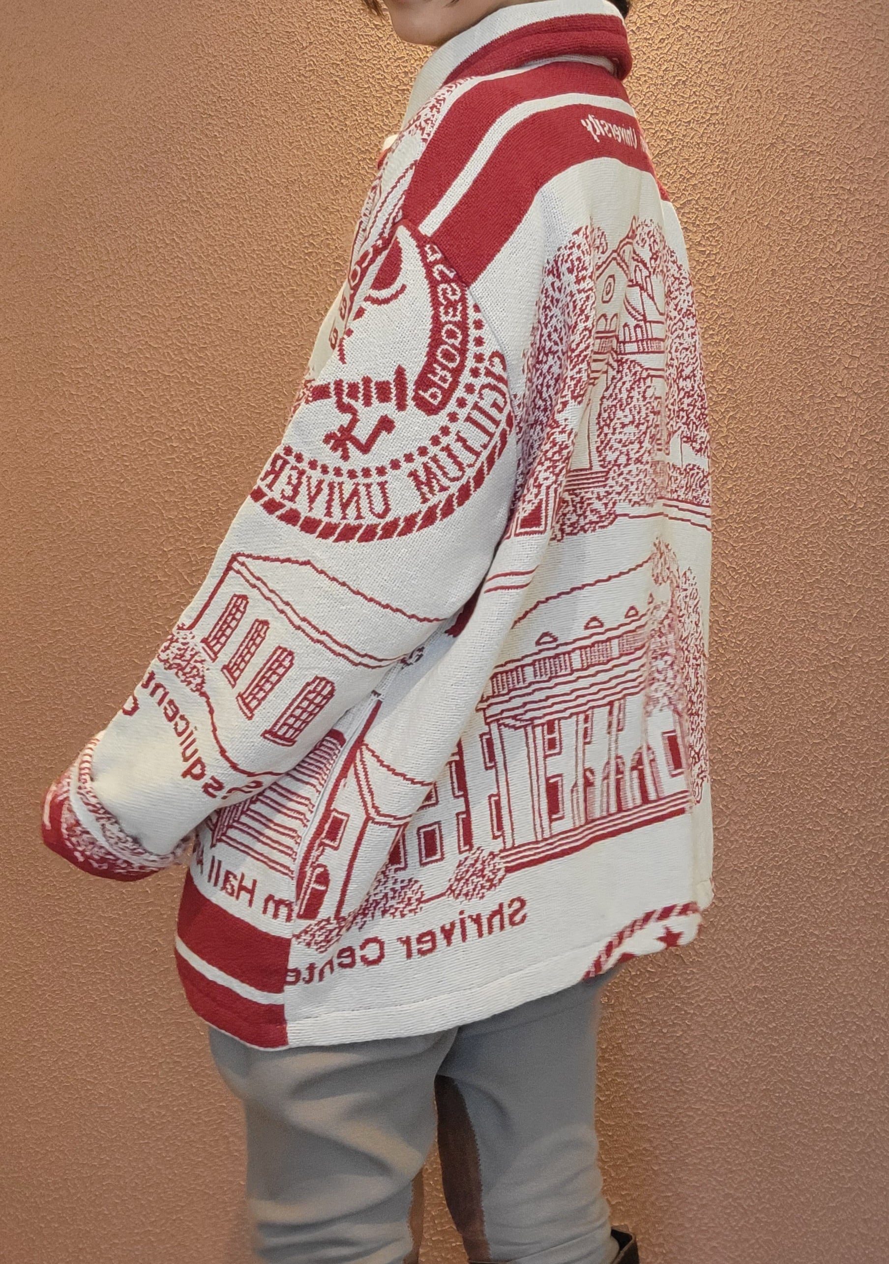 usedブランケットを使用したリメイクジャケット。素材はコットンです。フロントはスナップボタン仕様。左右サイドポケット付き。元々はメンズ仕様ですが女性がオーバーサイズで着ても素敵です。スウェットやニットなどやや厚手のインナーもOKなゆったりサイズ感。春先まで着られます。