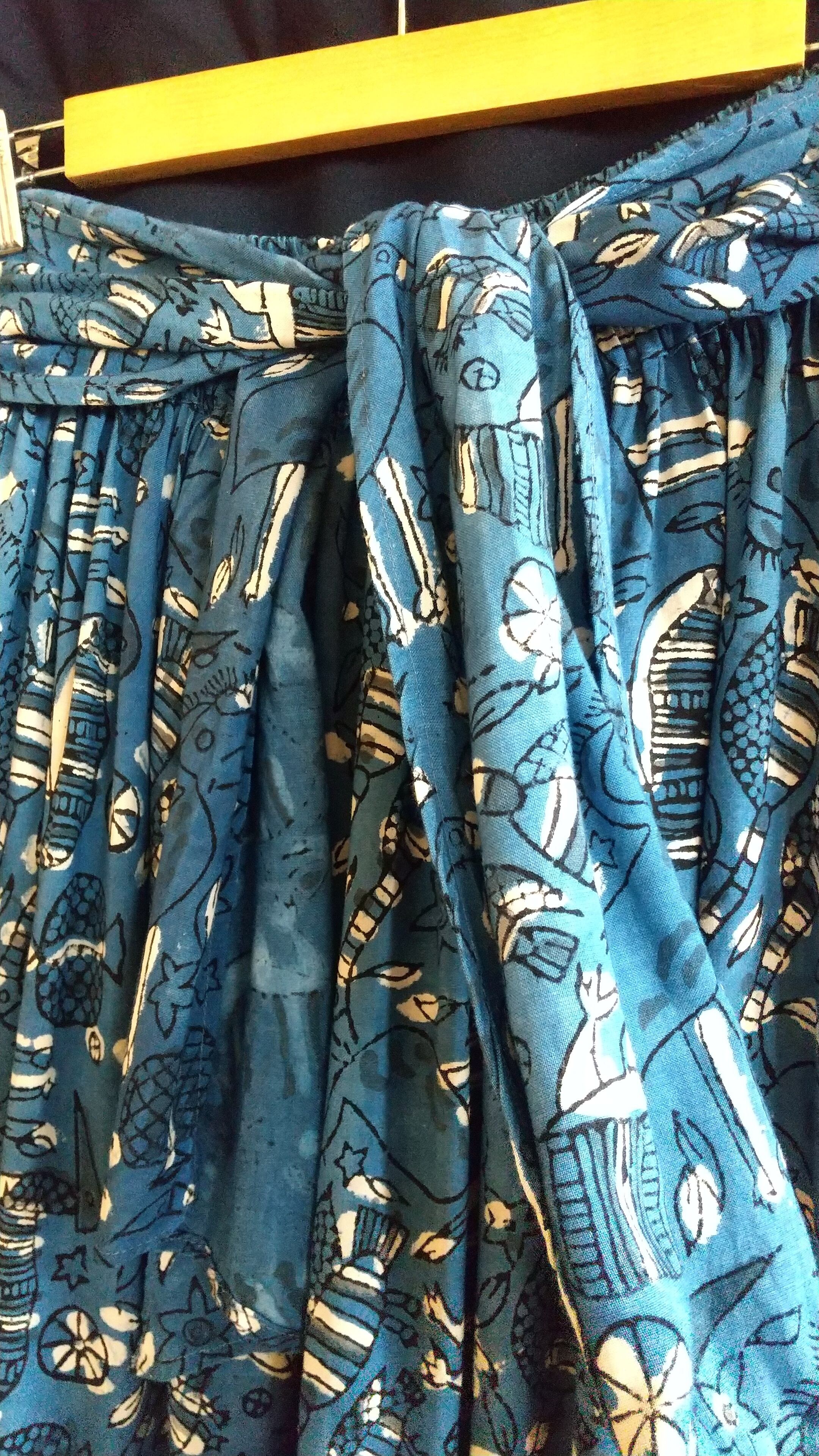 壁画のようなプリミティブなプリントが可愛いヴィンテージギャザースカート。紐を通して着用する巻きスカートですのでウエストサイズ調整可能です。素材表記はありませんがレーヨンのような落ち感のある柔らかい素材です。たっぷりの生地を使用しておりギャザーのボリュームが魅力のスカートです。