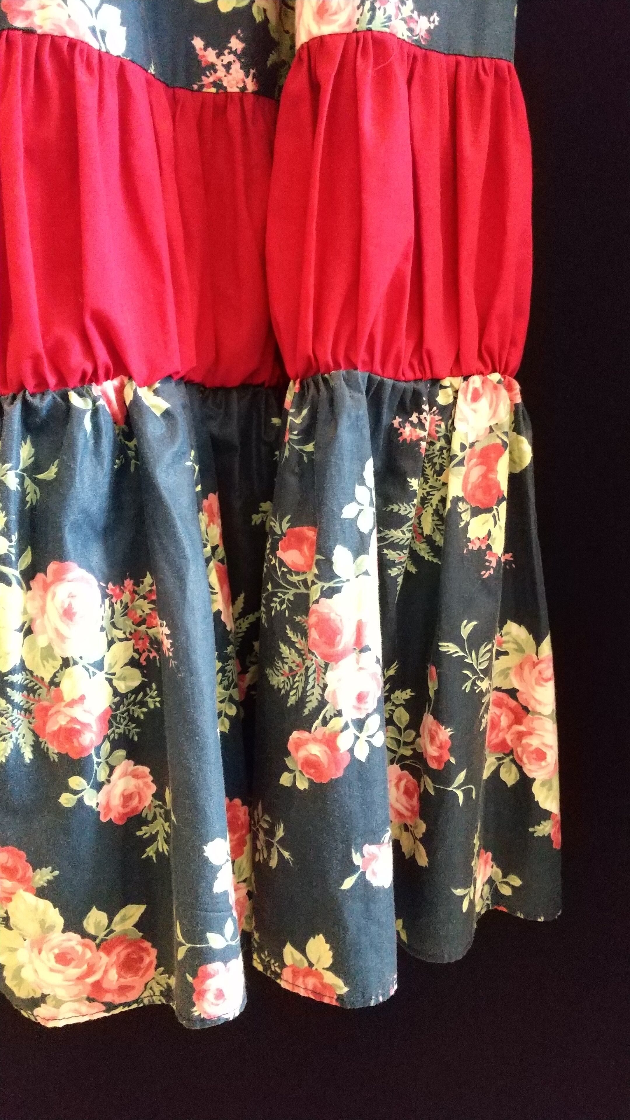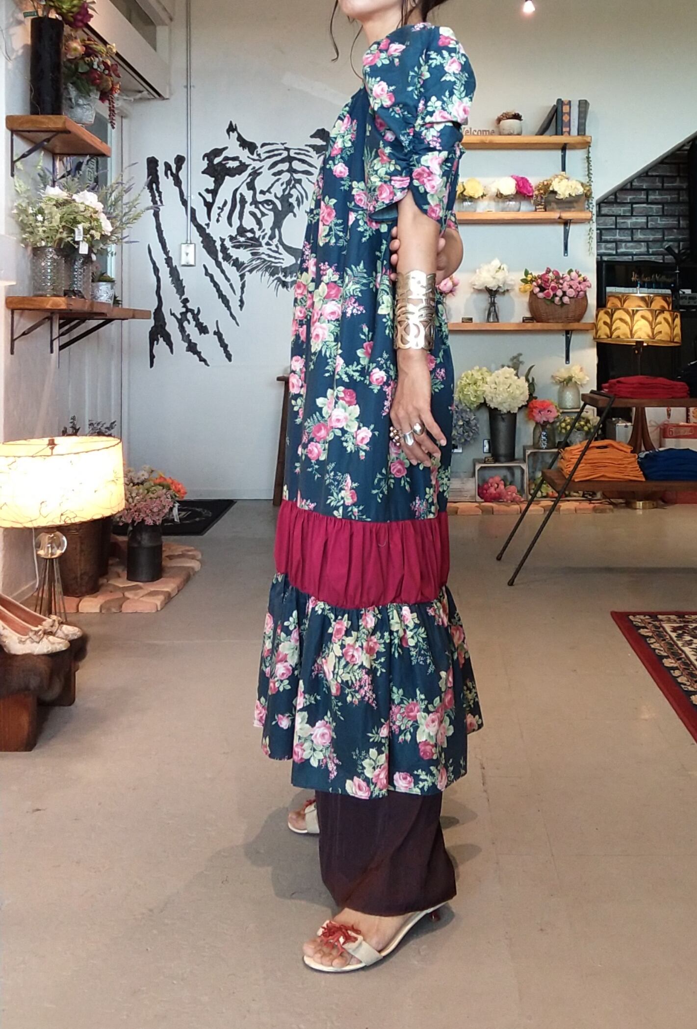 Made in Hawaii のヴィンテージワンピース。素材表記はありませんが張り感のあるコットンのようです。パワーショルダーのボリュームに対し身ごろはすっきり縦のライン、裾の赤のトリミングが全体を引き締め甘くなり過ぎないワンピースです。