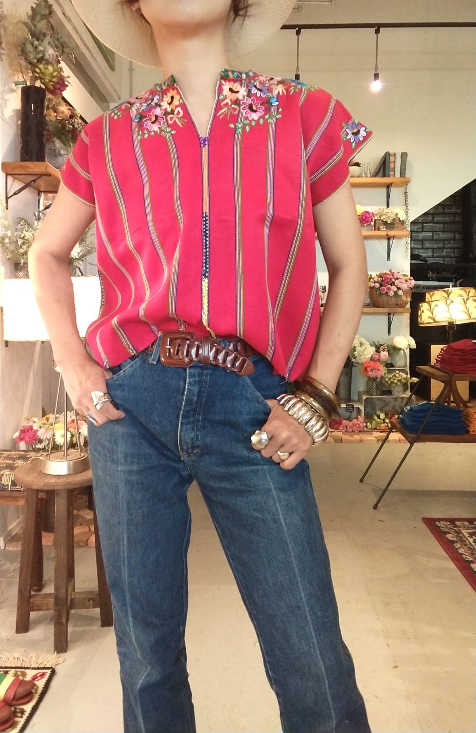 手仕事によるオアハカ刺繍のヴィンテージトップスです。