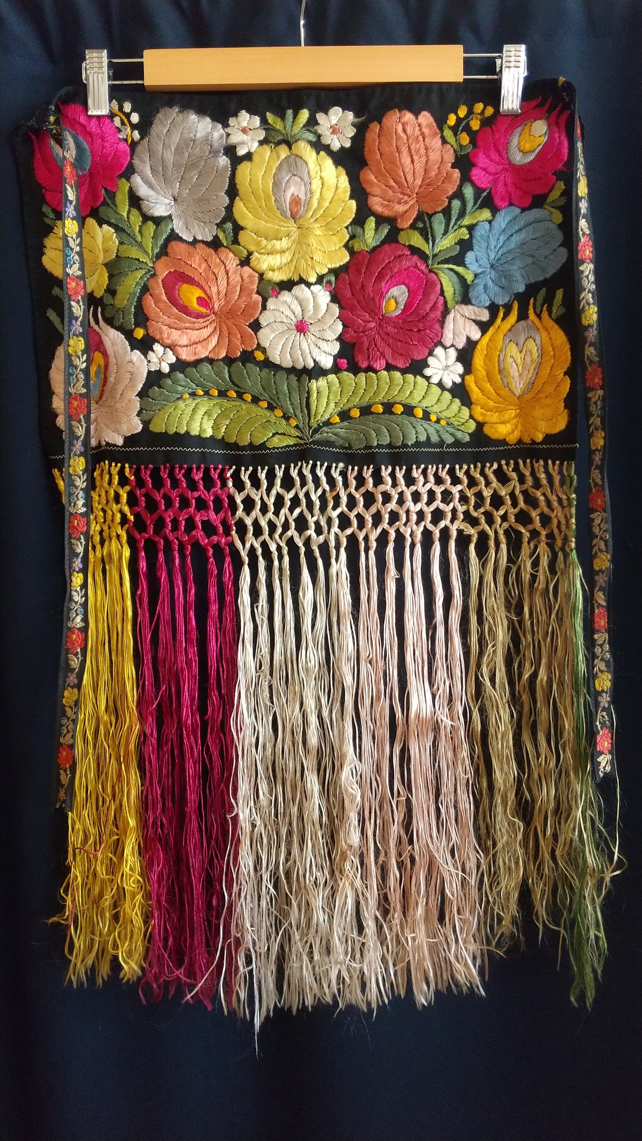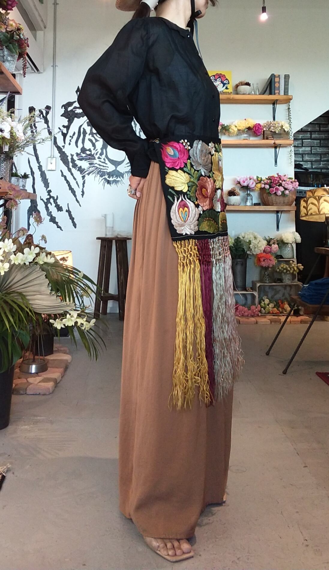 繊細で鮮やかなシルク刺繍が施されたヴィンテージエプロン。ハンドメイド、唯一無二の希少なヴィンテージピースです。