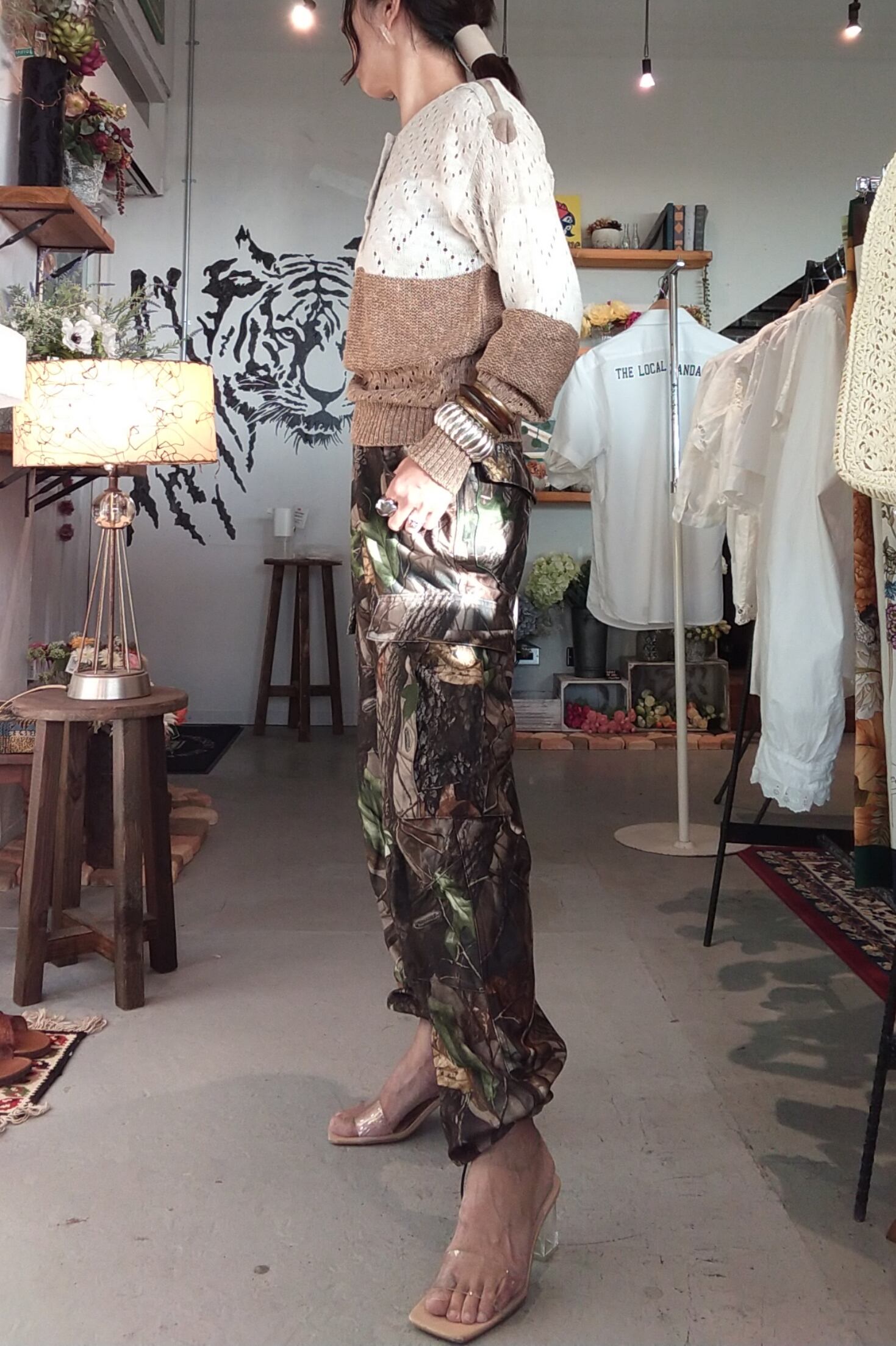 リアルツリー柄のヴィンテージカモフラージュパンツ。ウエストと丈のサイズ調節が可能です。