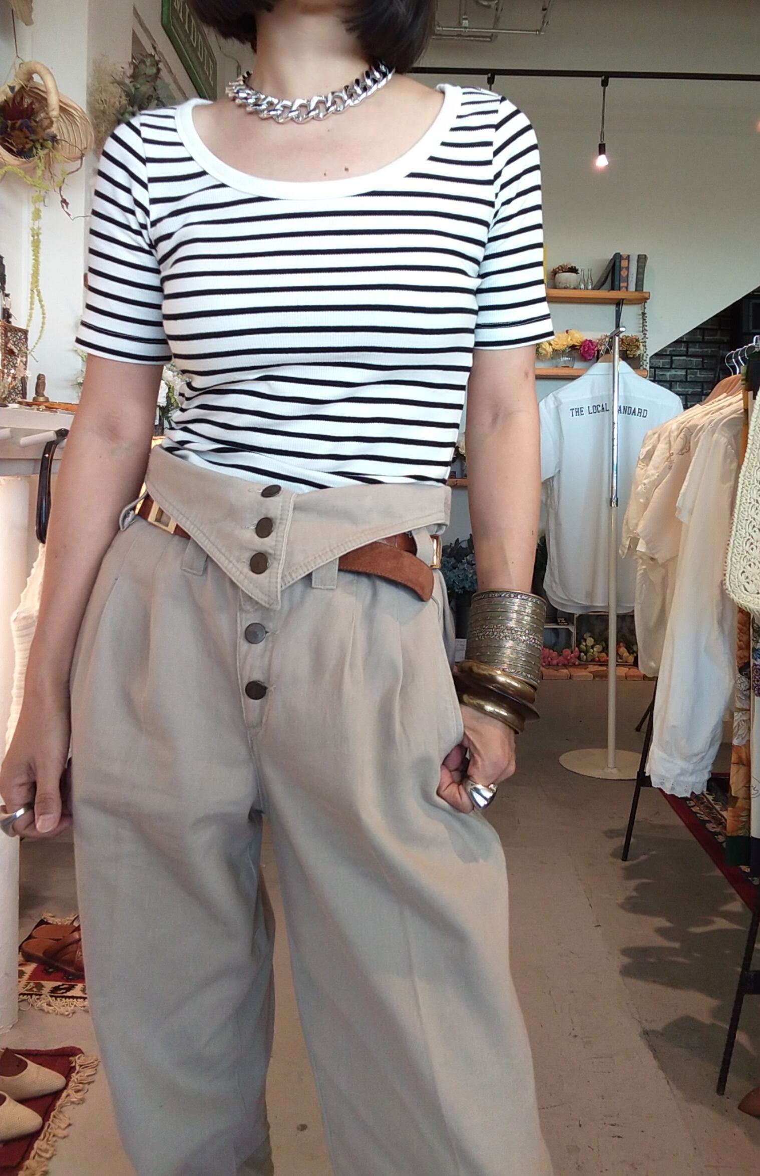 ウエストの折り返しやテーパードシルエットなどどの角度から見てもディテールの素敵なヴィンテージパンツです。
