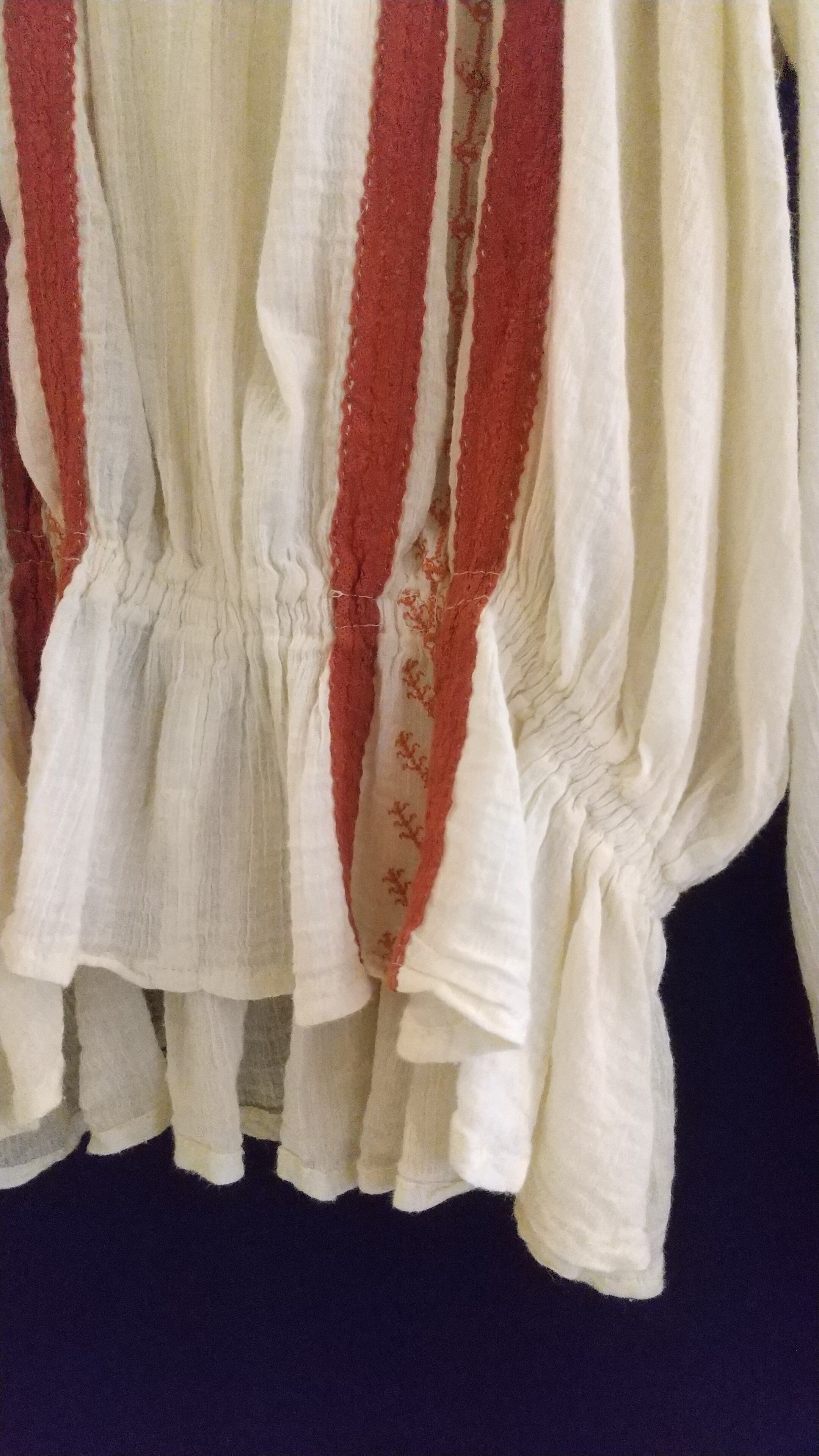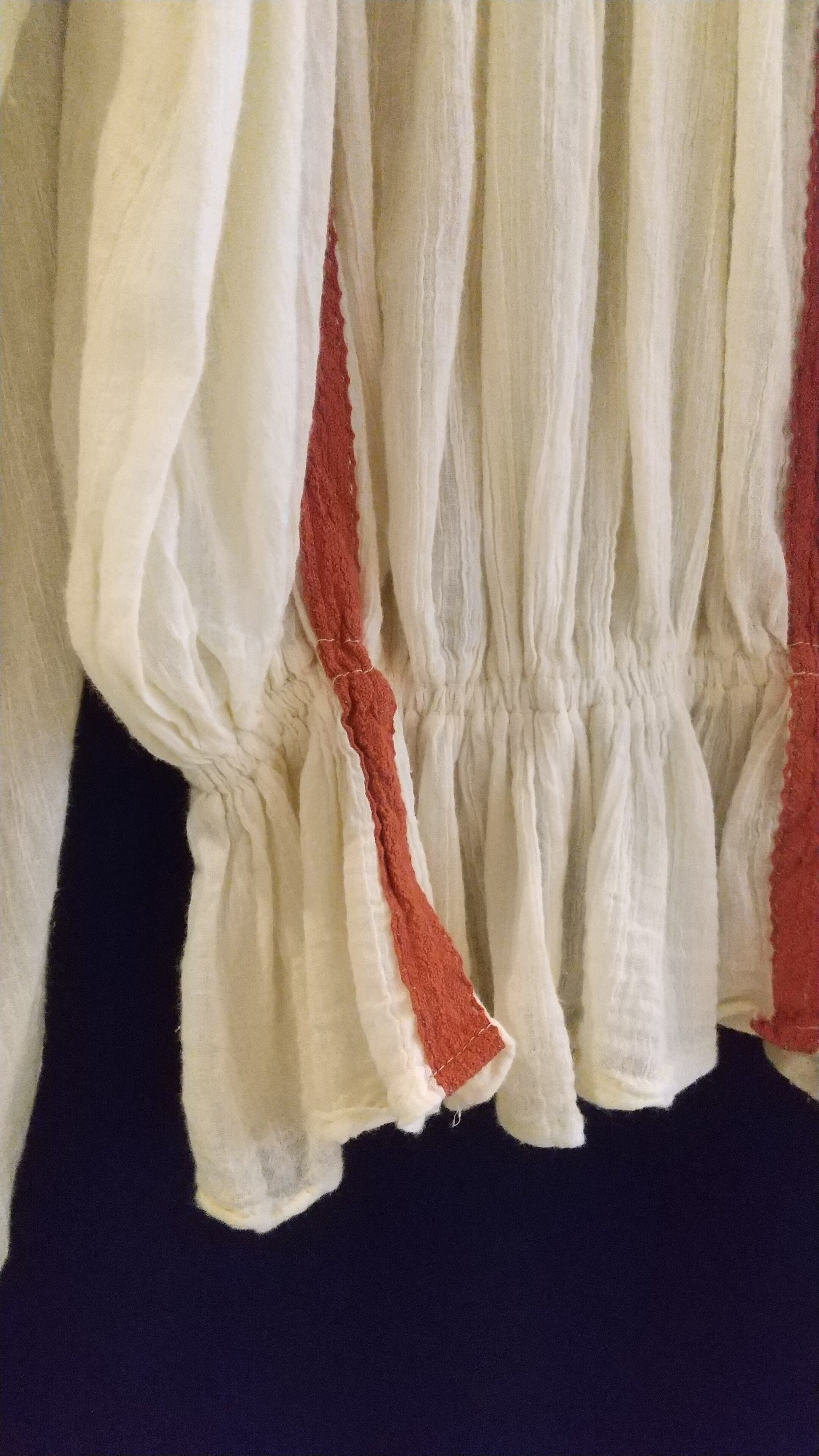 コットンガーゼのふんわり柔らかな肌触りのヴィンテージ刺繍トップス。キナリにブラウンの刺繍がナチュラルで合わせやすいカラーです。ウエスト、袖口はゴム仕様、自然なブラウジングのシルエットが叶います。大きめサイズでルーズに着ても可愛いです。