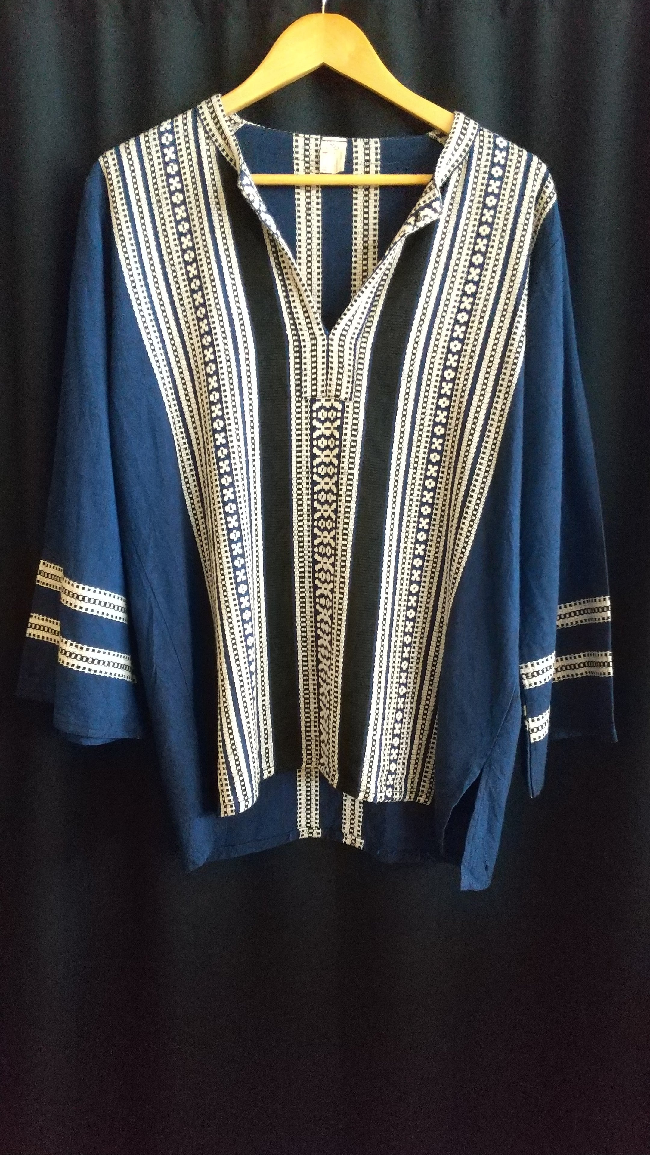 織り柄の美しいギリシャ製のヴィンテージプルオーバートップ。素材はコットン40% 合成繊維40% さらりとしたなめらかな肌触りです。伸縮性はありません。ゆったりとしたサイズ感がリラックスした雰囲気の1枚。