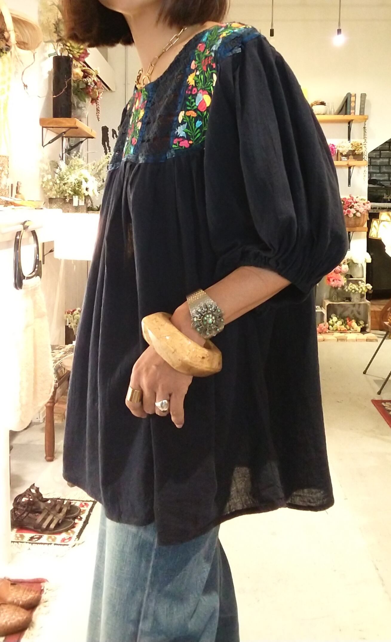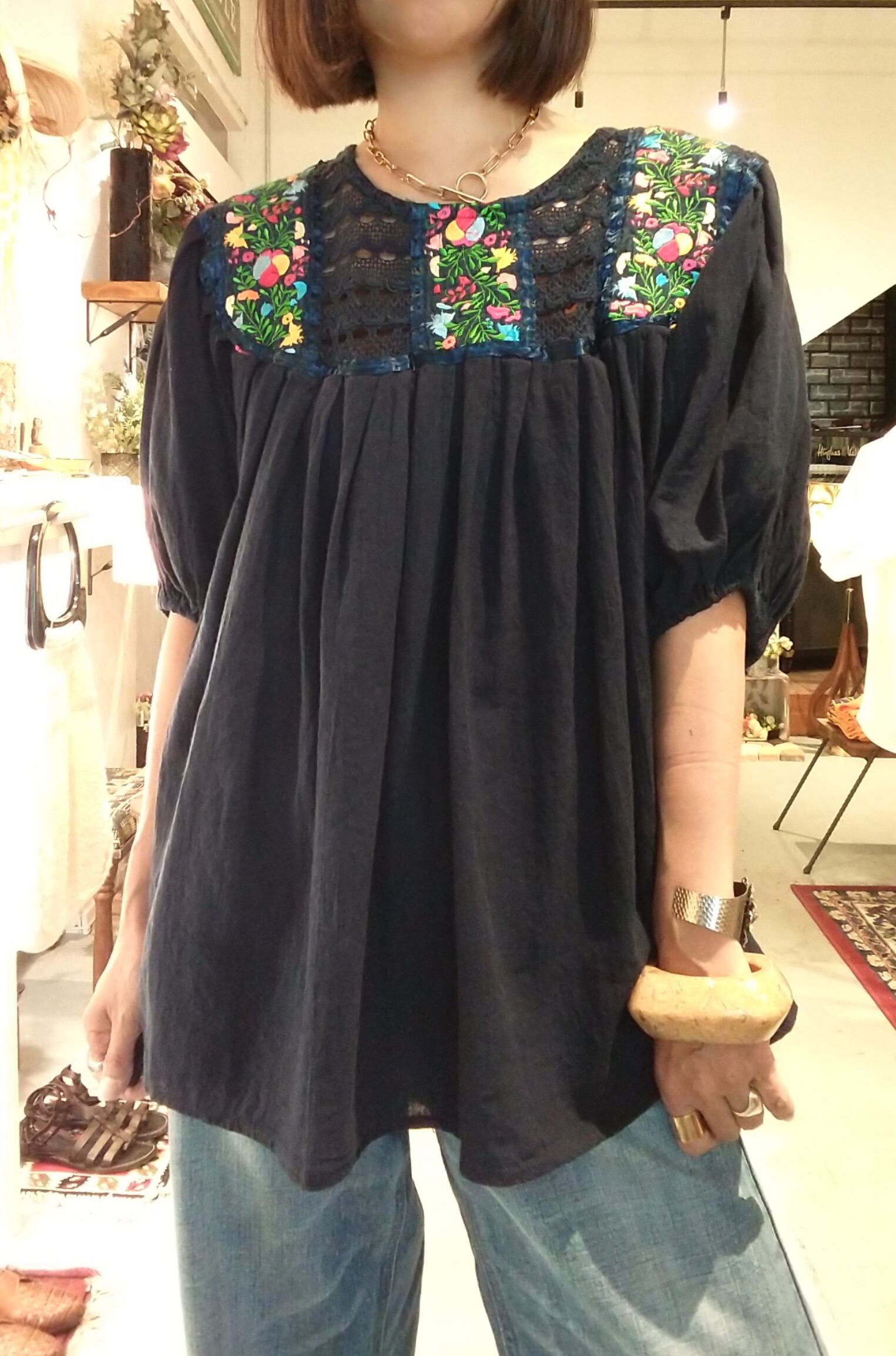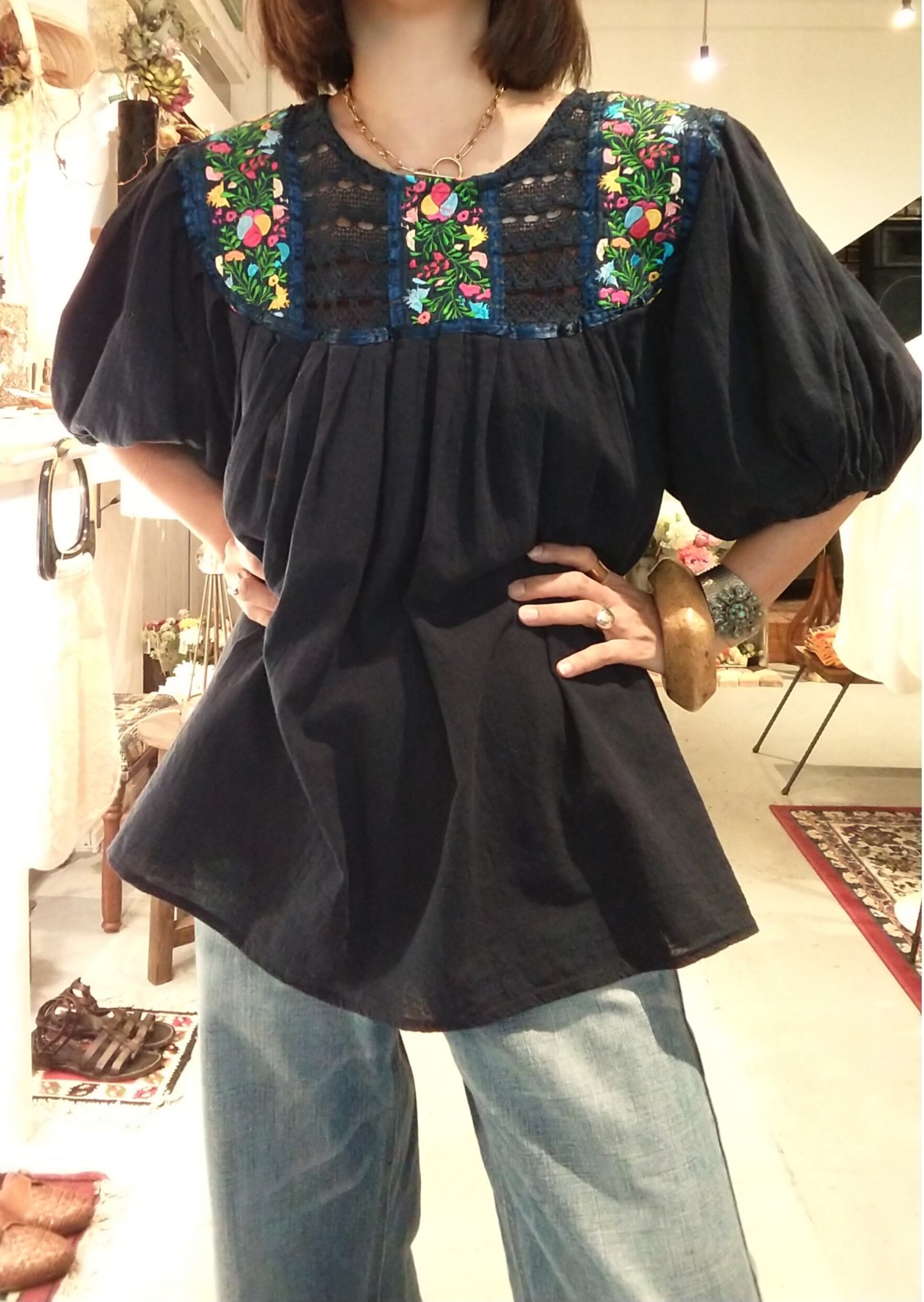 THTP053 メキシコ刺繍ボリュームスリーブトップ