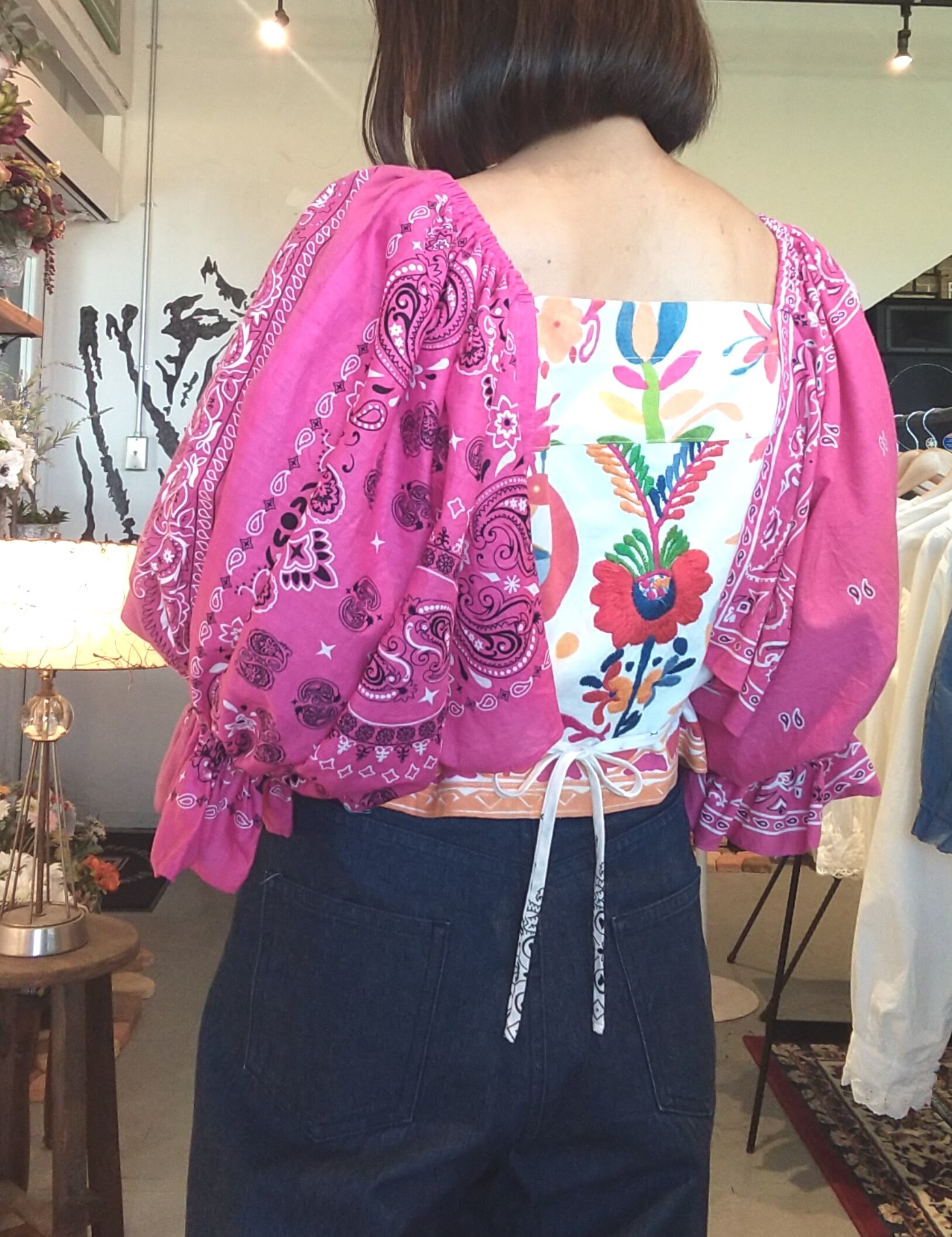 THTP082 ヴィンテージクロス×バンダナリメイクトップ