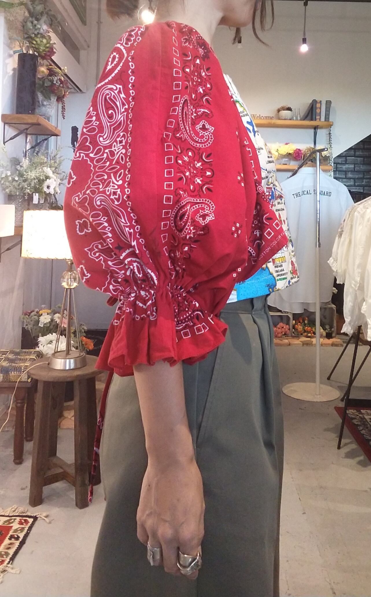 S様ご予約品 THTP084 ヴィンテージクロス×バンダナリメイクトップ RED