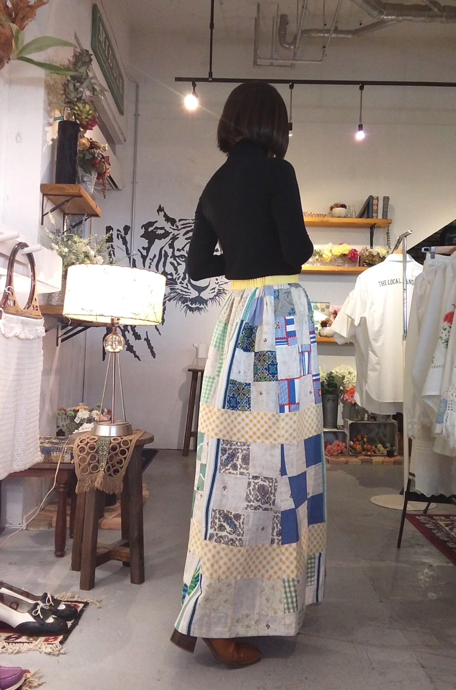 ヴィンテージのパッチワークキルト生地をたっぷり贅沢に使用したマキシギャザースカート。こちらは当時の生地を使用してスカートに仕立てたリプロダクト商品の一点物となります。