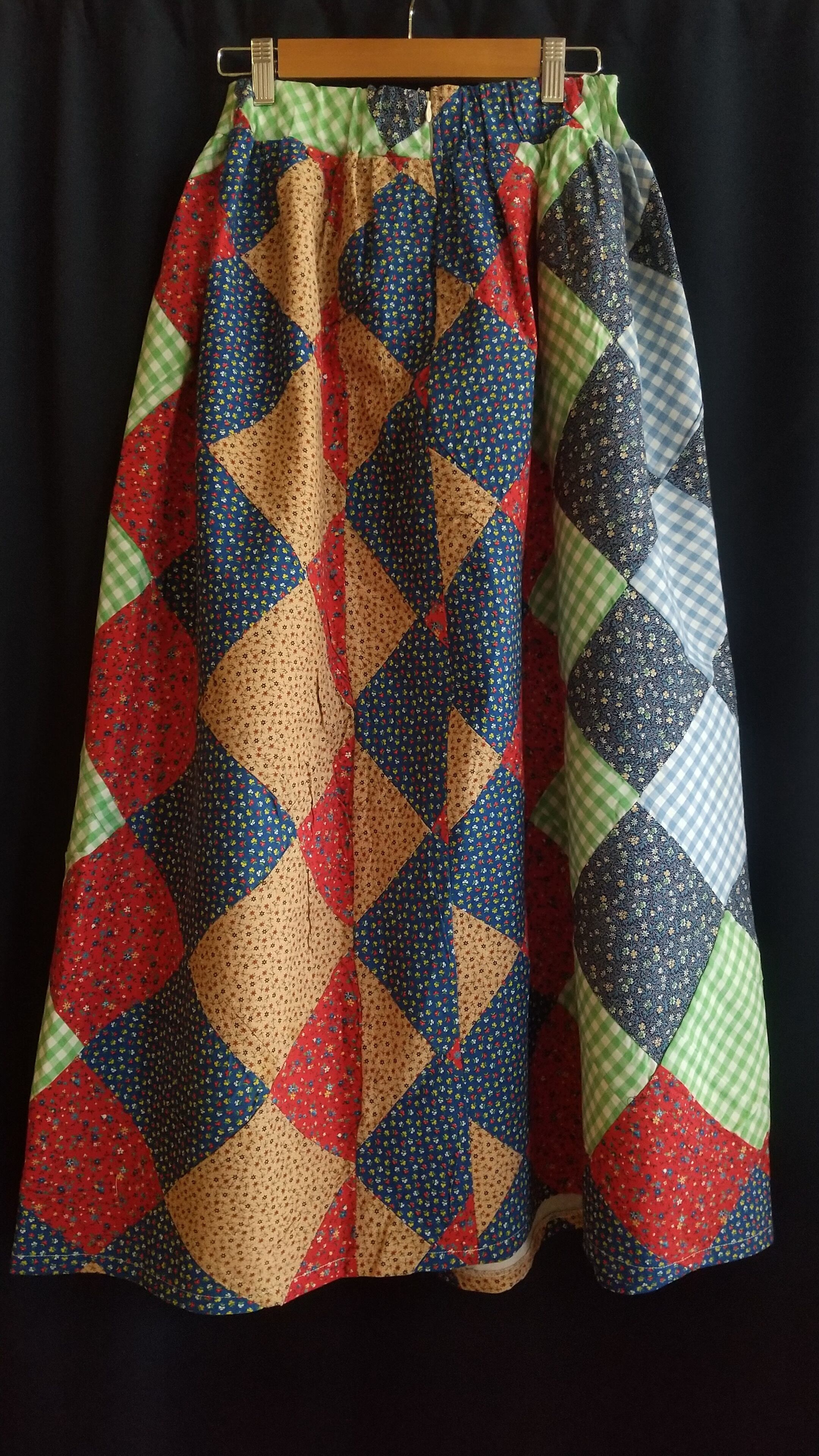ヴィンテージのパッチワークキルト生地をたっぷり贅沢に使用したマキシギャザースカート。こちらは当時の生地を使用してスカートに仕立てたリプロダクト商品の一点物となります。