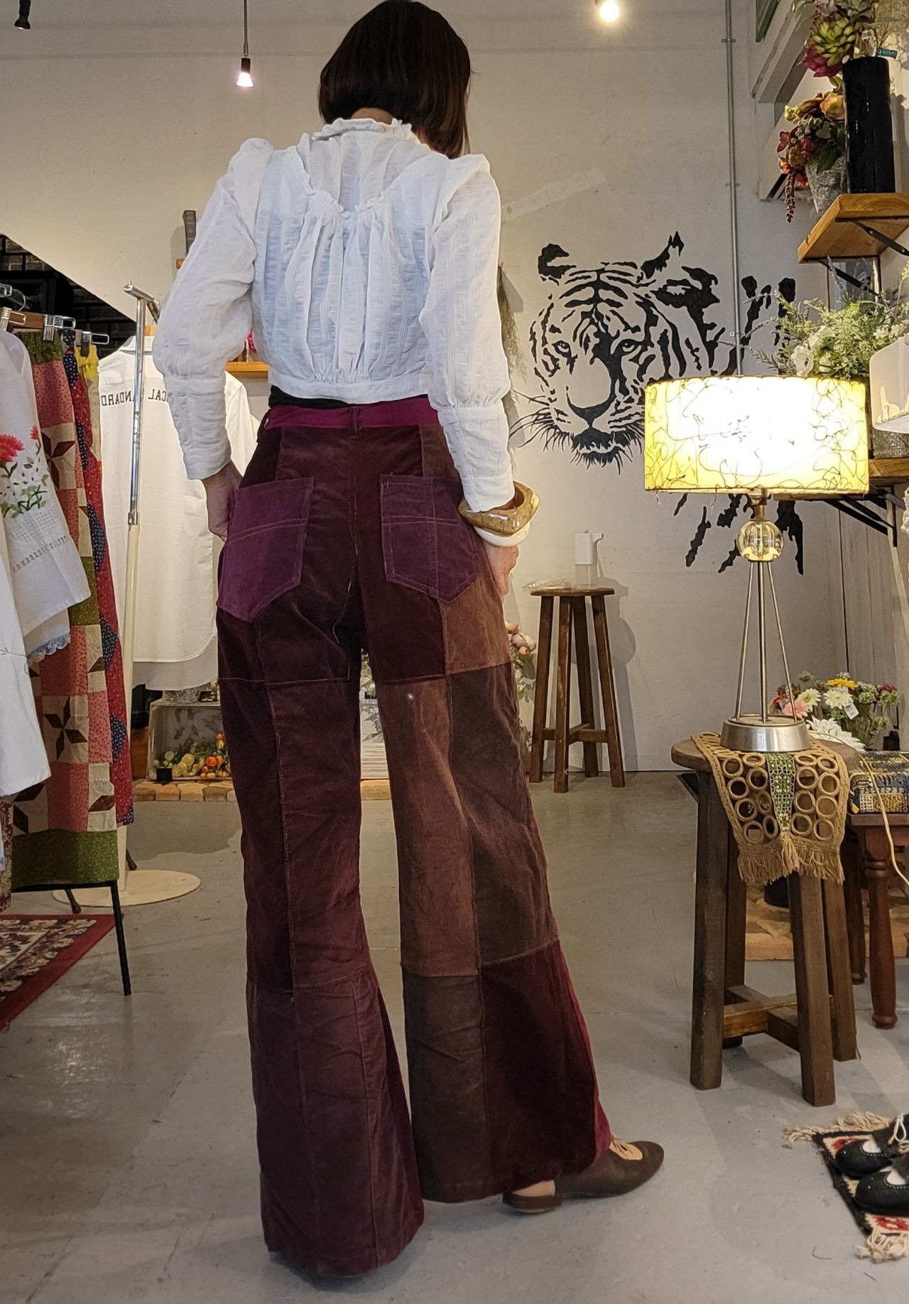 S様ご予約品 THPT023 リメイクコーデュロイパッチワークパンツ/wine