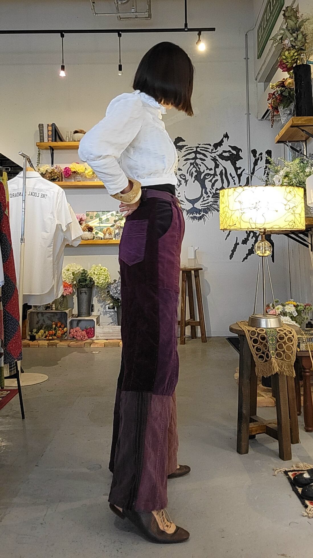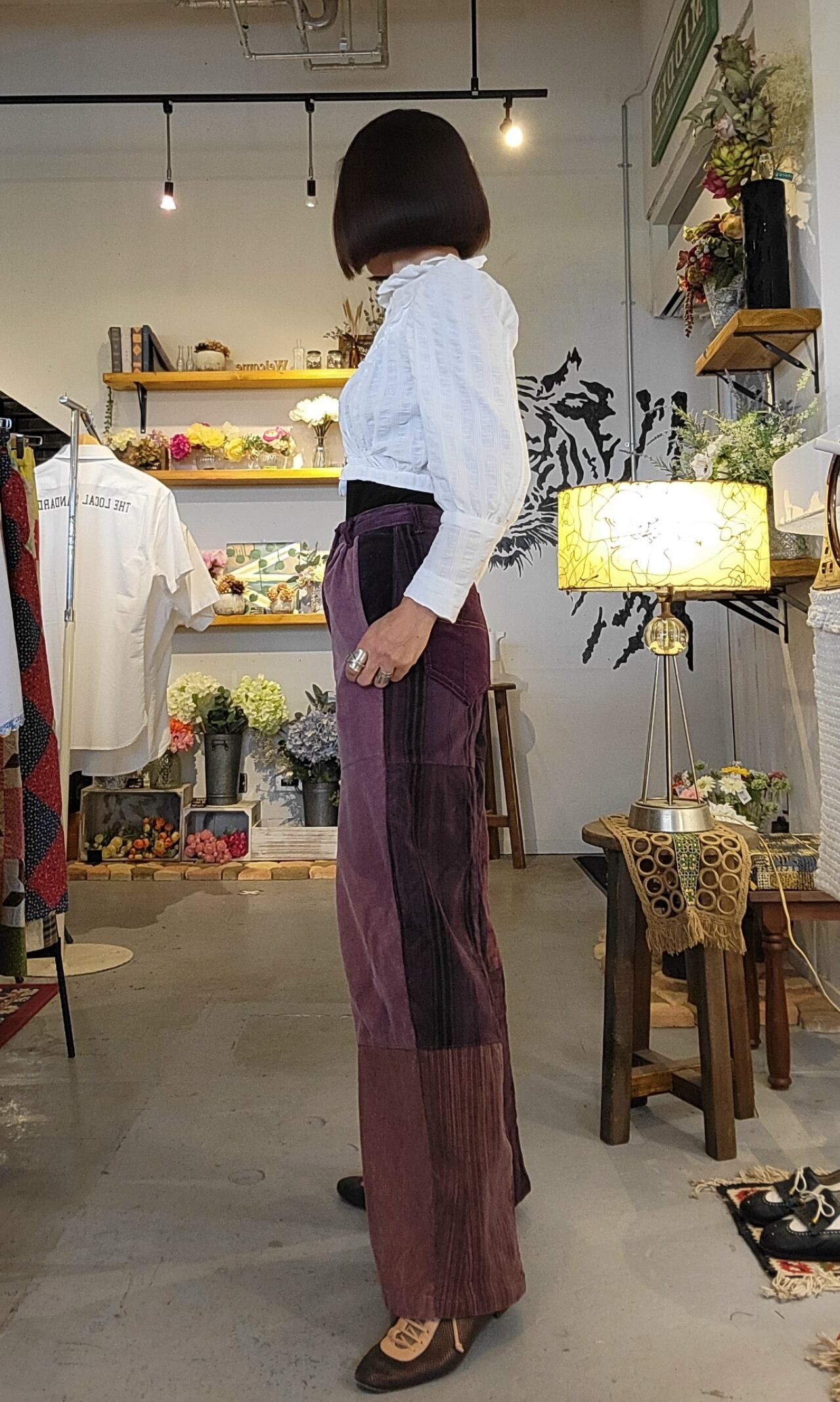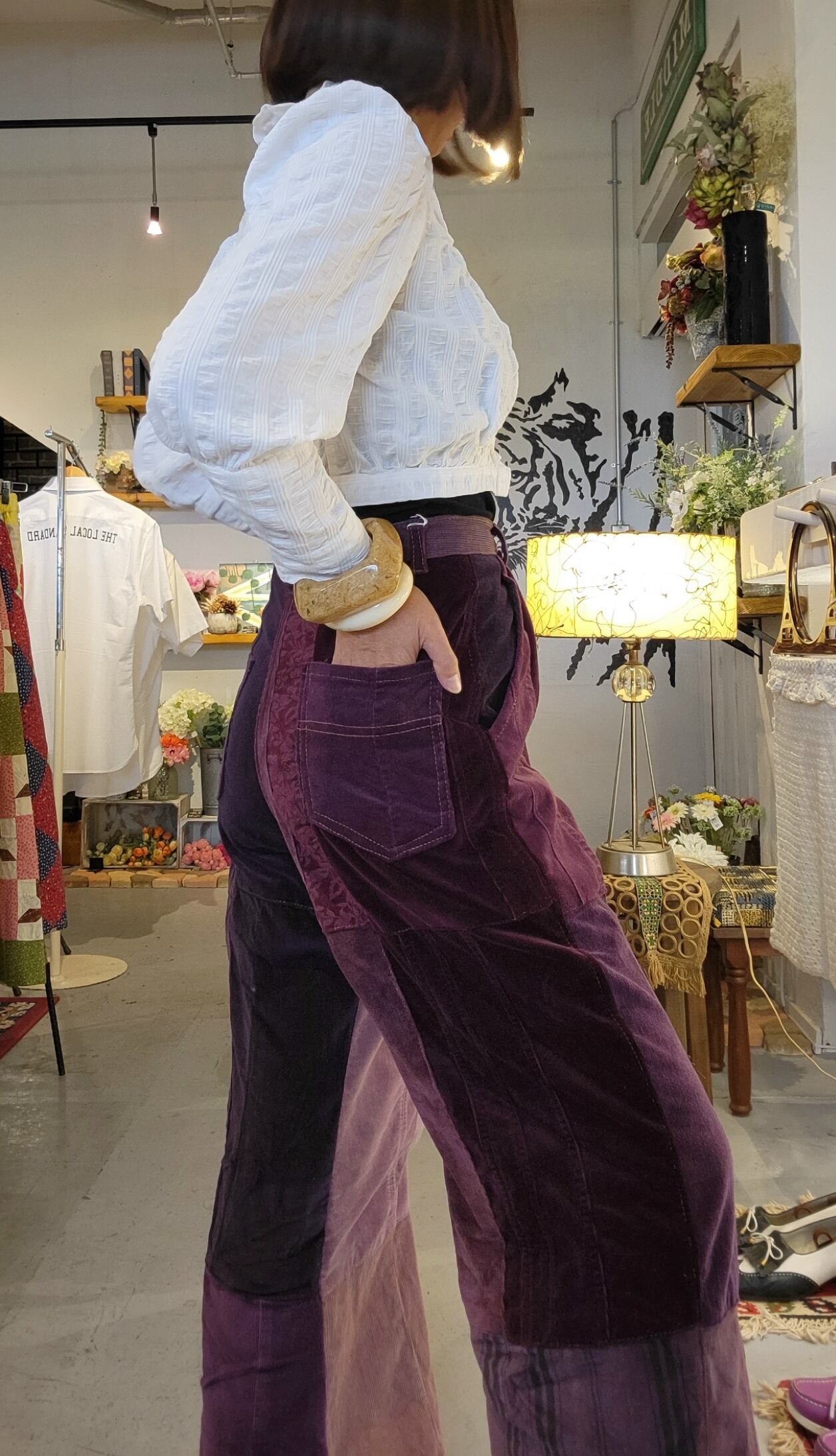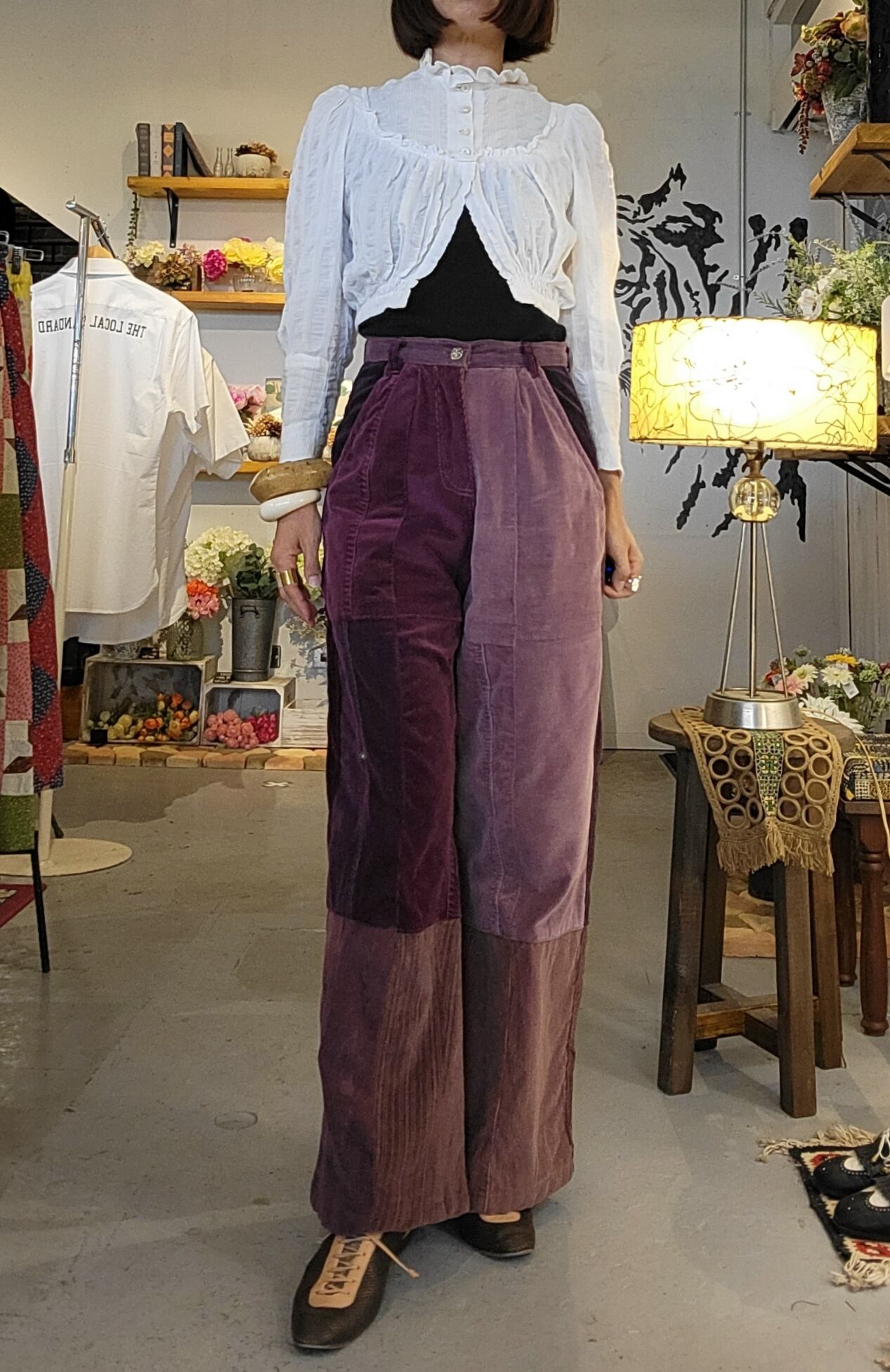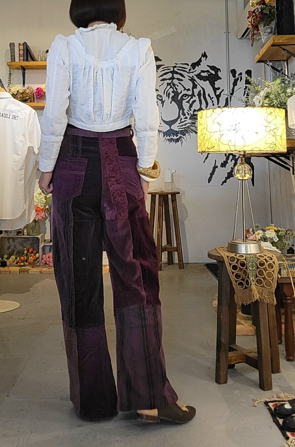 S様ご予約品 THPT027 リメイクコーデュロイパッチワークパンツ/ purple