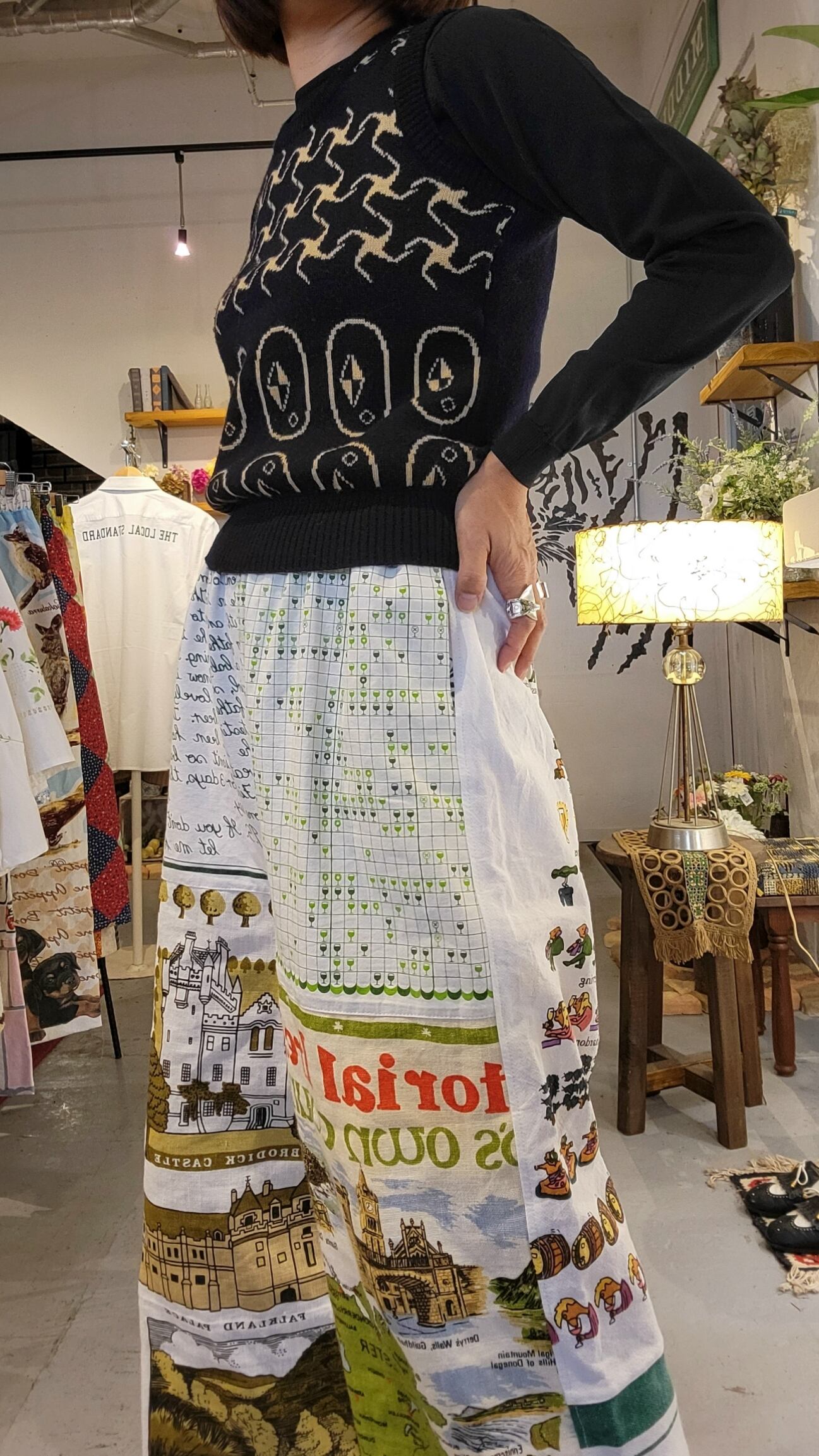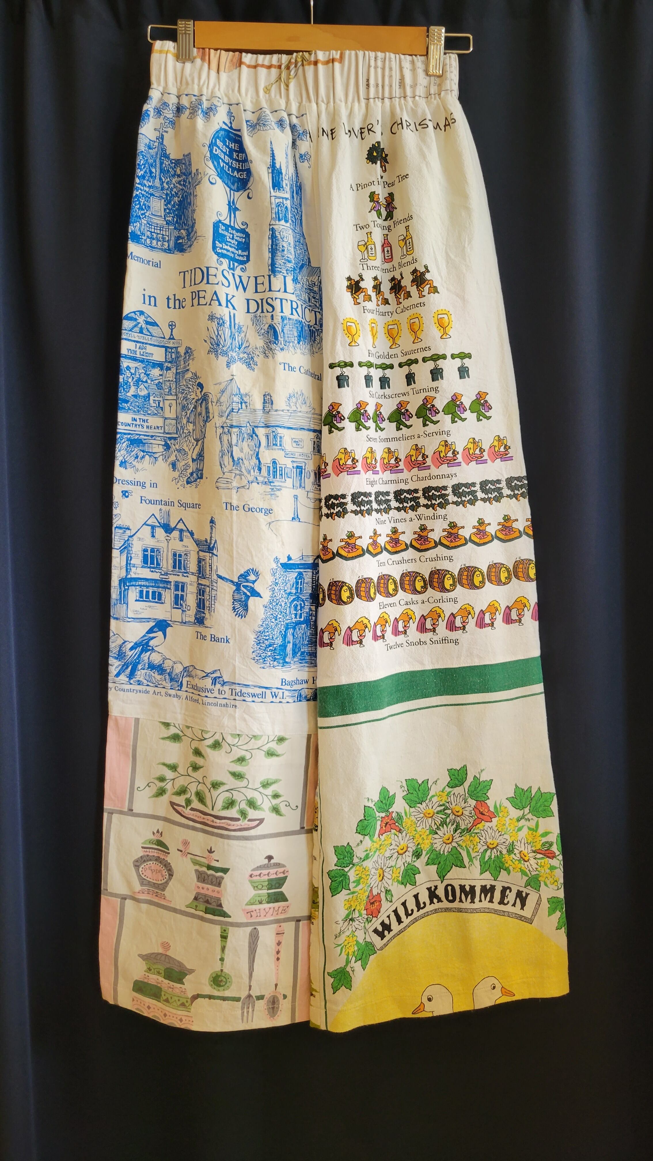 ヴィンテージクロスをリメイクしたイージーパンツ。ウエストゴム、ハイライズ・ワイドシルエット。前後で表情が異なり、全て一点ものになります。ヴィンテージクロスの洗いざらしの風合いをお楽しみいただけます。