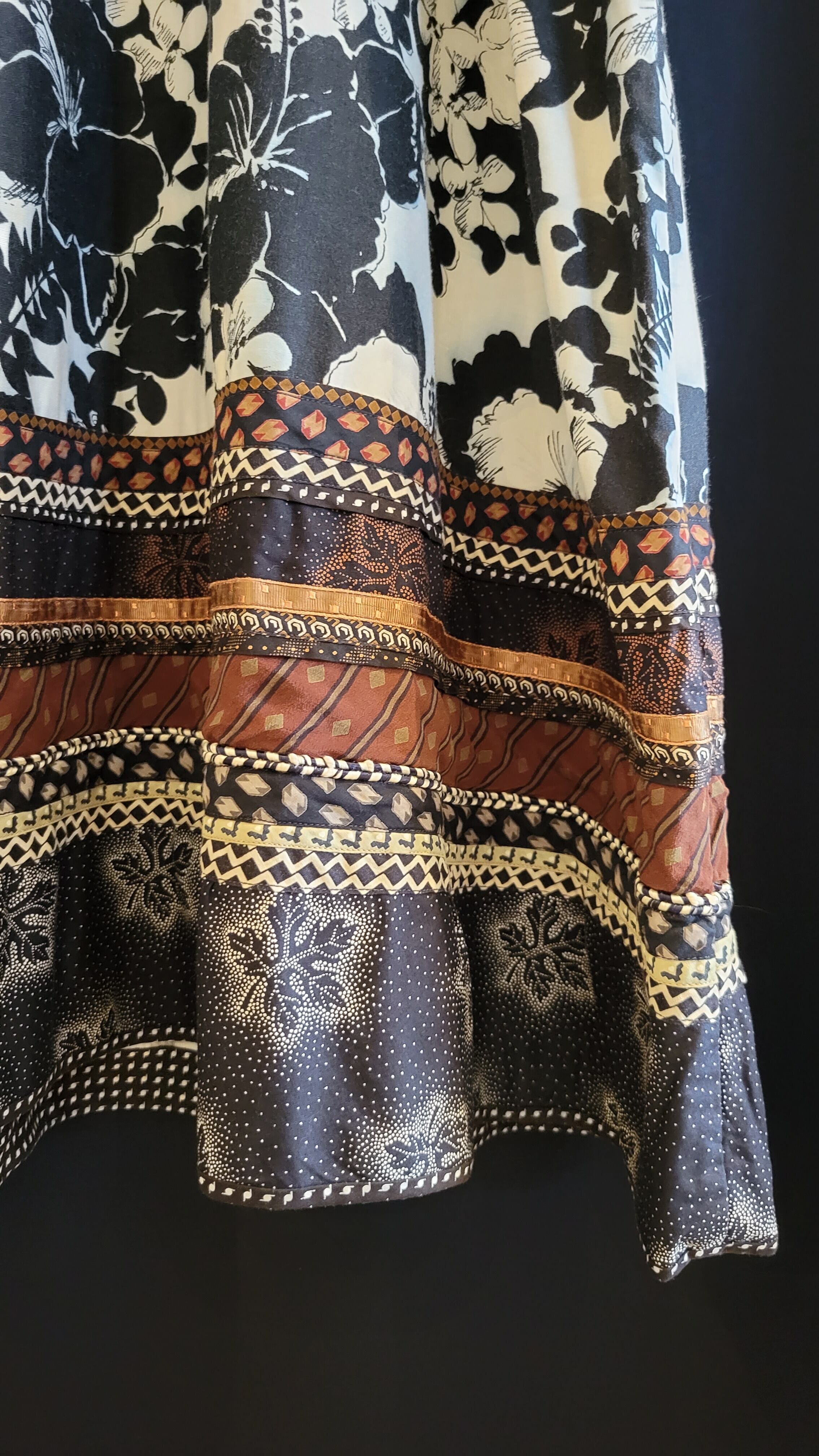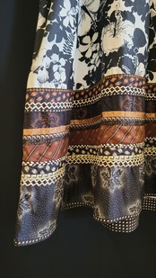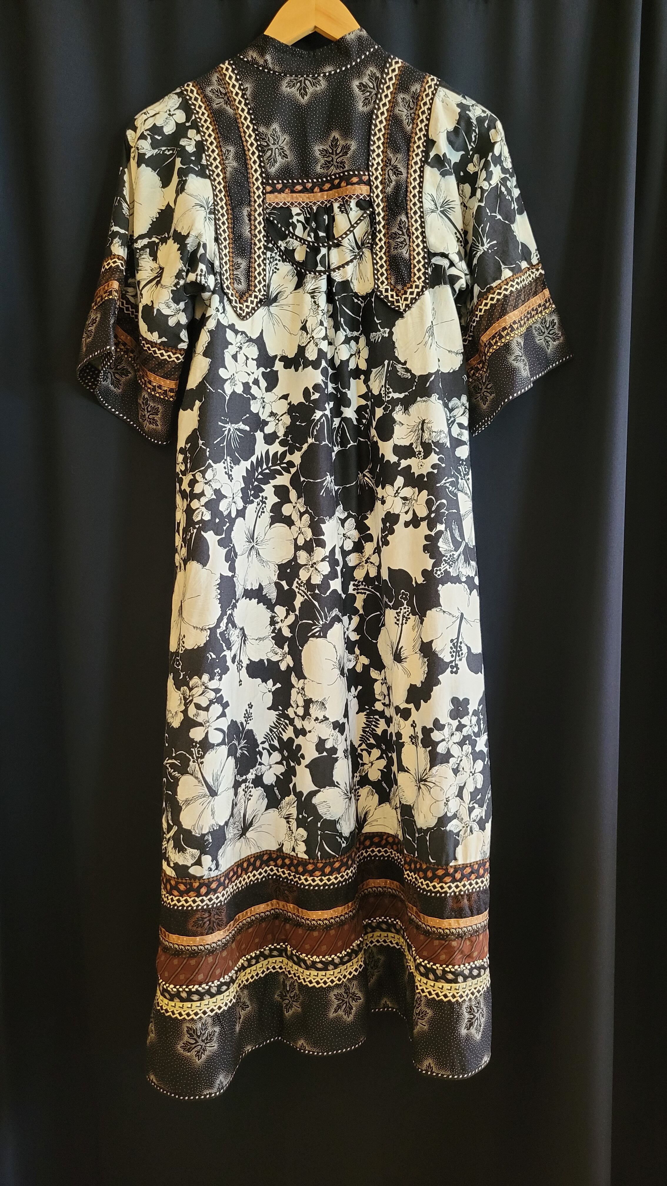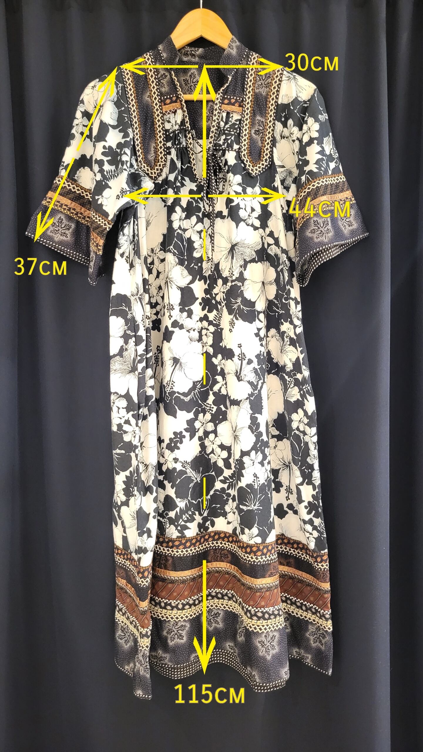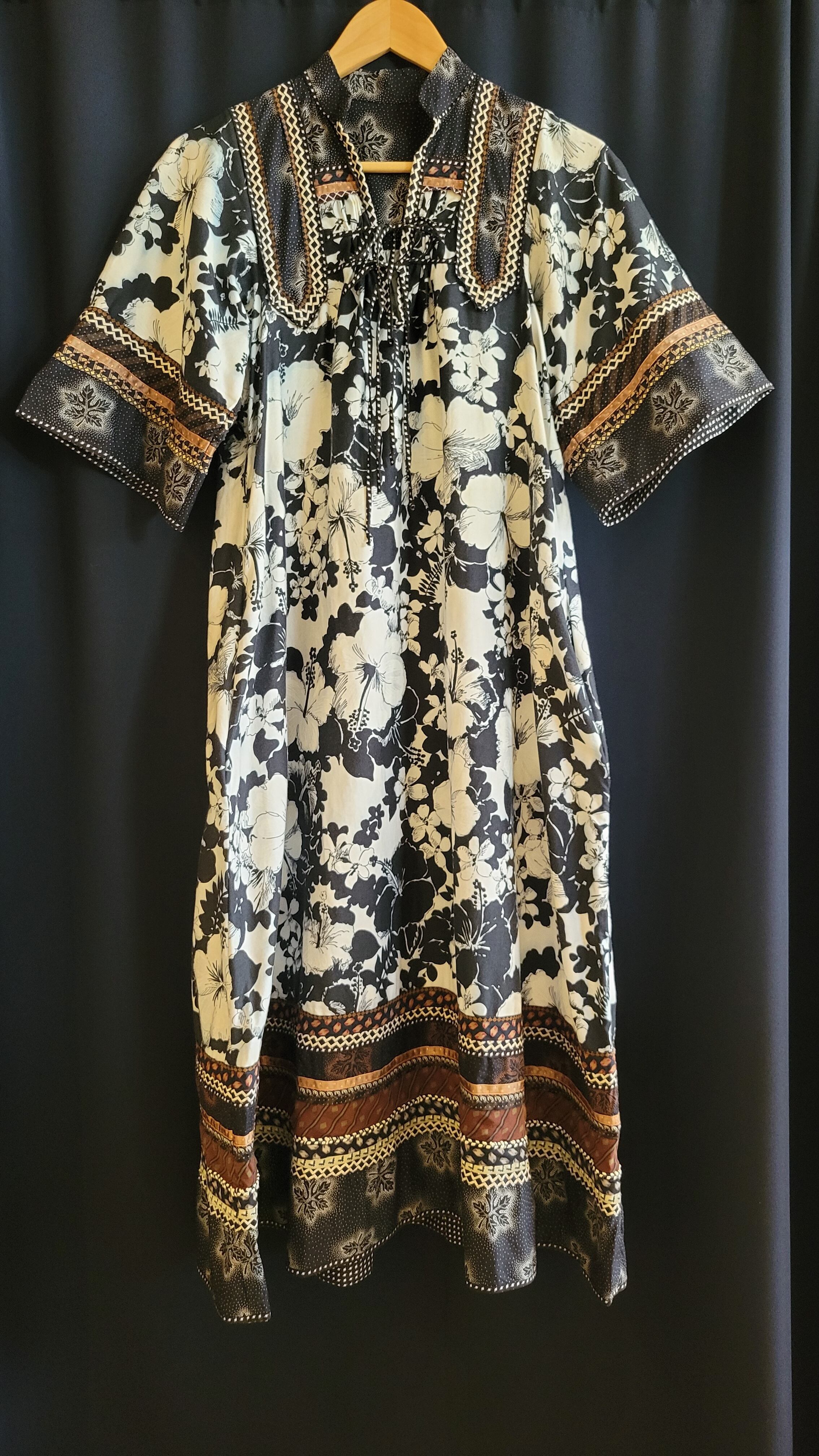 ディテールの素敵なヴィンテージペザントドレス。素材表記はありませんがコットンのようです。落ち着いたカラーはスタイリングしやすくパンツやマキシスカートに重ねても、またロングブーツを合わせても素敵です。*胸元のプリーツ部分に約4ミリほどの薄い茶色のシミがあります。画像でご確認ください。
