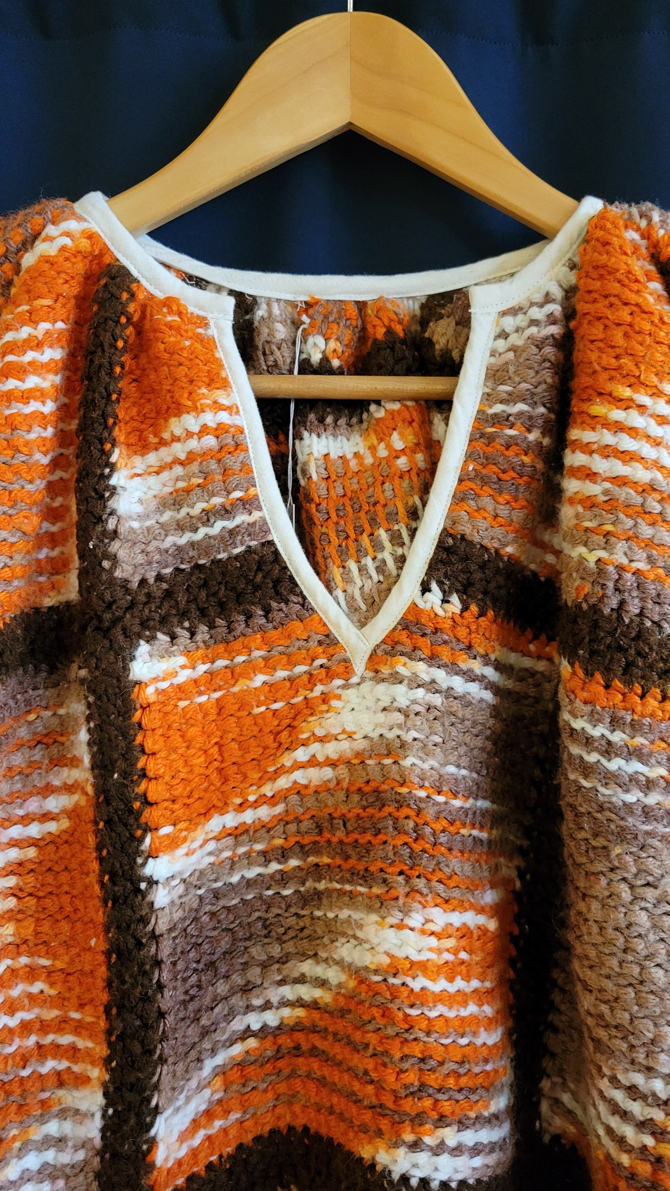 ヴィンテージのグラニーニットのブランケットをリメイクしたプルオーバートップです。肉厚で暖かいハンドニットはヴィンテージならでは。袖には2か所にゴムが通っています。生地自体は当時もののため、毛玉等の使用感があります(できるかぎりこちらで取り除くメンテナンスをしております)。着用に支障のある程度ではありませんが、ヴィンテージ品にご理解のある方へおすすめいたします。