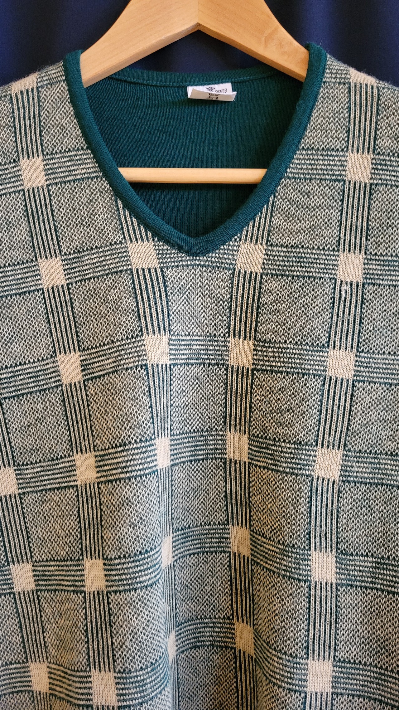Make in Italy のニットトップ。素材表記はありませんウールのようです。ハイゲージで編まれたコンパクトサイズでボトムを選ばず、着まわしのきく色柄です。*左胸あたりに7mm程度の修繕跡があります。画像でご確認ください。