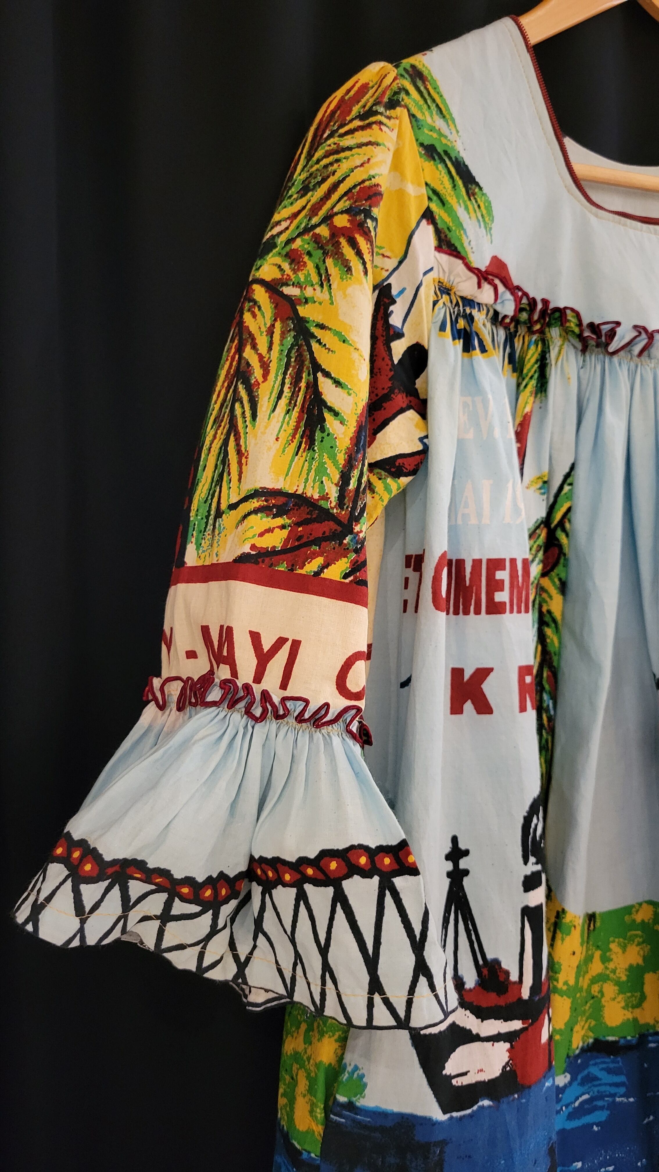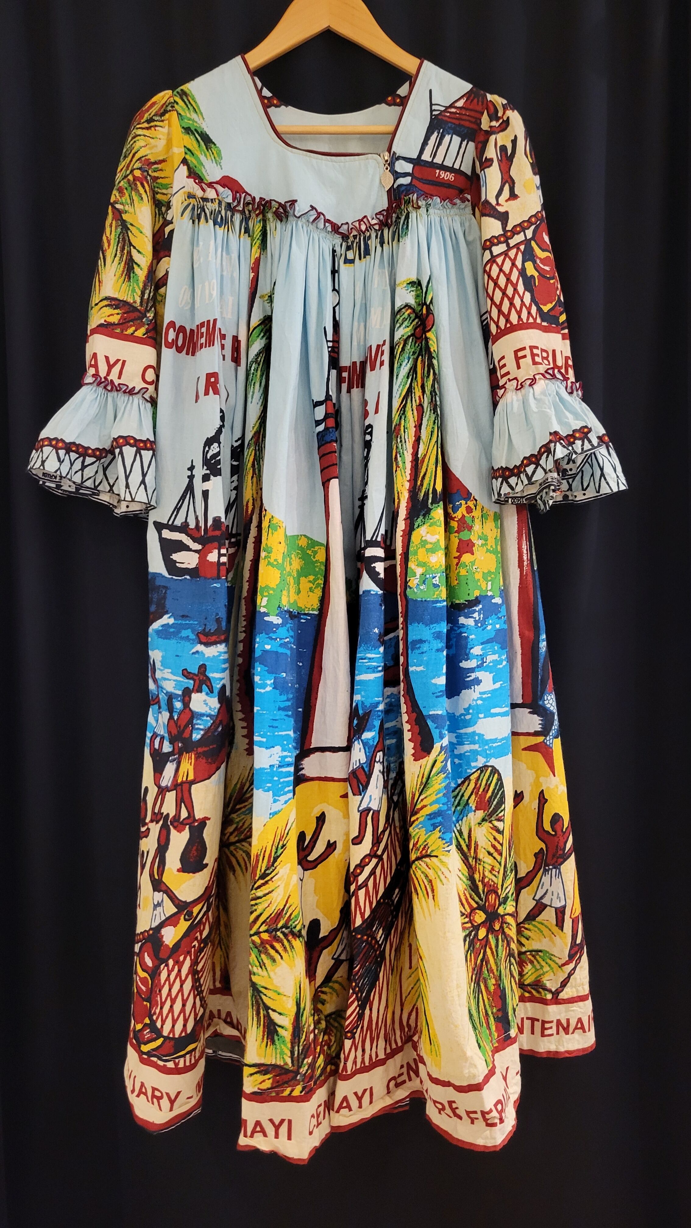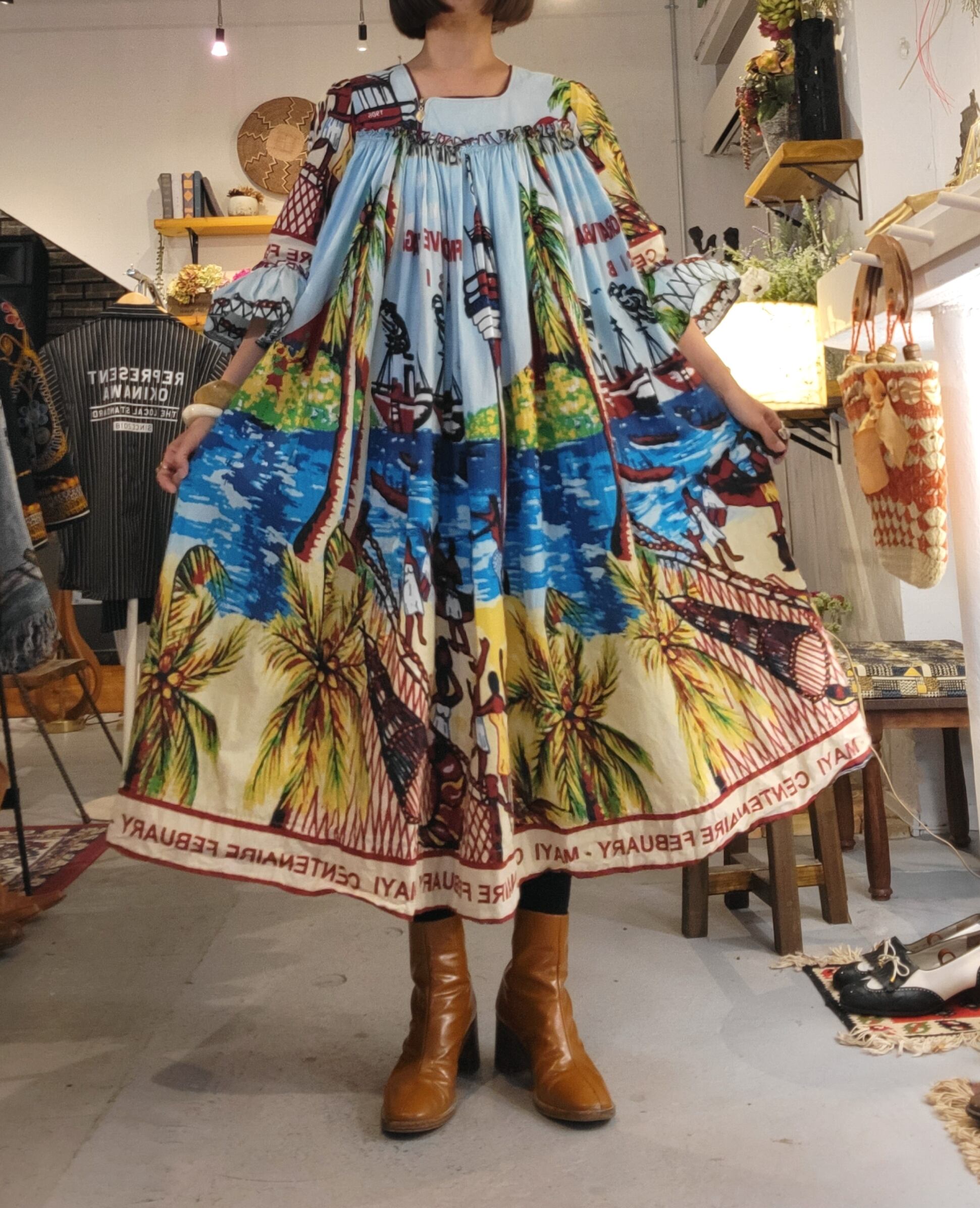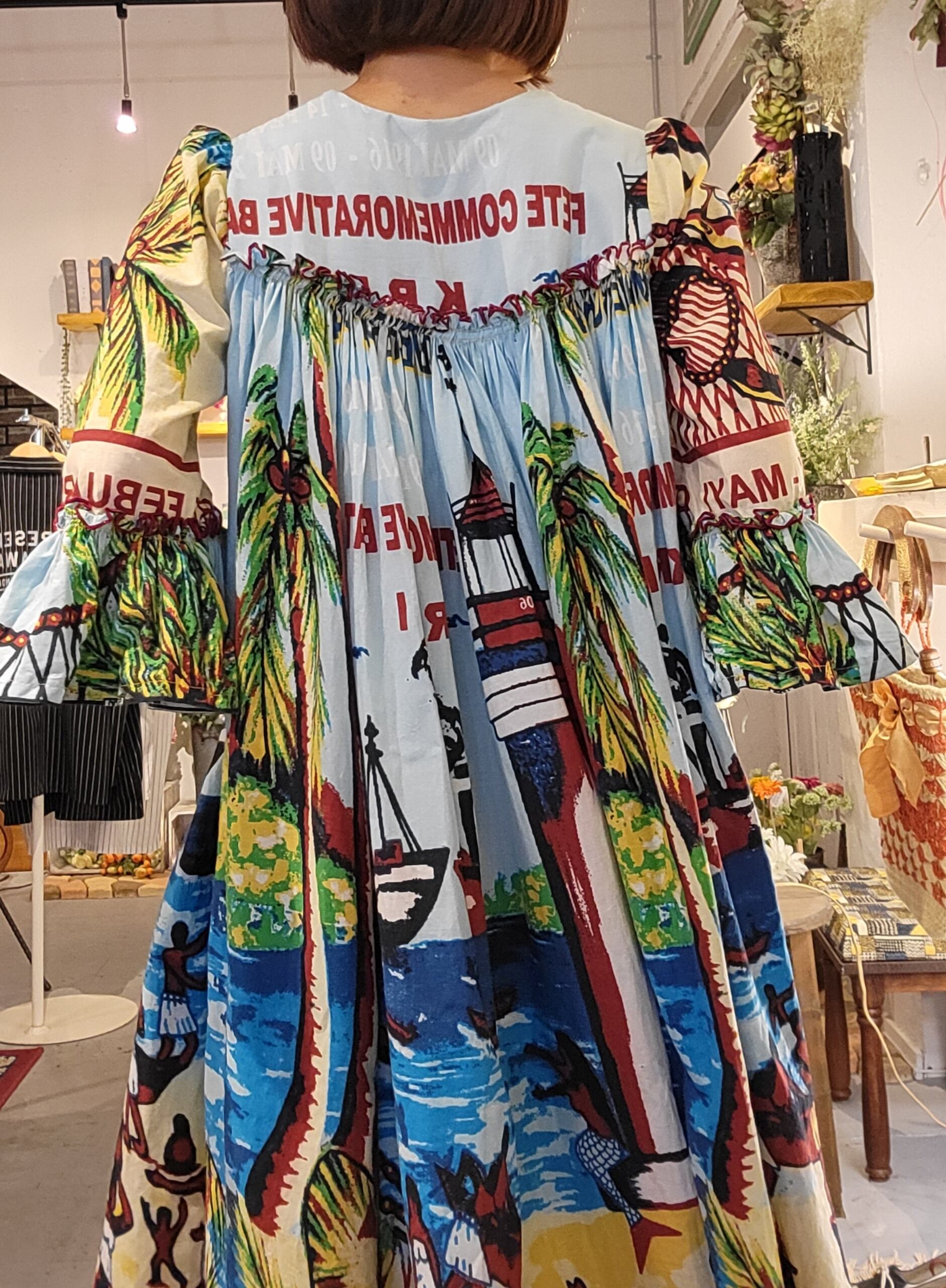 ヴィンテージのアフリカンバティックワンピース。たっぷりのボリュームと個性的なプリントが魅力です。