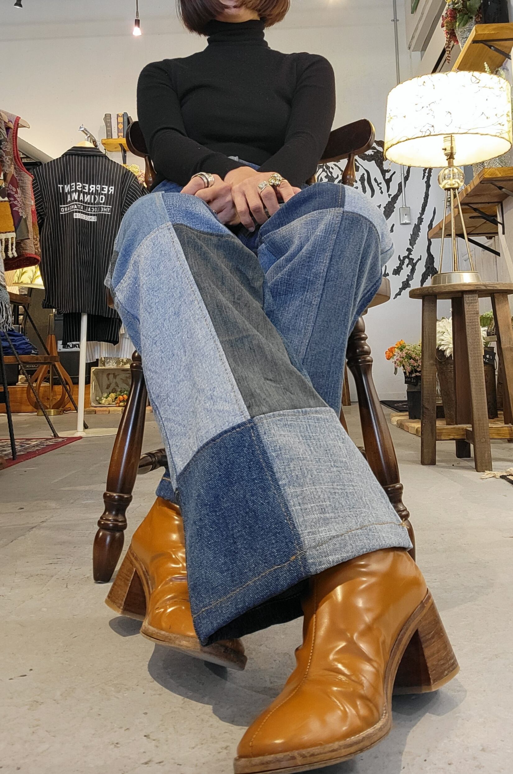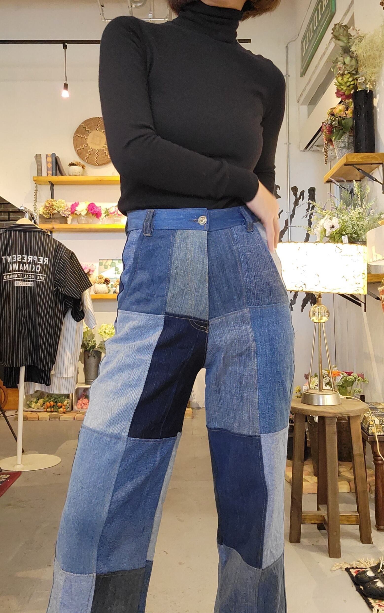 THPT069 デニムパッチワークリメイクパンツ w27-a