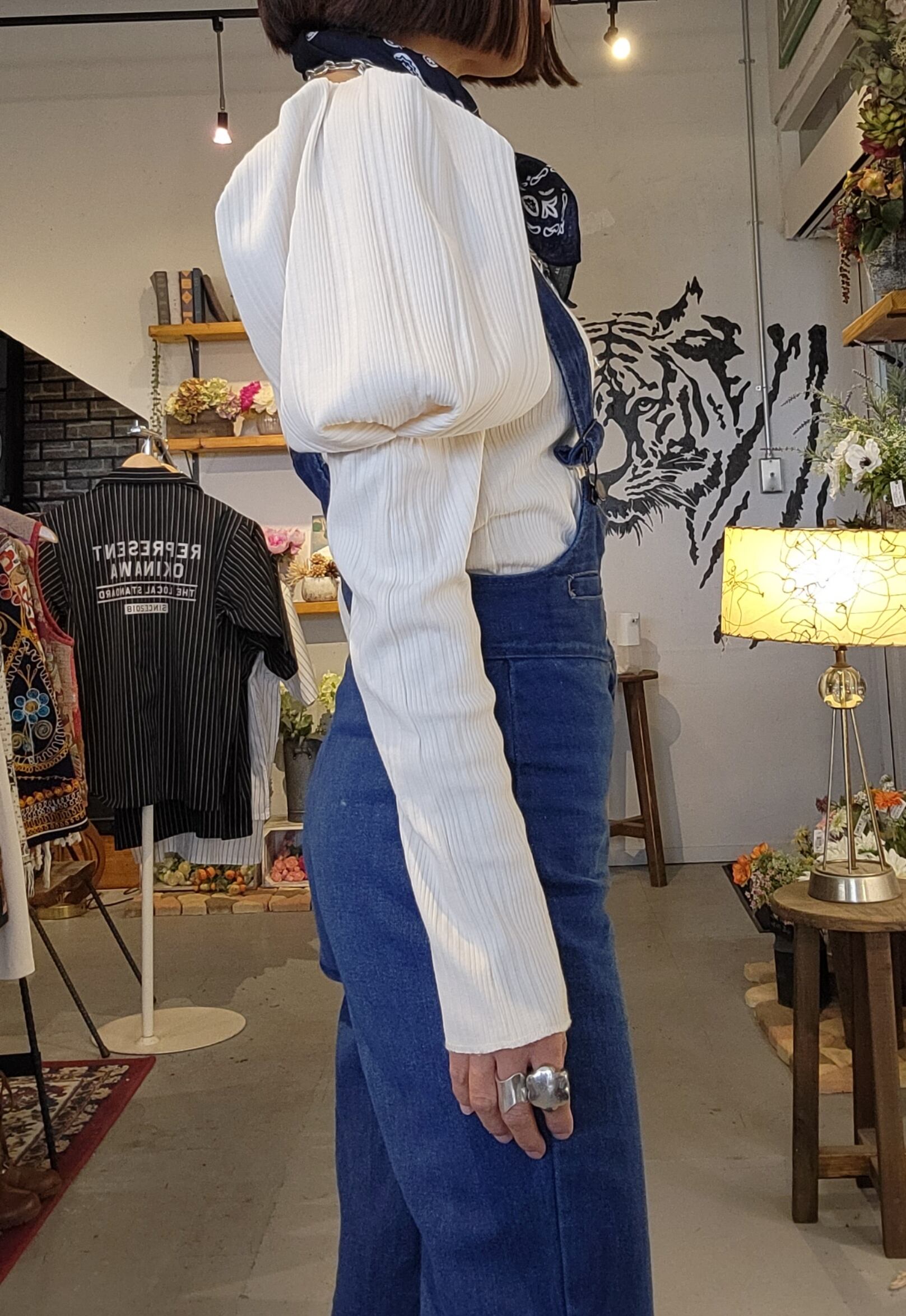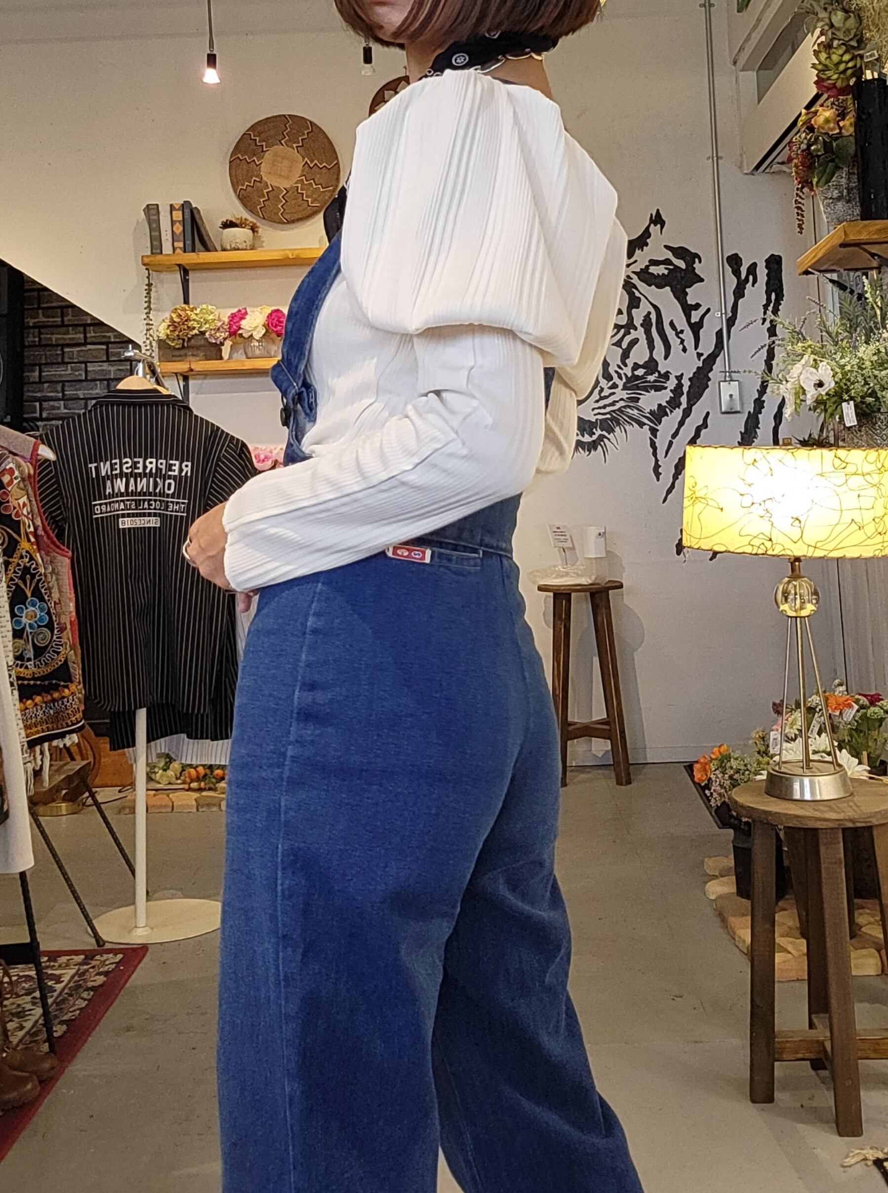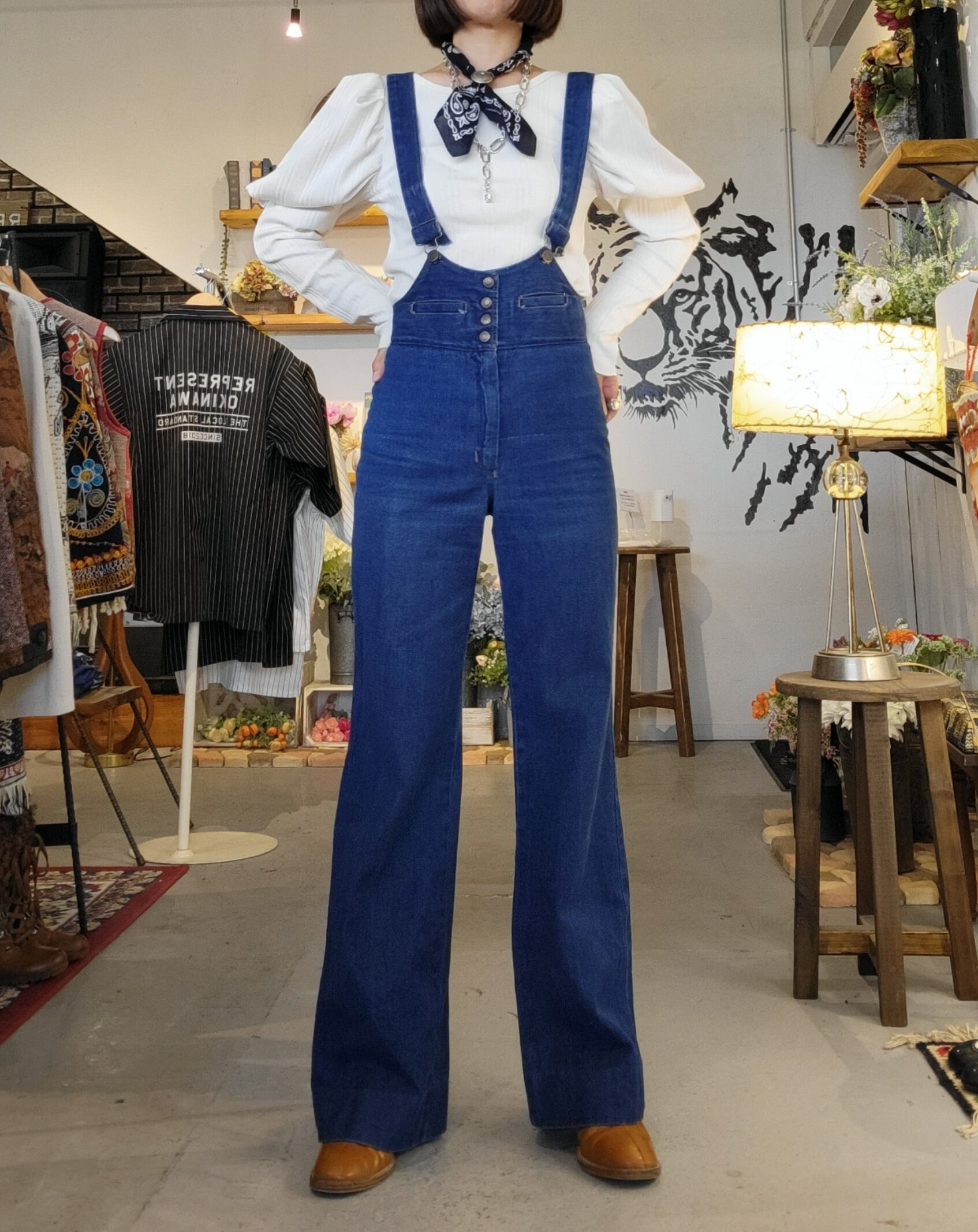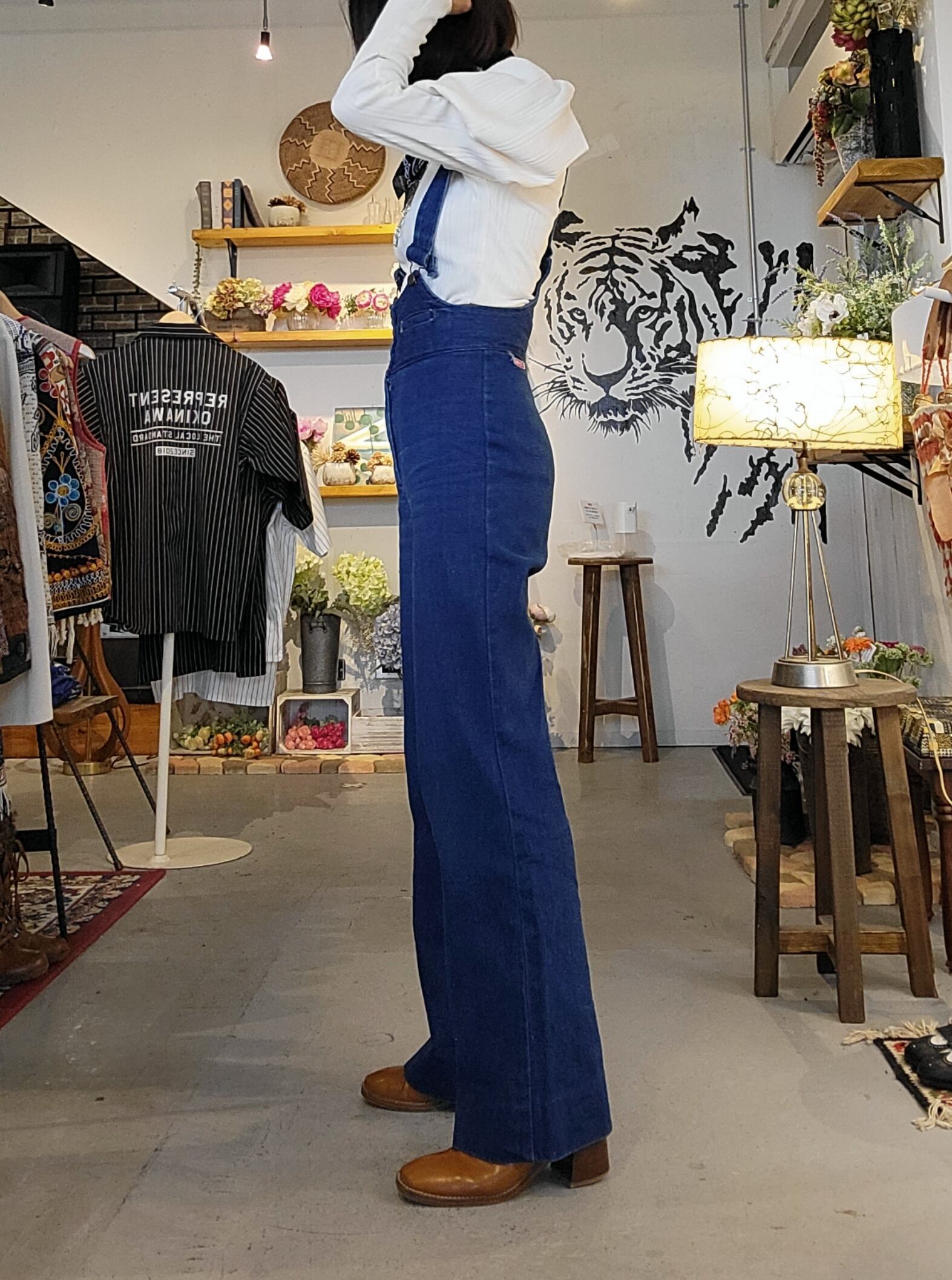 Made in Canada のヴィンテージデニムサロペット。ハイライズ&ほどよい太さのストレートシルエット。すっきり着られる大人のサロペットです。