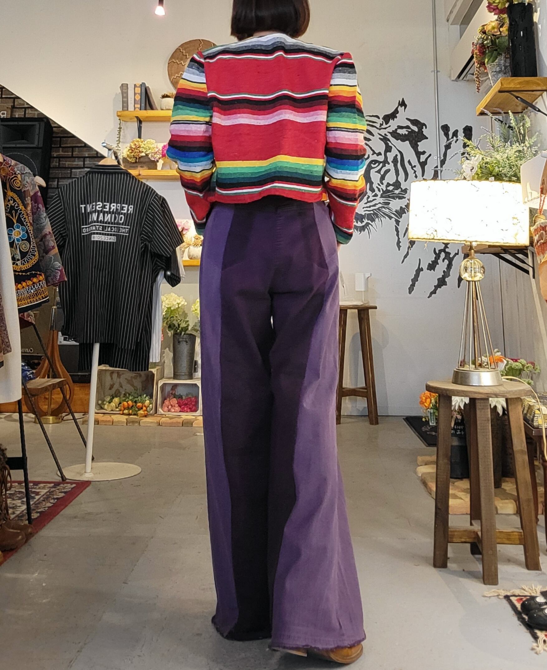 THPT080 カラーブロックリメイクパンツ Purple 02