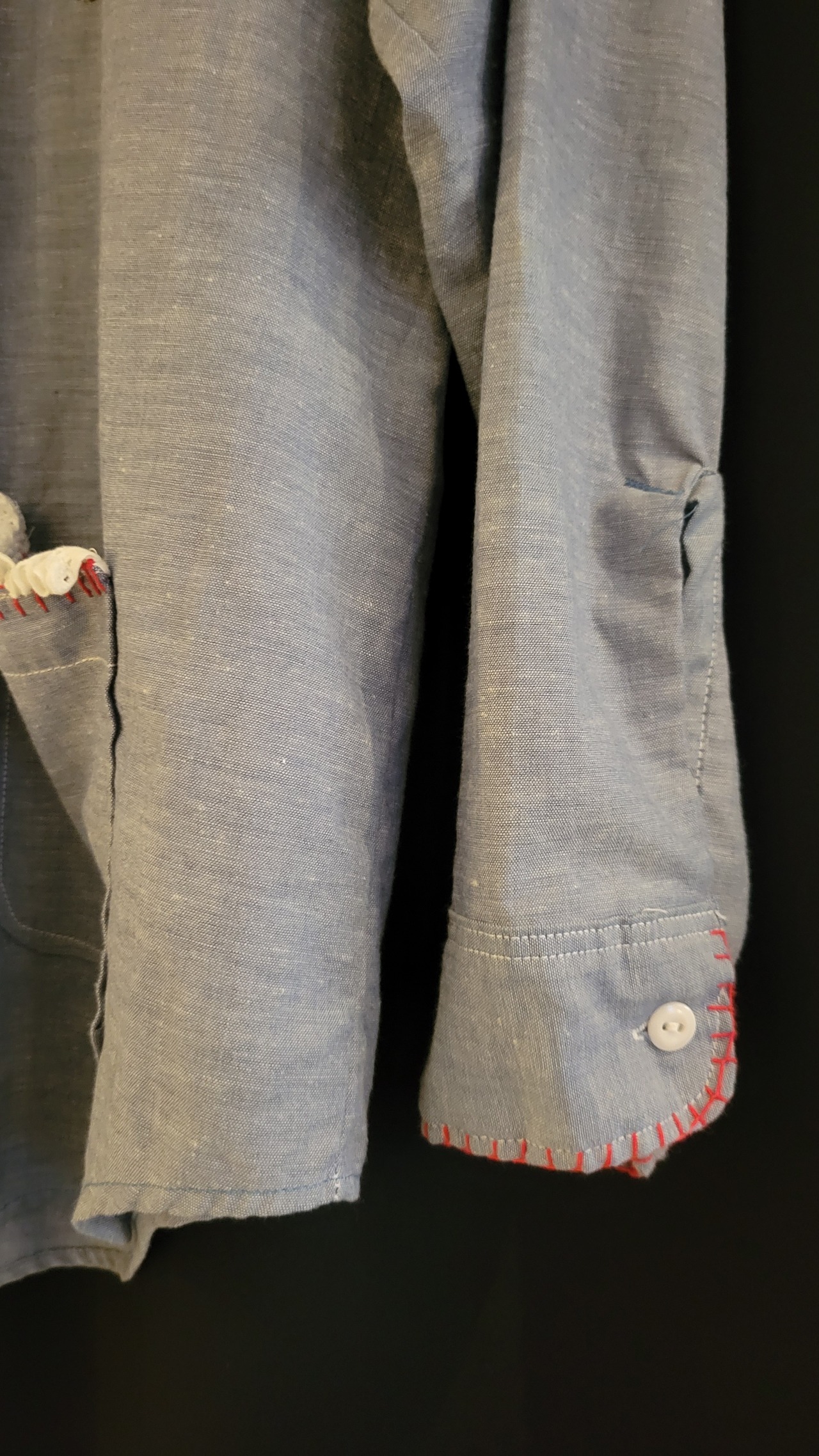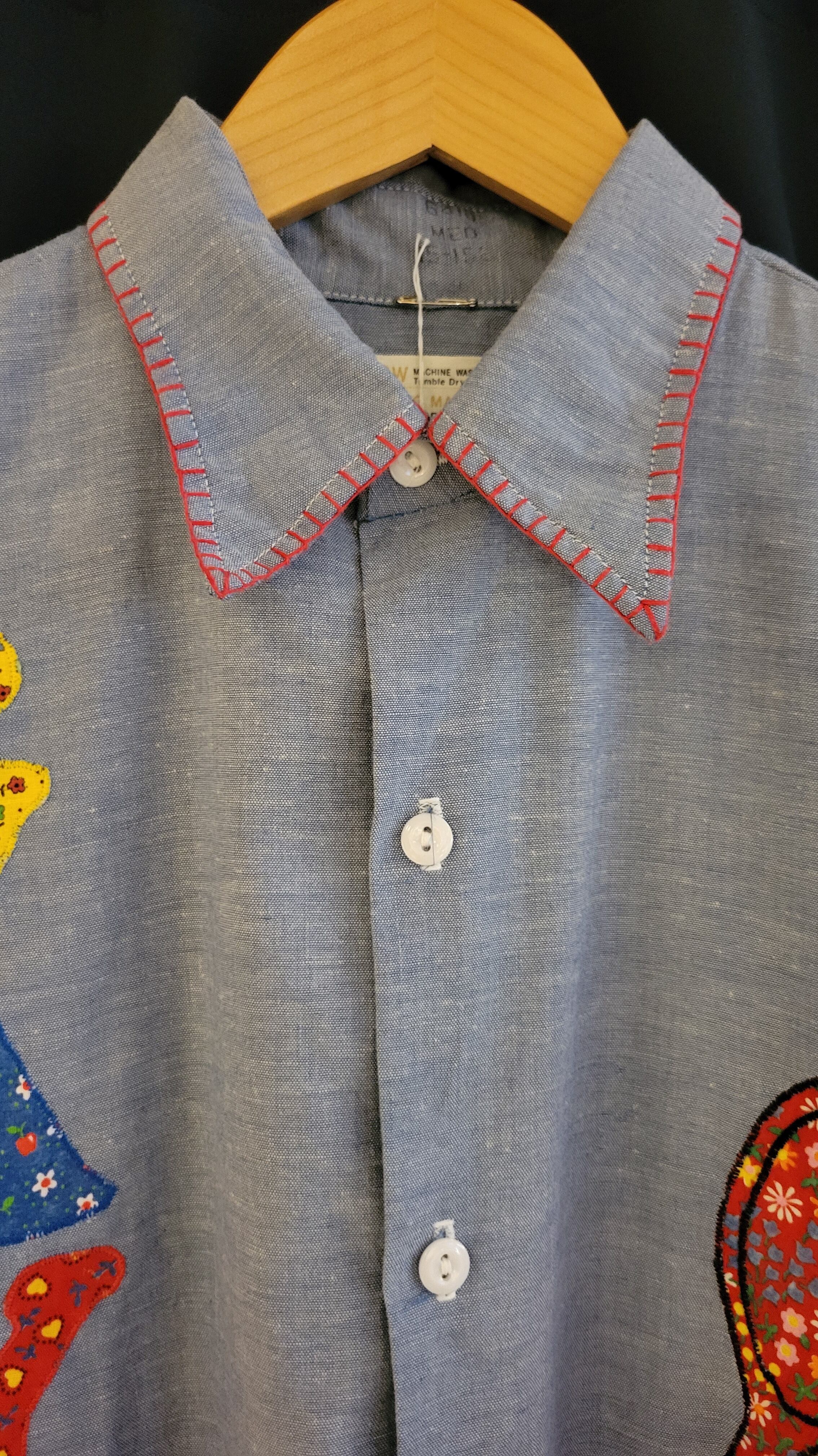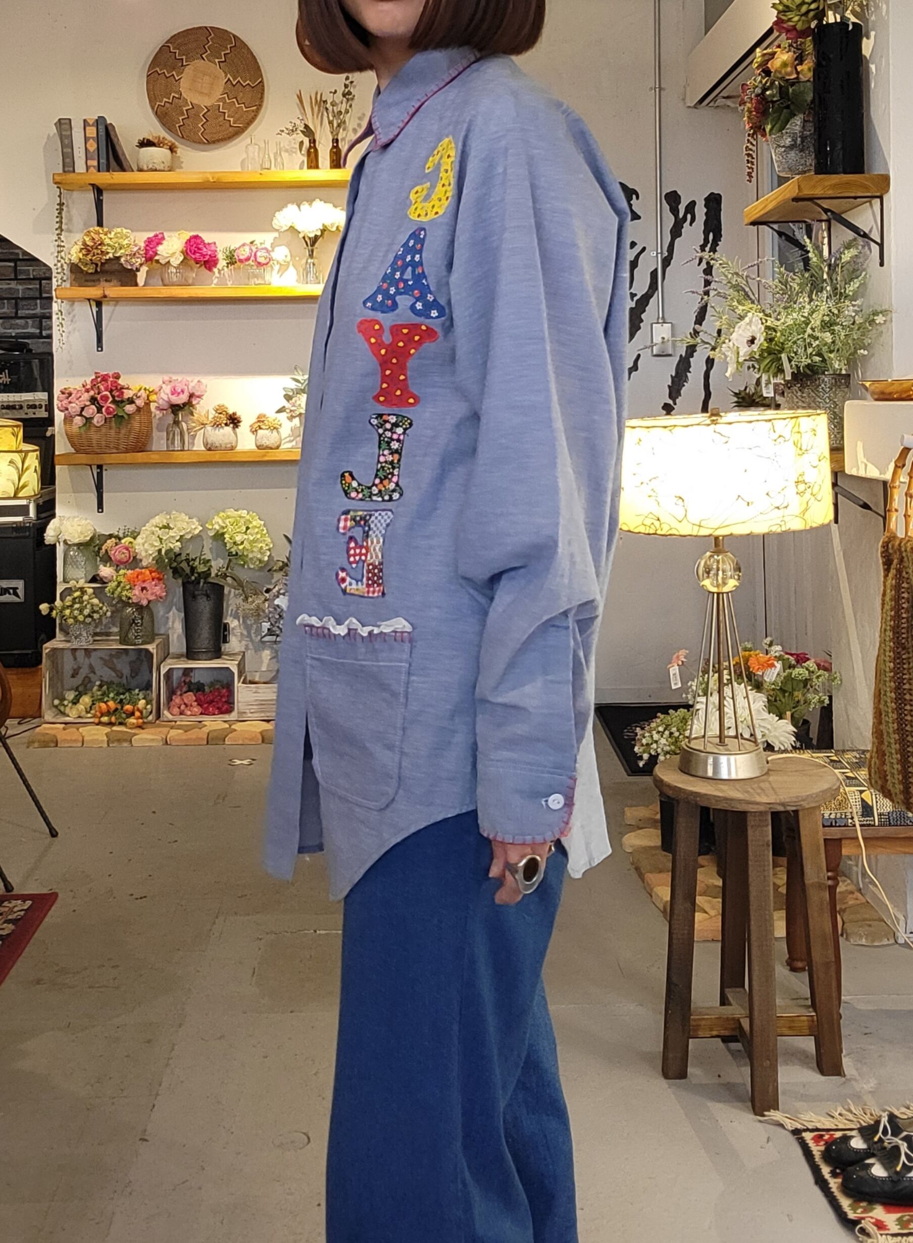 ヴィンテージのBIG MAC シャンブレーシャツ。素材はコットン50% ポリエステル50%です。さらりと涼しい素材感です。パッチワークやハンドステッチが可愛らしい1枚。メンズサイズ・仕様ですが、男性はもちろん、女性がオーバーサイズで着用しても素敵です。ハサミやコームのパッチワークモチーフは美容師さんにもおすすめ。
