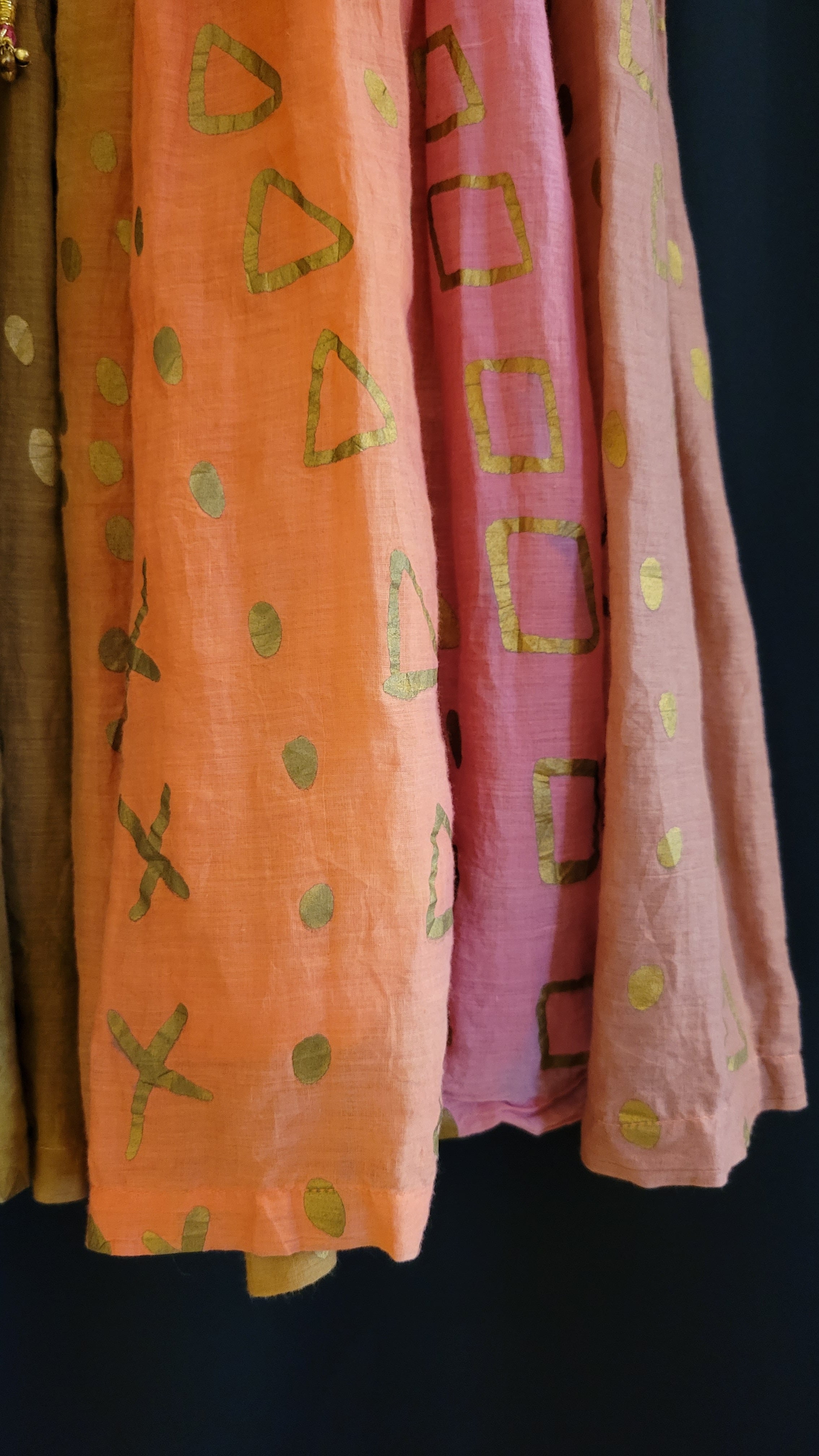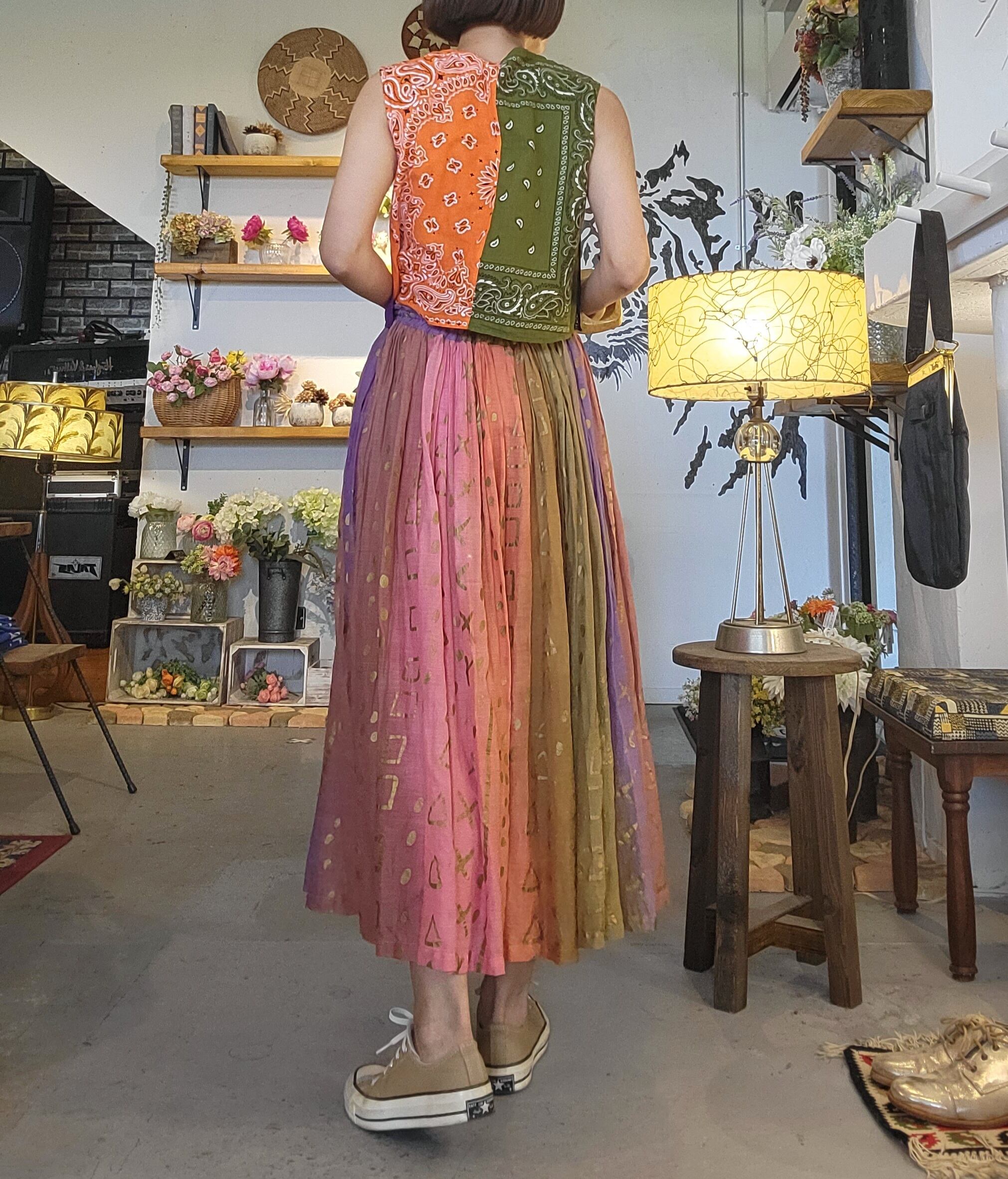 BCNSK009 インディアンコットンゴールドスタンプギャザースカート