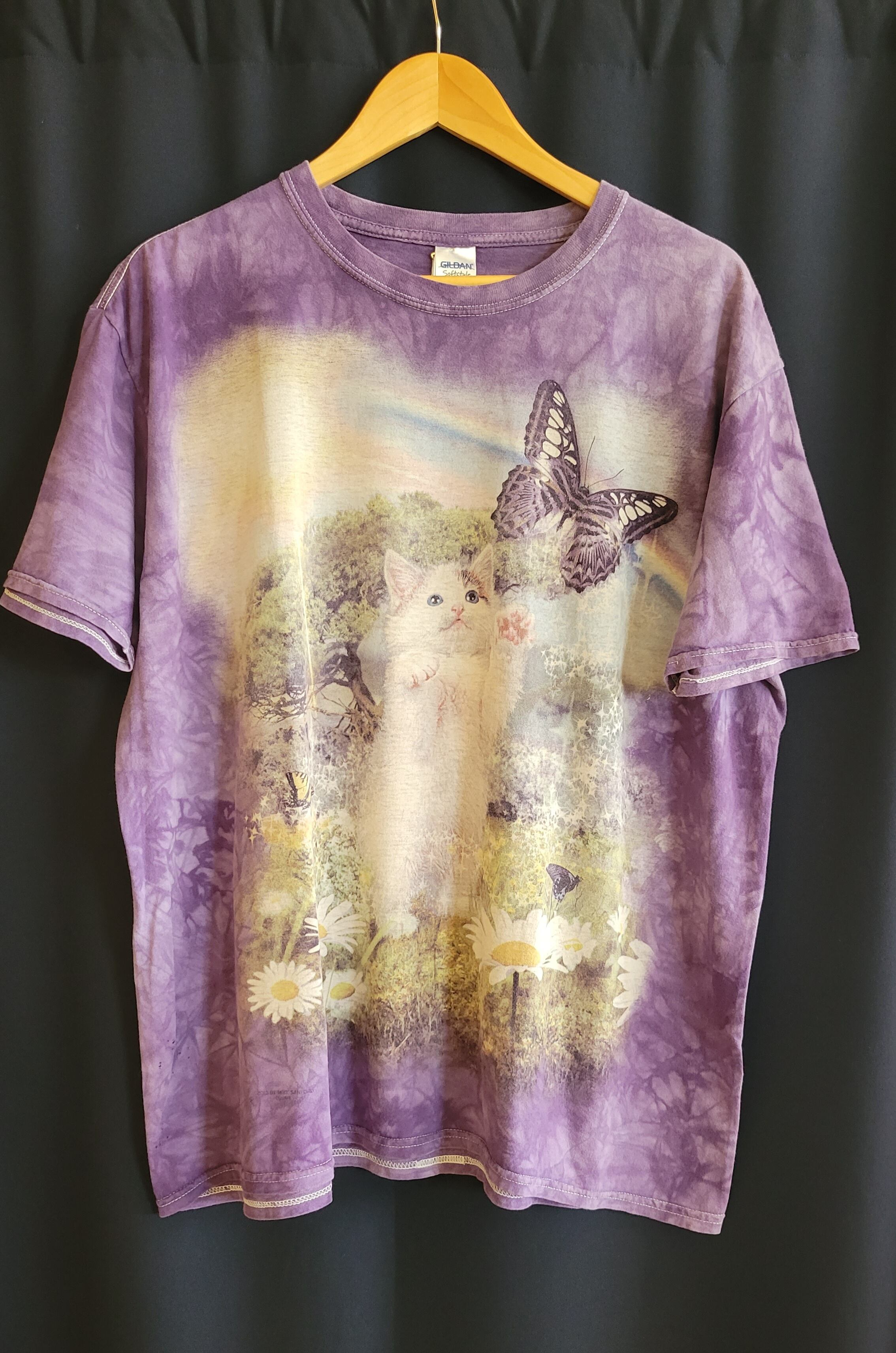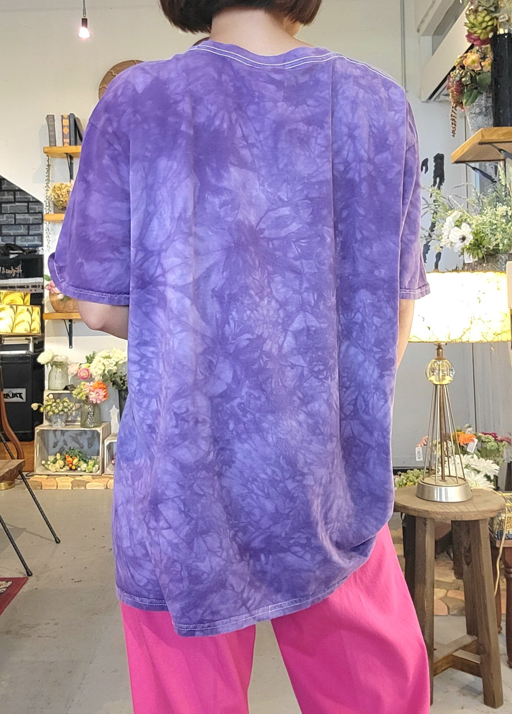 古着のアニマルプリントTシャツ。コットン100%です。ボディはタイダイ(絞り染め)。ほどよい色褪せとくたっと感があります。