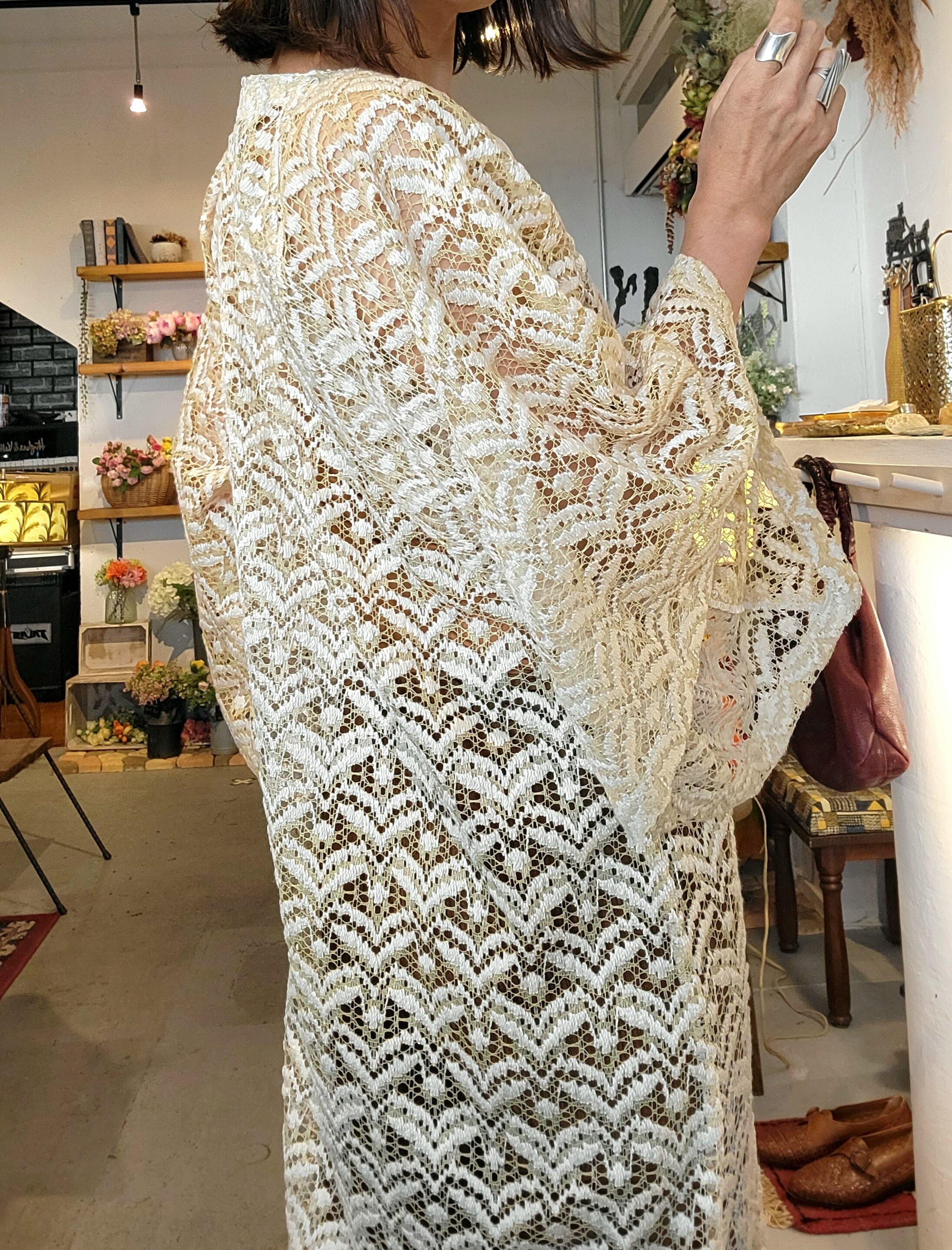 M様ご予約品 RMDR027 ヴィンテージレースリメイクフレアスリーブワンピース