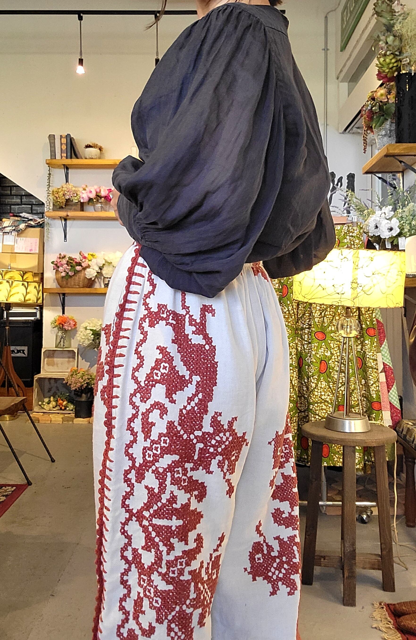 S様ご予約品 RMPT045 刺繍リネンクロスリメイクパンツ