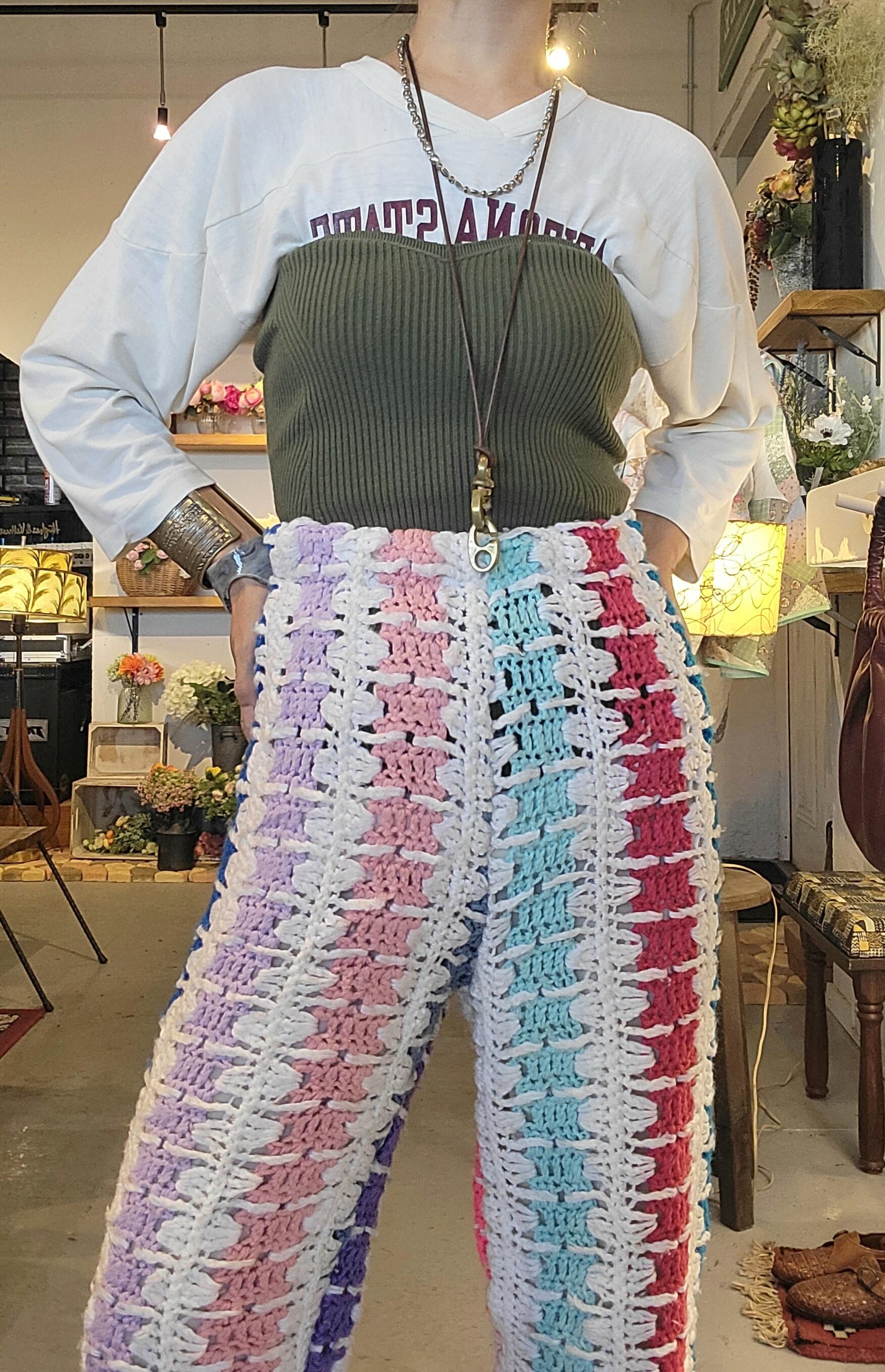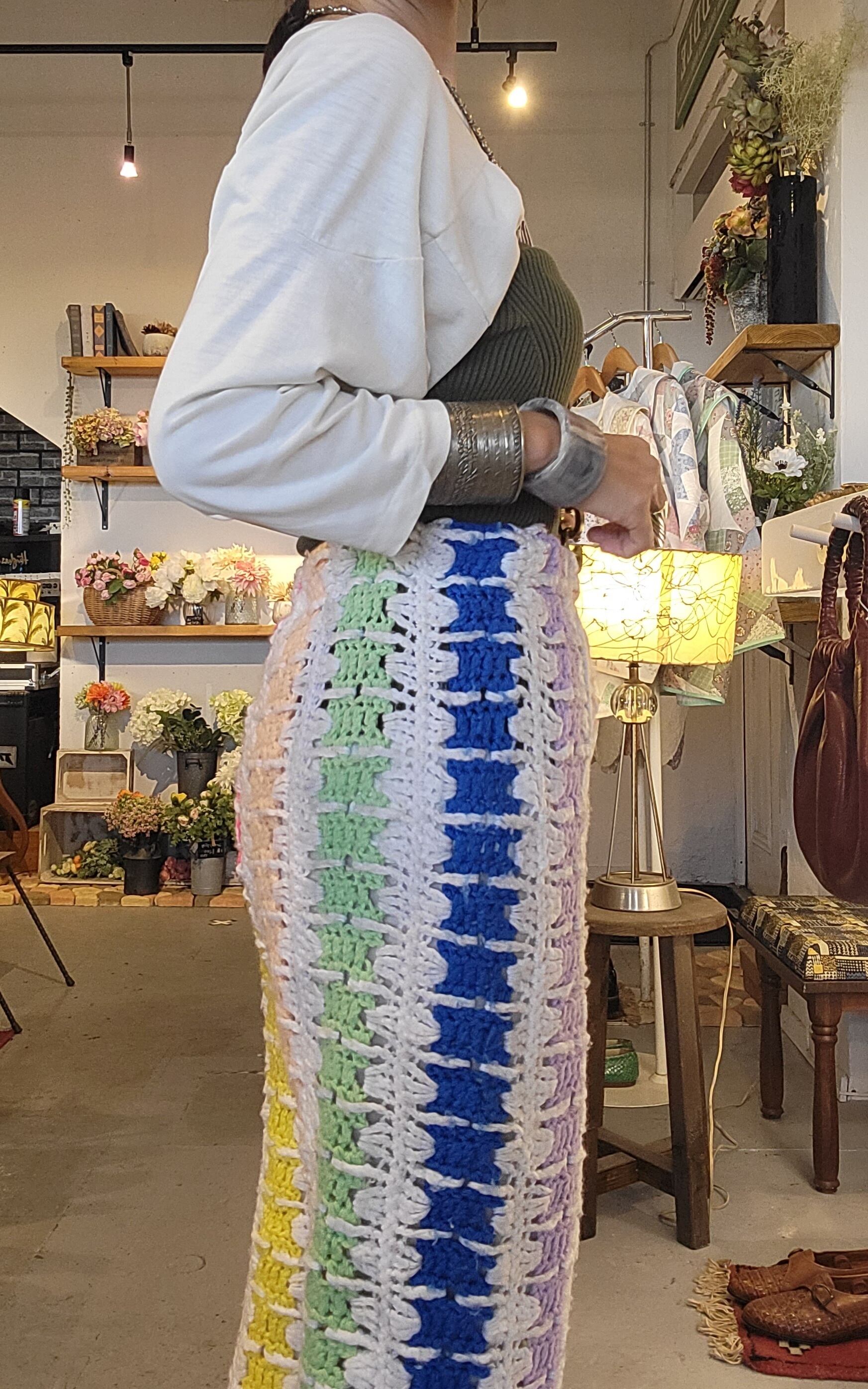 ヴィンテージのグラニーニットを使用したリメイクイージーパンツ。ウェストゴム、ニットの伸縮性も相まってストレスフリーな履き心地です。インナーにレギンスを合わせてとても暖かく過ごせます。縦のラインで脚長&すっきり見えが叶う一本です。