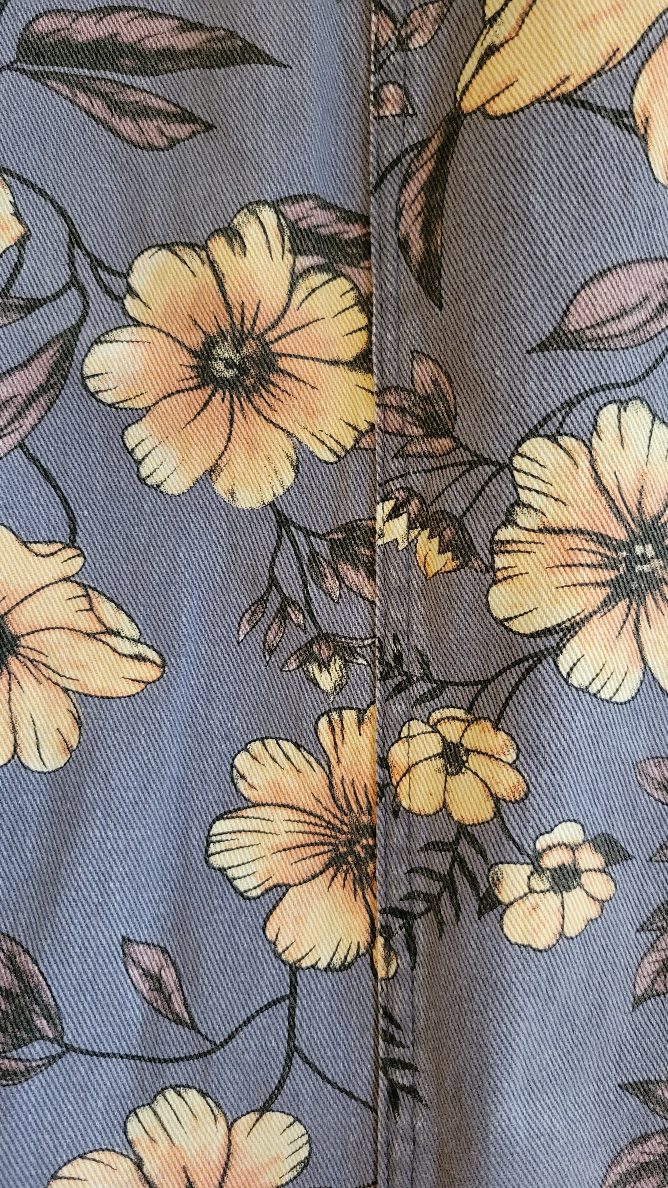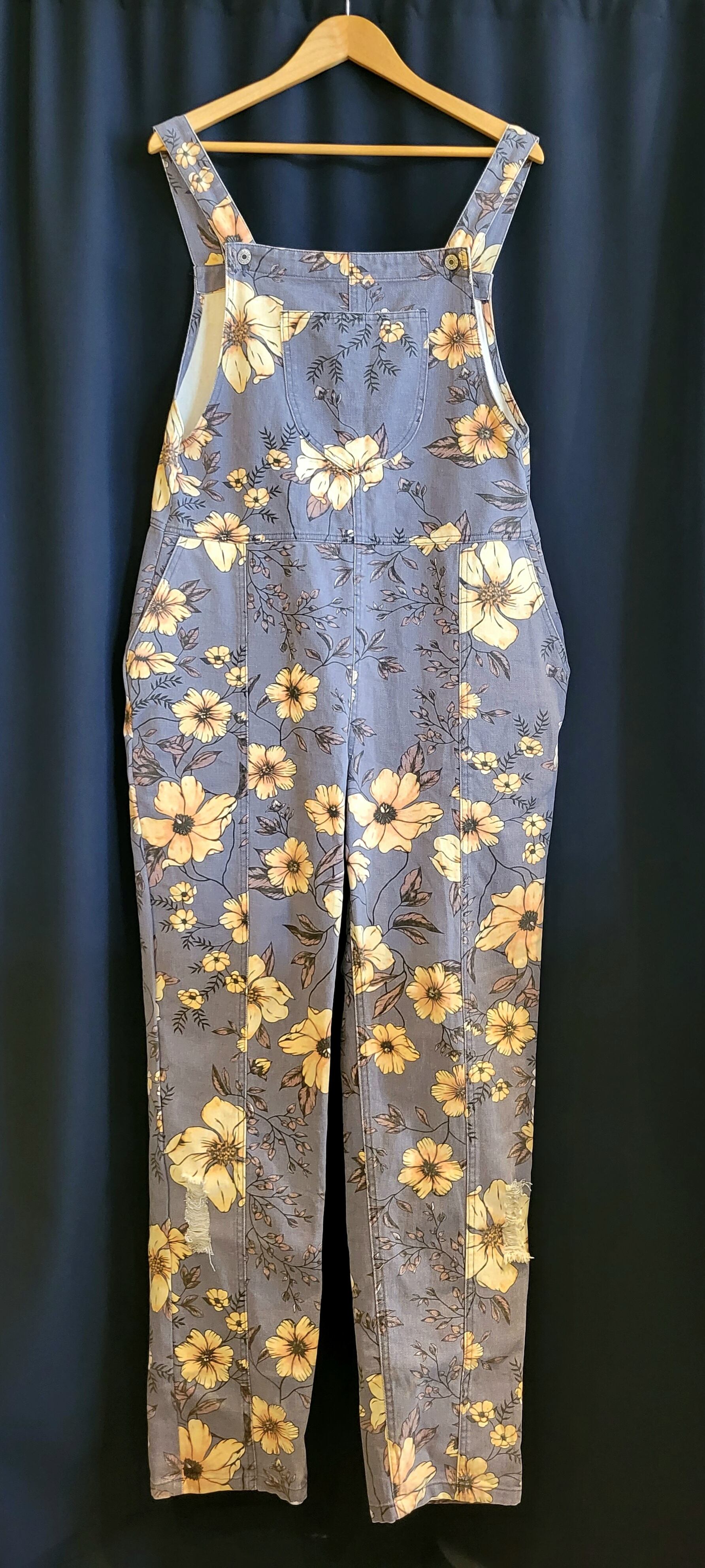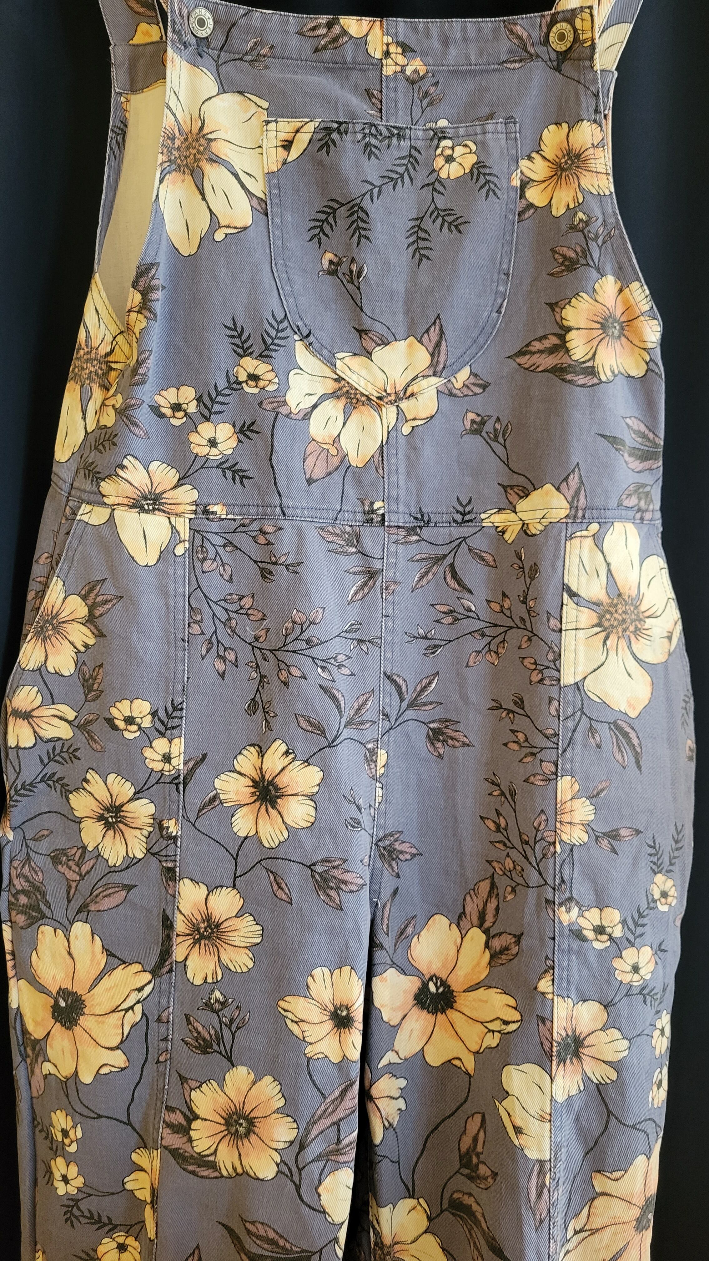 ヴィンテージの花柄オーバーオール。素材はコットンです。ゆったりしたサイズ感で中に厚手のニット等も合わせていただけます。裾がテーパードシルエットなのでオーバーサイズながらも見た目はすっきりした印象です。