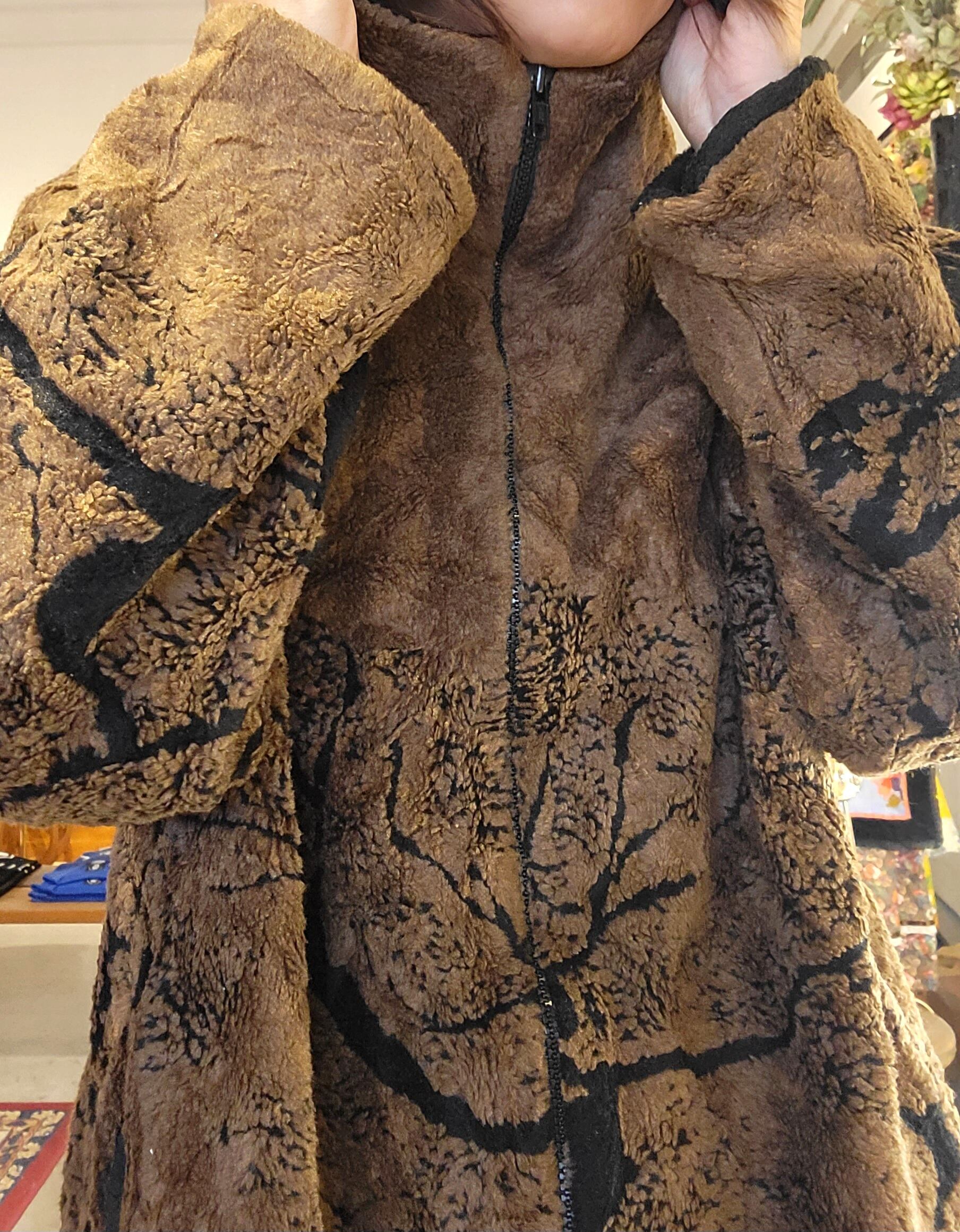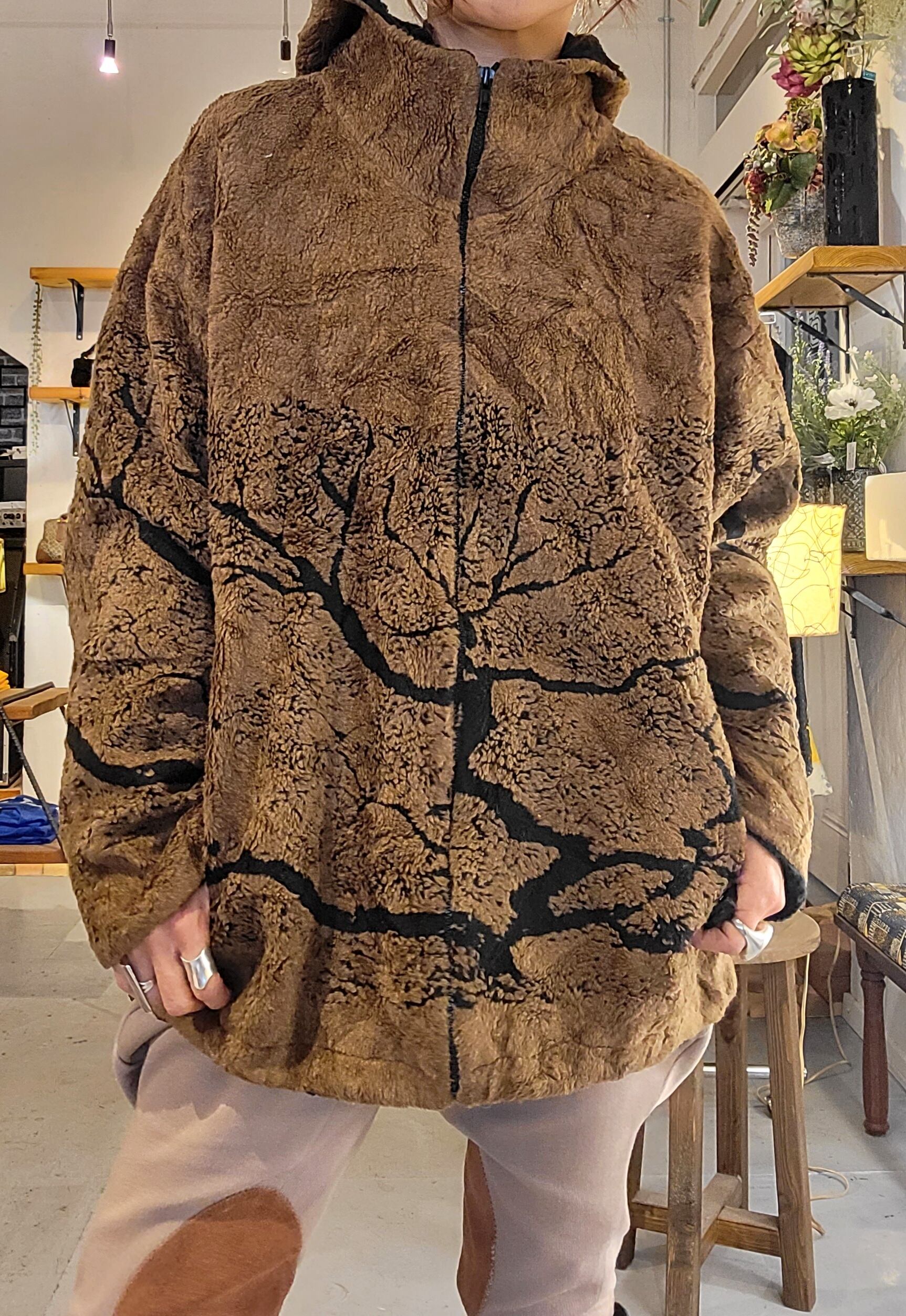MADE IN MEXICO の色柄渋めの USEDフリースジャケット。軽くて暖かいです。女性がオーバーサイズで着て可愛いサイズ感。インナーに厚手のニットも着られます。男性にもおすすめです。