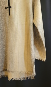 ヴィンテージのプルオーバートップス。素材表記はありませんがざらりとしたリネンのような素材感です。さらりと気負わず着られて普段使いにぴったりです。薄いグレーのグラデーションが大人っぽい雰囲気。マオカラーとチャイナ風ボタンでシンプルな中にも個性を感じられるトップスです。