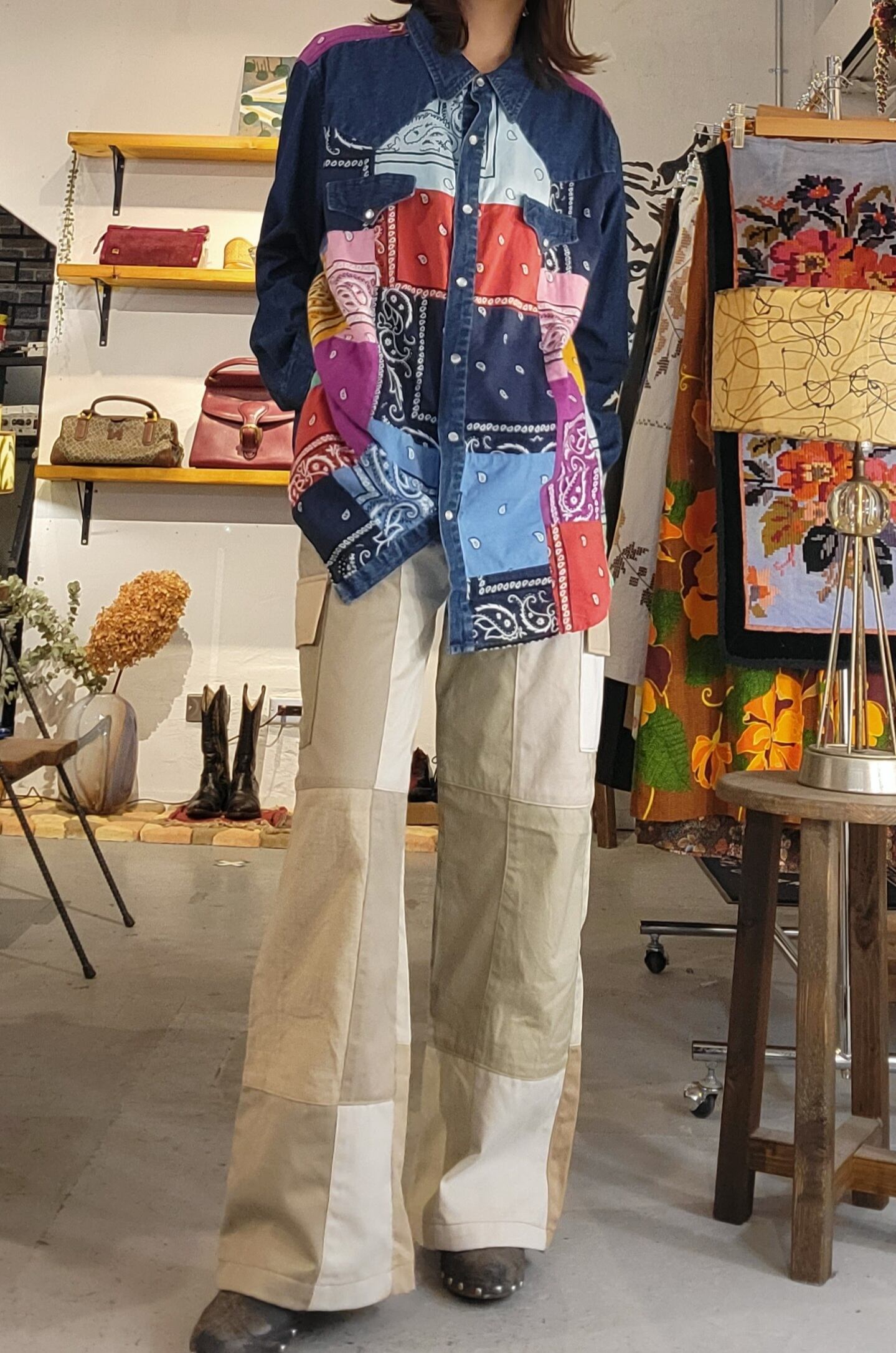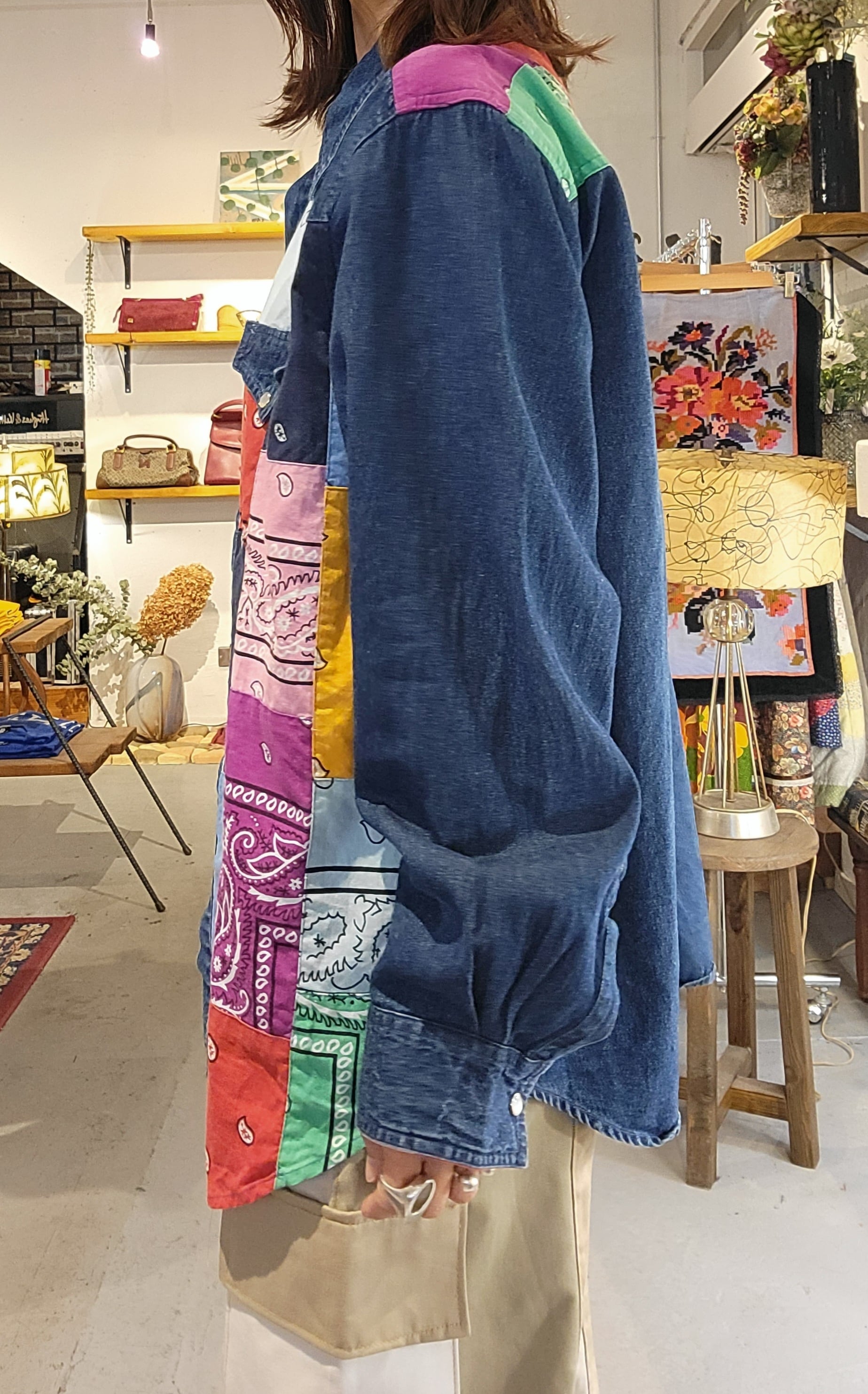 THTP227 バンダナパッチワークデニムシャツ