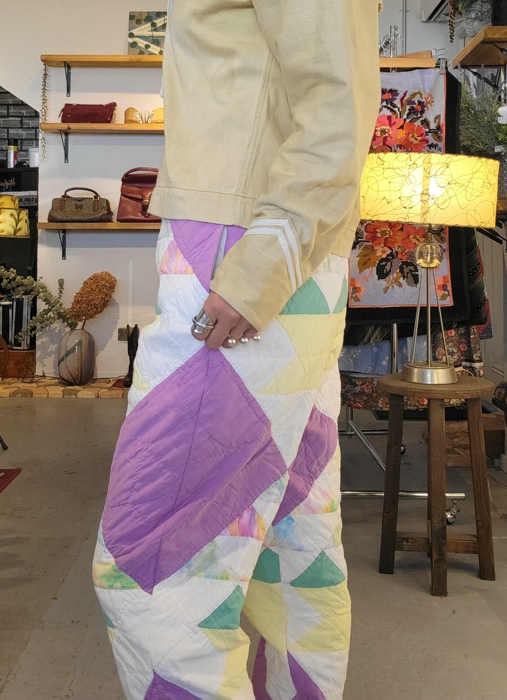 RMPT106 パッチワークキルトリメイクパンツ a
