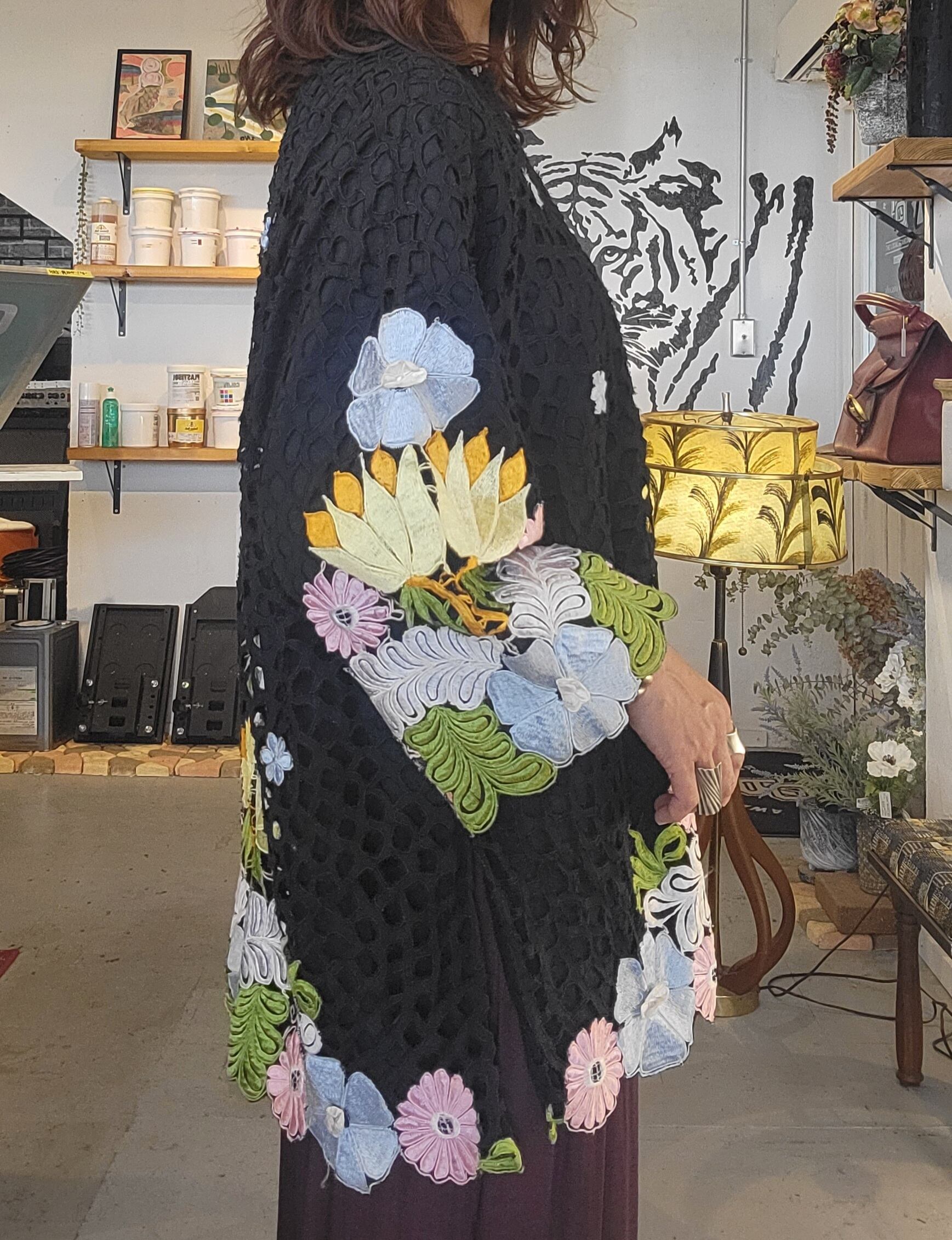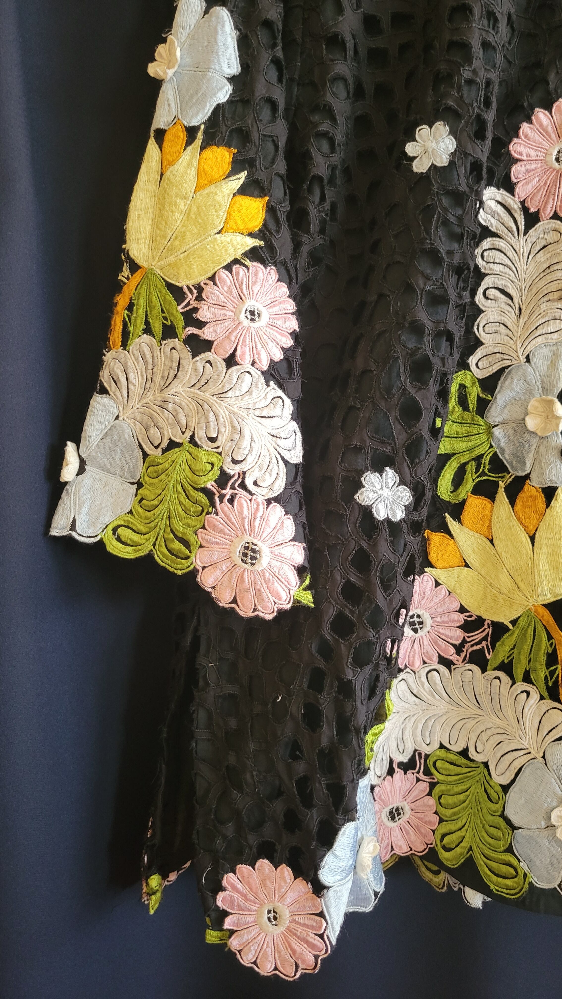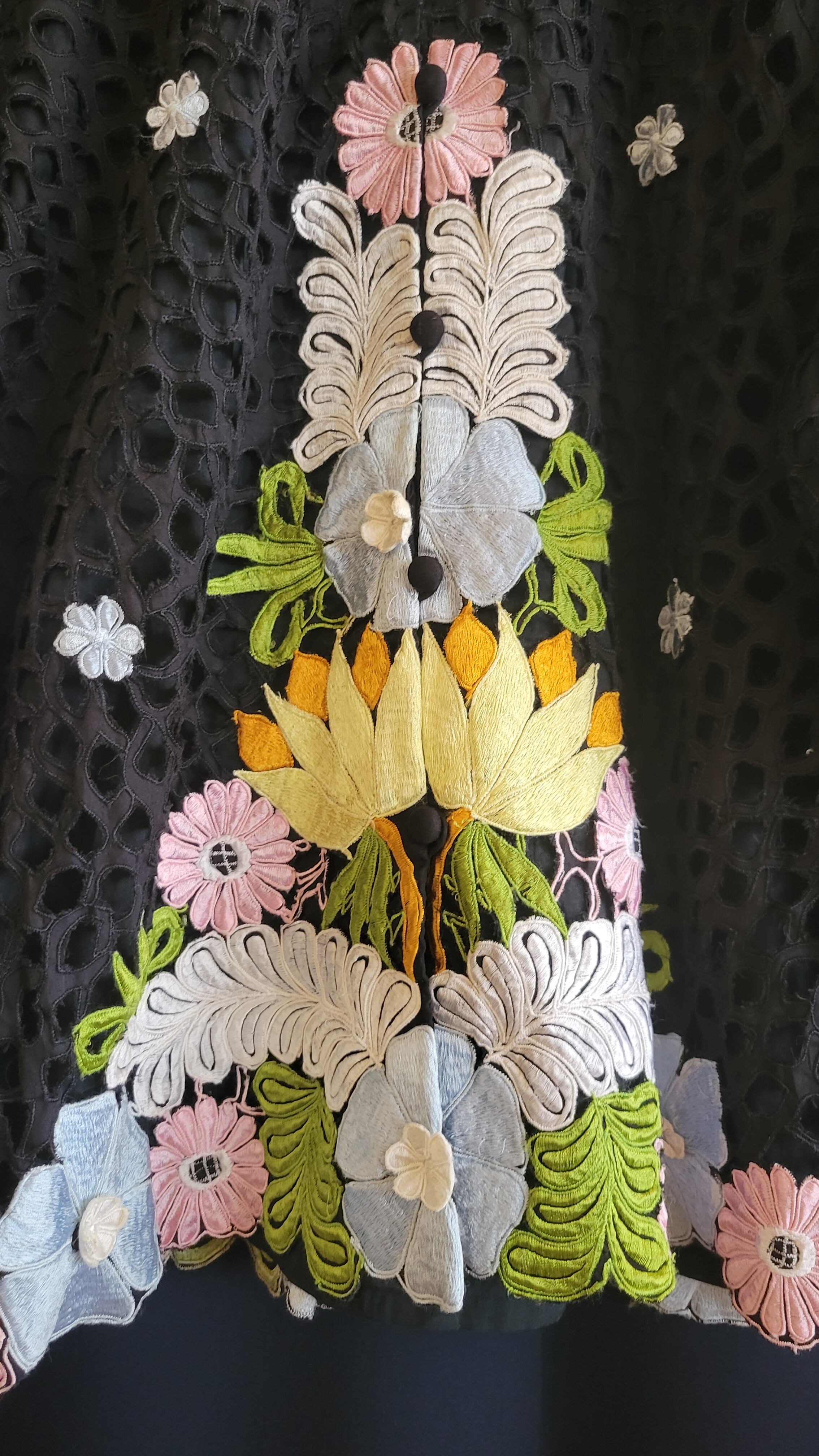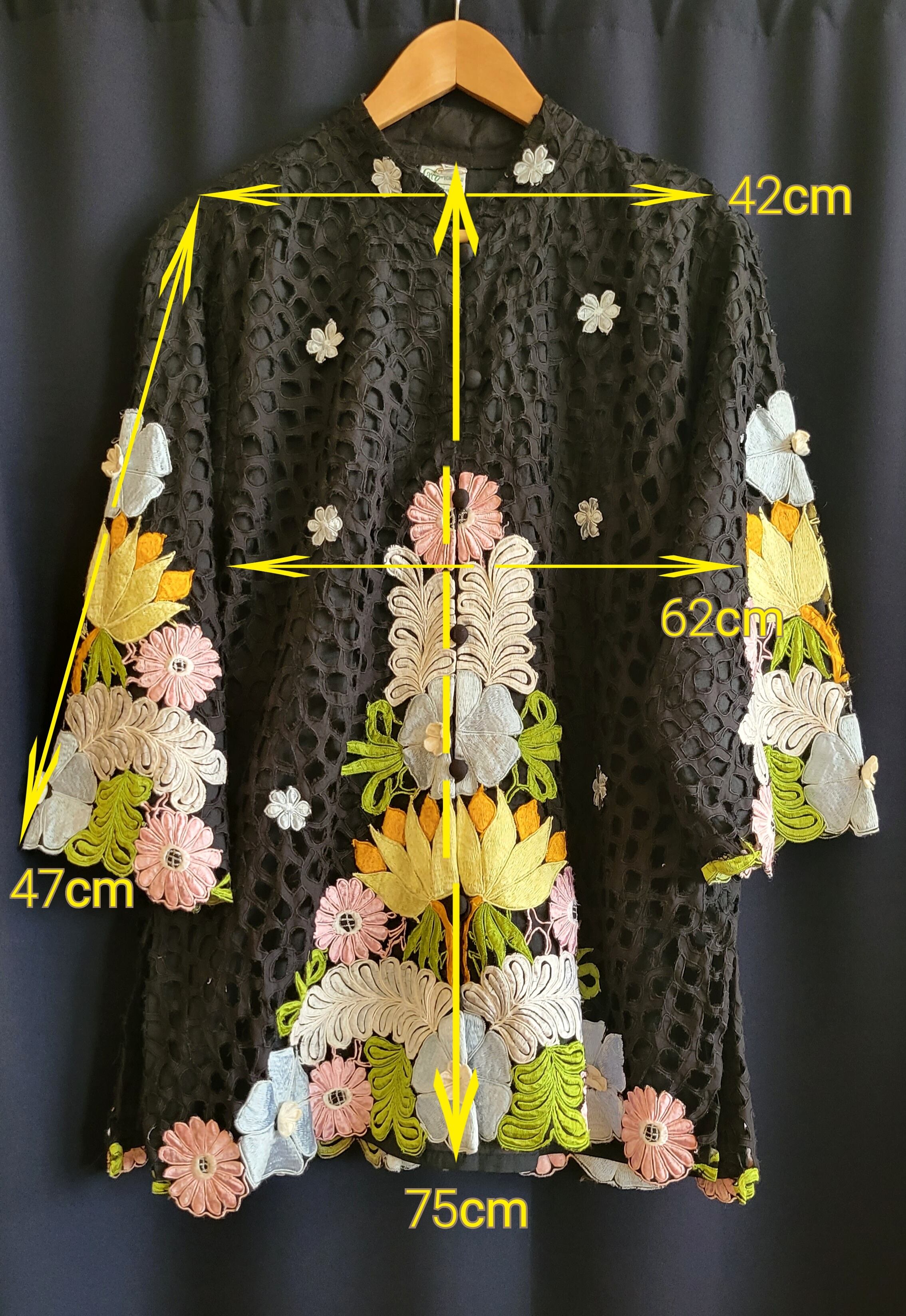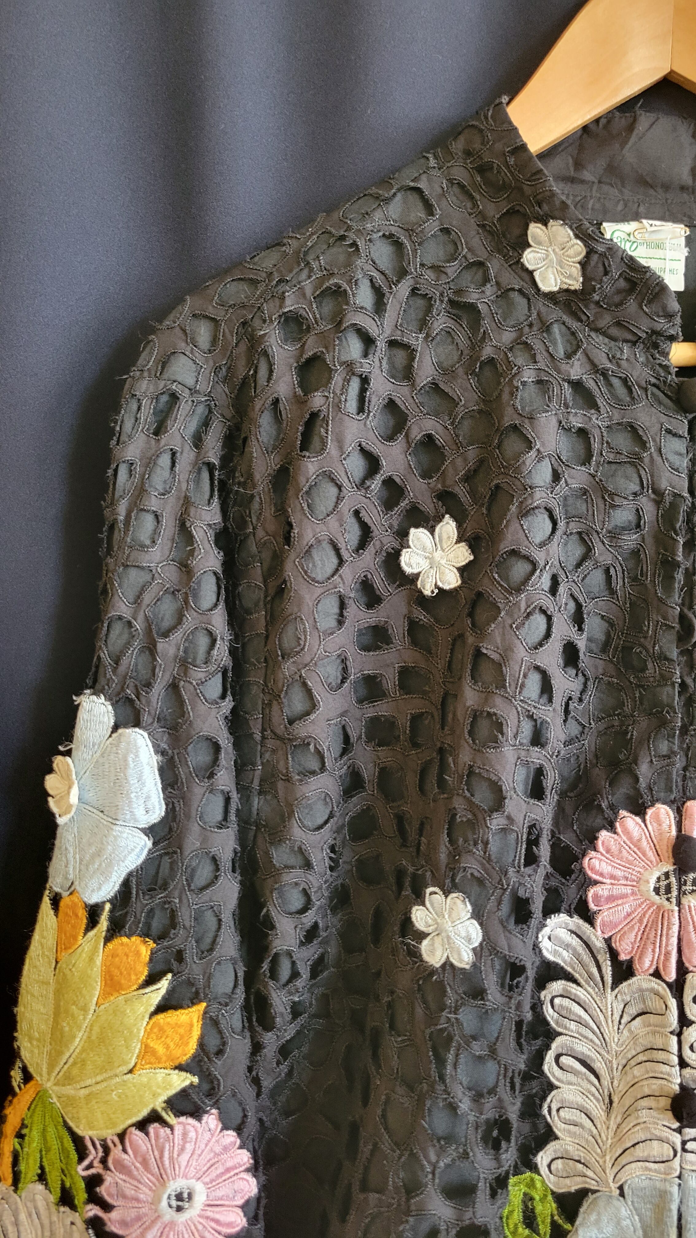 Made in Philippines のヴィンテージジャケット。素材はポリエステル65% コットン35%です。裏地付きなので1枚で着られます。見事なカットワーク刺繍が秀逸なヴィンテージピースです。