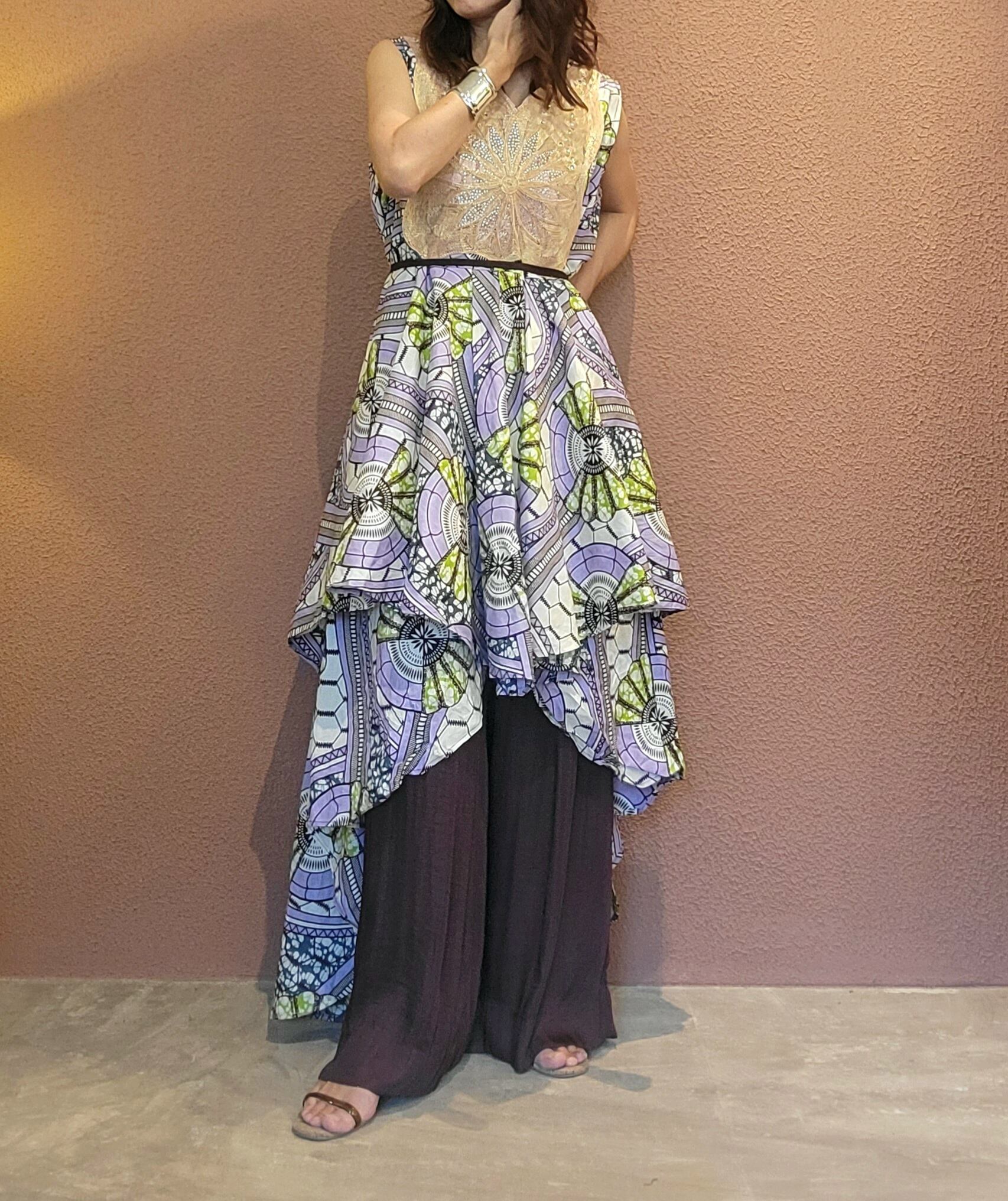 THDR471 アフリカンバティックアシンメトリーワンピース