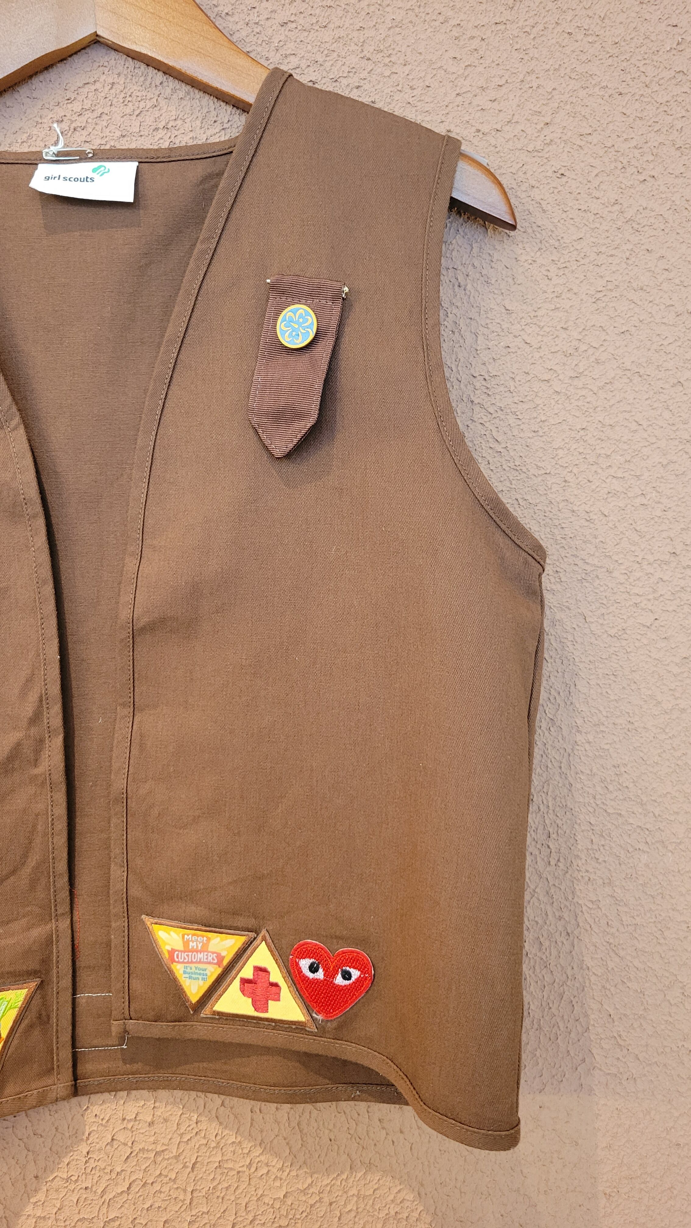 USA ガールスカウトベスト。素材表記はありませんがコットンとポリエステルの混紡のようです。コンパクトなサイズにワッペンが楽しげな雰囲気。スタイリングが物足りない時のプラスワンアイテムにも。